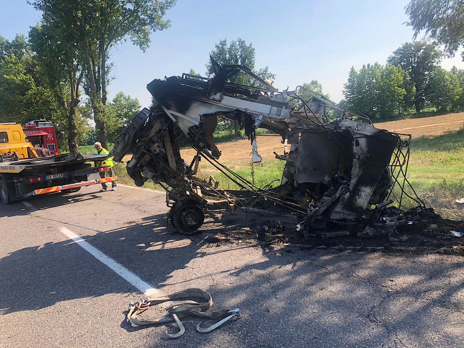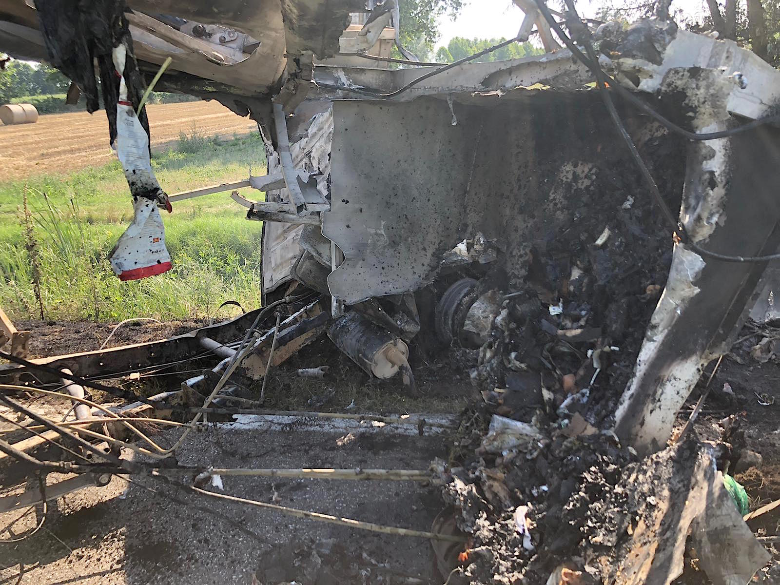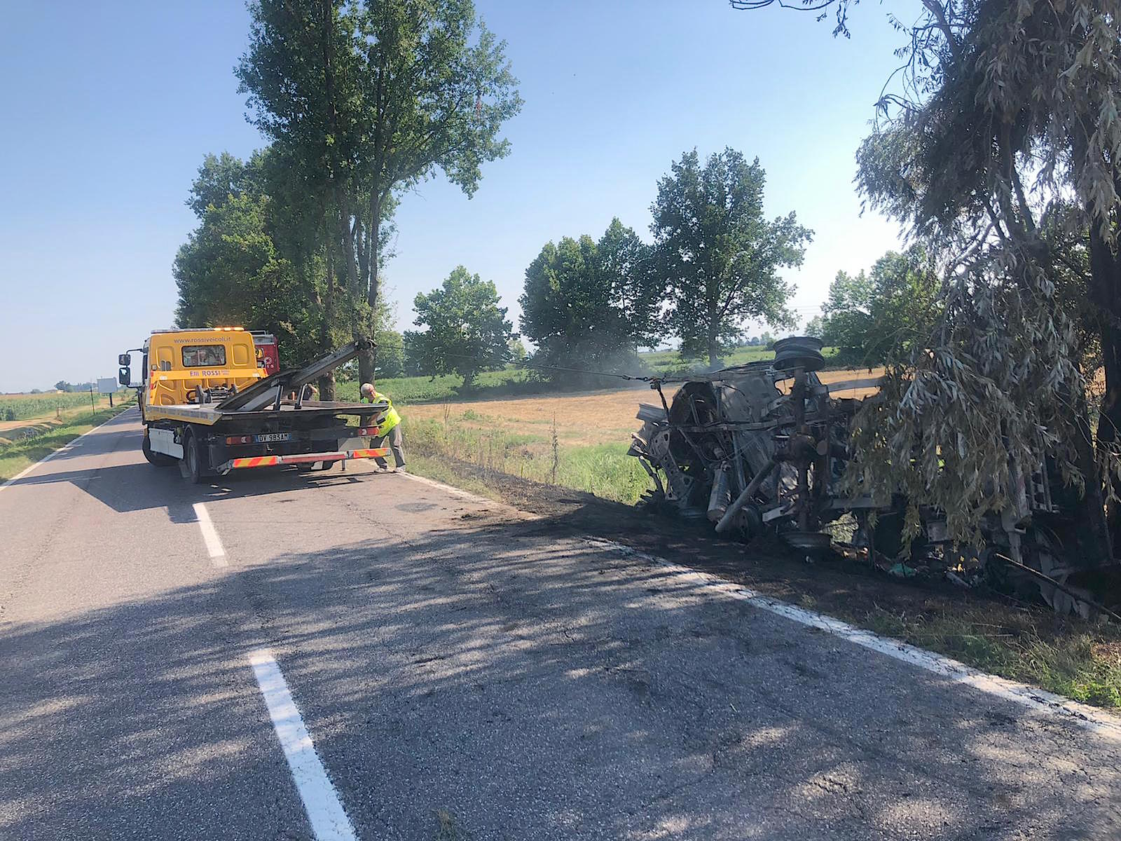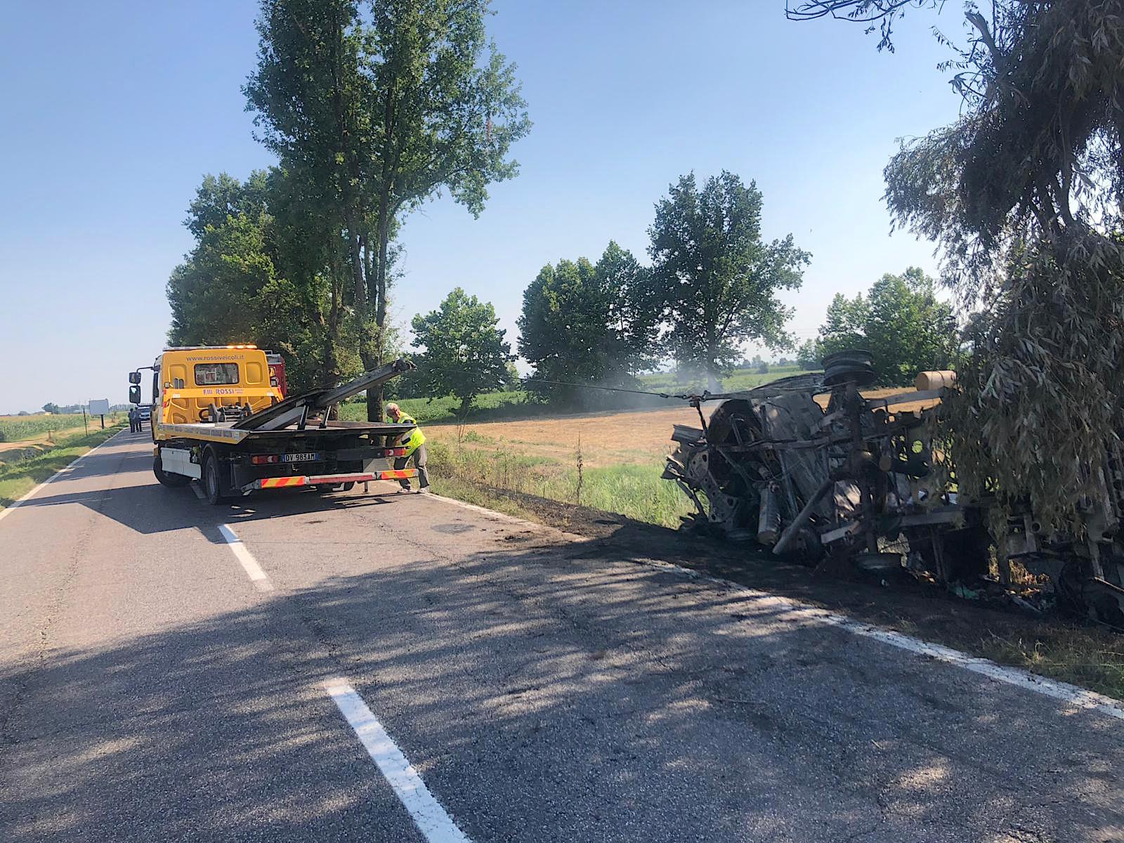 SAN GIOVANNI IN CROCE – E’ finito fuori strada col suo furgone e poi ha rischiato grossissimo. Il mezzo infatti, un Iveco della Casalasca Servizi, ha preso fuoco a bordo strada, ma per fortuna il classe 1970, di origine albanese e residente a Casalmaggiore, era già riuscito ad allontanarsi. Sul posto sono giunti Carabinieri, per i rilievi, e Vigili del Fuoco, per spegnere l’incendio. Il sinistro è avvenuto attorno alle 15.30 di sabato pomeriggio lungo la strada Asolana tra Martignana e San Giovanni in Croce e proprio verso quest’ultimo comune, nella sede di Casalasca Servizi, il classe 1970 si stava recando dopo avere svolto il suo lavoro. Il mezzo, del quale non restano che poche lamiere, è stato recuperato dai Fratelli Rossi di Bozzolo. L’uomo è stato ricoverato in codice giallo all’ospedale di Cremona.