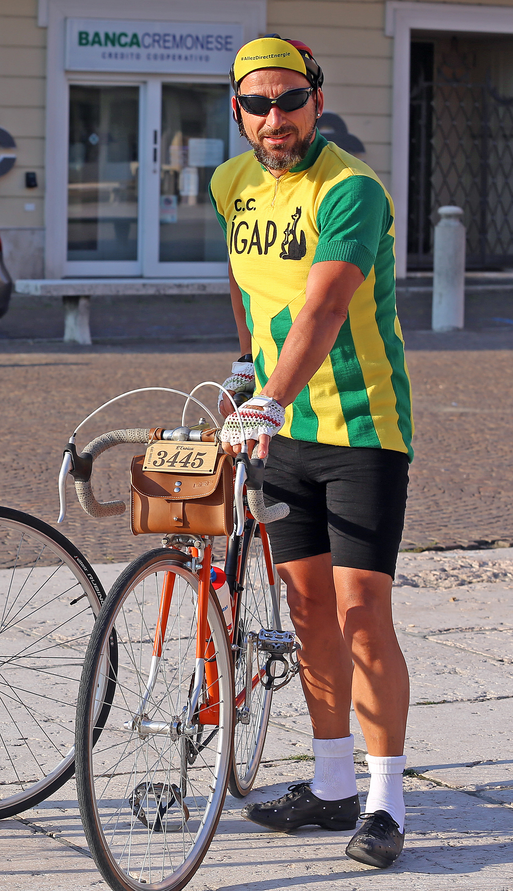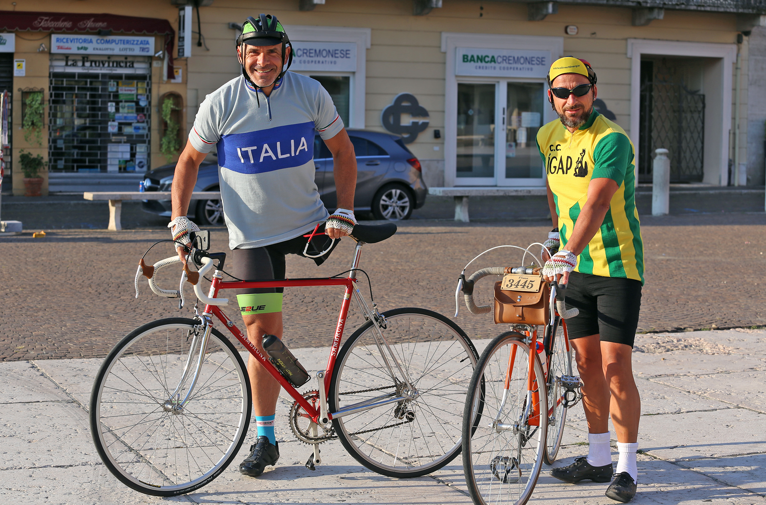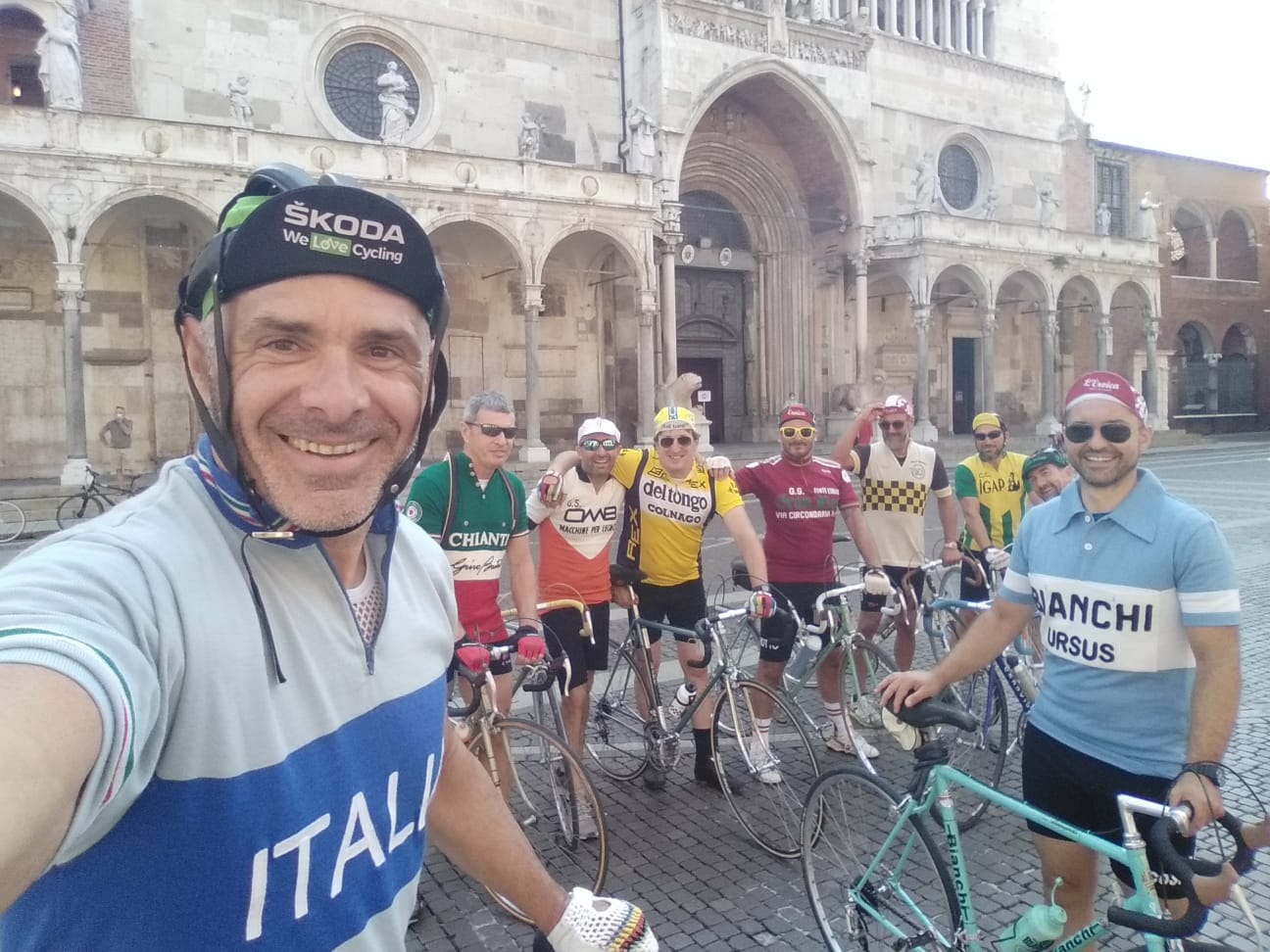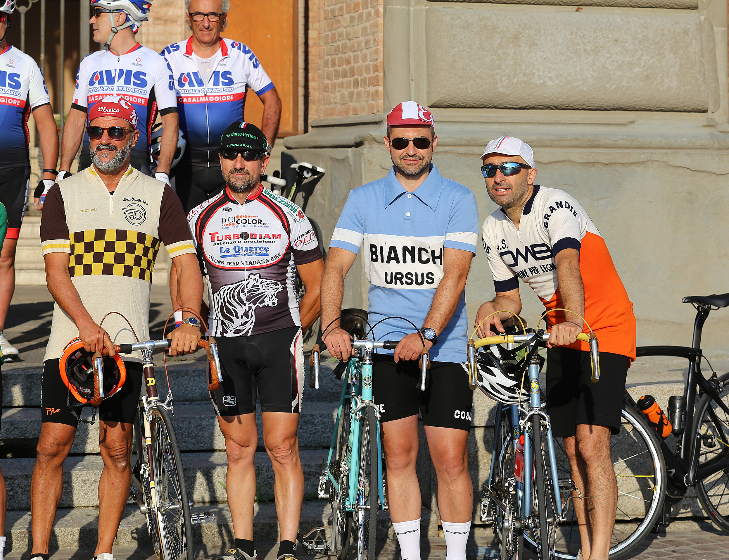CASALMAGGIORE – Arditi, eroici o forse appassionati e basta. Un po’ folli certamente i ciclisti ‘vintage’ che sono partiti questa mattina da piazza Garibaldi a Casalmaggiore in direzione Cremona. Una ventina, tra i ciclisti dell’AVIS pedale Casalasco e gli amanti delle vecchie bici e delle vecchie divise partiti per il capoluogo di provincia. Tra gli altri Giovanni Rivetti di Gussola, Giovanni Pagliarini e Homar Mangoni di Casalmaggiore e Leonardo Franco di Martignana Po. E da Martignana, con una bici ‘vintage’ adattata a lui, anche l’atleta e motivatore Andrea Devicenzi.