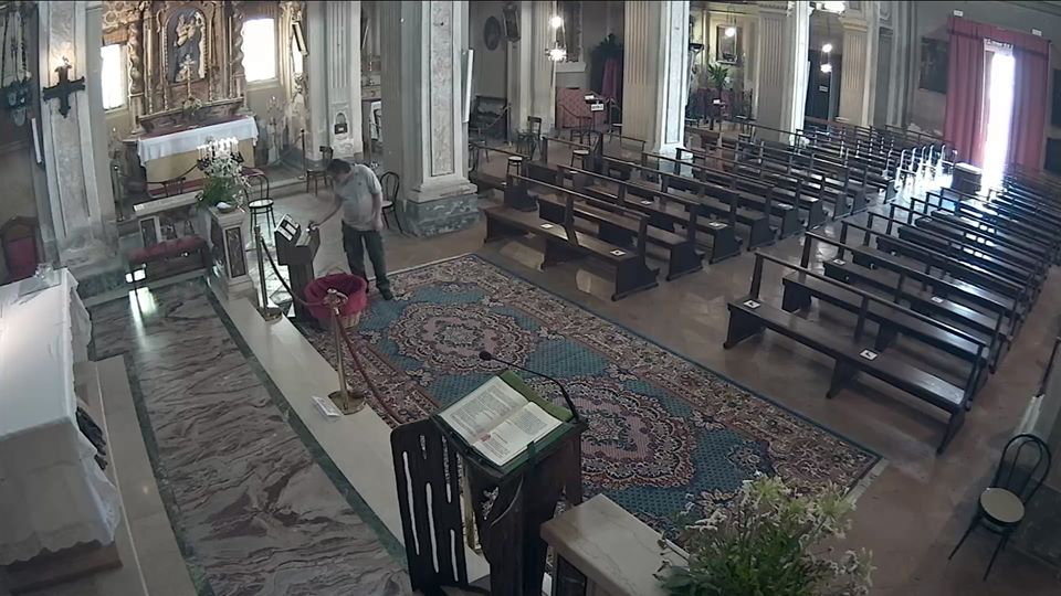 COGOZZO – Torna a colpire il ladro delle elemosine della Chiesa di Cogozzo, e per la seconda volta viene ripreso dalle telecamere interne messe a protezione del luogo. L’uomo è giunto a piedi sino alla Chiesa questa mattina alle 9. E’ restato nella struttura 7 minuti, facendo il giro di tutte le cassette delle elemosine e poi fuggendo a piedi. Restano pochi dubbi ormai sul fatto che sia un residente nel luogo o in qualche paese limitrofo.