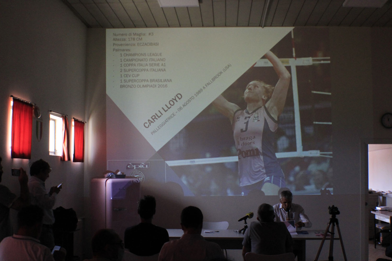 Si è arrivato poi al momento più caldo, quello del roster 2020/2021. La prima vera novità degli ultimi anni è che le giocatrici saranno dodici e non tredici come eravamo ormai abituati. La cabina di regia sarà affidata ad una grandissima, rimasta sempre nel cuore dei tifosi rosa, la palleggiatrice statunitense Carli Lloyd, supportata dalla presenza della ex Hermalea Olbia Francesca Bonciani. A chiudere la diagonale la brasiliana Rosamaria Montibeller, che tante belle cose ha mostrato nella scorsa stagione in quel di Perugia, e la ceca Tereza Vanzurova, da anni nell’orbita della pallavolo italiana. Al centro arriva la prima conferma, Federica Stufi, che farà coppia con l’ex Bergamo Laura Melandri supportate dall’aiuto della viterbese classe 1999 Michela Ciarrocchi a concludere il reparto interamente tricolore. Passiamo alle bande, tre in questa stagione: l’esperta Laura Partenio e le giovanissime Kara Bajema, statunitense classe 1998, e Ailama Cese Montalvo, cubana classe 2000, che già hanno fatto parlare di loro in maniera più che positiva dagli esperti del settore. Chiudiamo con il ruolo di libero e meglio non potevamo farlo se non con una graditissima conferma, quella di Marianna Maggipinto, libero napoletana di grande prospetto, e il grande ritorno, dopo due stagioni a Bergamo, dello storico libero rosa Imma Sirressi, altra beniamina dei tifosi casalasco-cremonesi da sempre. Dopo le domande dei presenti l’ingresso a sorpresa di Laura Melandri e Rosamaria Montibeller arrivate nella sede rosa per portare i loro saluti.