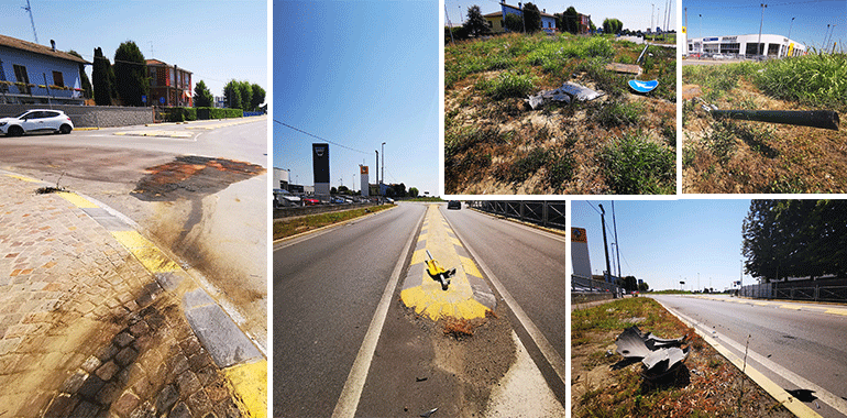Stamattina qualcuno ha avvisato le forze dell'ordine perché numerosi pezzi giacevano ancora sull'asfalto. Gli uomini del nucleo operativo hanno effettuato i rilievi e sono in breve tempo risaliti al colpevole che dovrà risarcire i danni causati