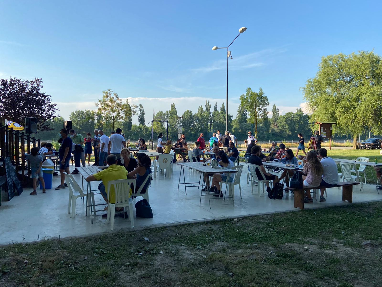 Il brindisi celebra il fatto che torna a vivere il porto turistico fluviale sul Po a Casale di Sorbolo Mezzani. Mercoledì pomeriggio si è tenuta l’inaugurazione della nuova gestione del bar km 422, struttura di proprietà del Comune di Sorbolo Mezzani affidata, attraverso una convenzione, all’associazione Lago di pane di Torrile, onlus che dal 1999 promuove l’accoglienza e l’inserimento di minori, giovani adulti e famiglie in stato di disagio ed emarginazione sociale.  “Ripartiamo nel segno di uno dei luoghi più belli del nostro territorio – dichiarano il sindaco di Sorbolo Mezzani Nicola Cesari ed il vicesindaco Romeo Azzali – offrendo un’opportunità di svago e divertimento in più a cittadini e turisti, collaborando con un’associazione che da oltre vent’anni è al fianco di persone in condizioni di fragilità”.