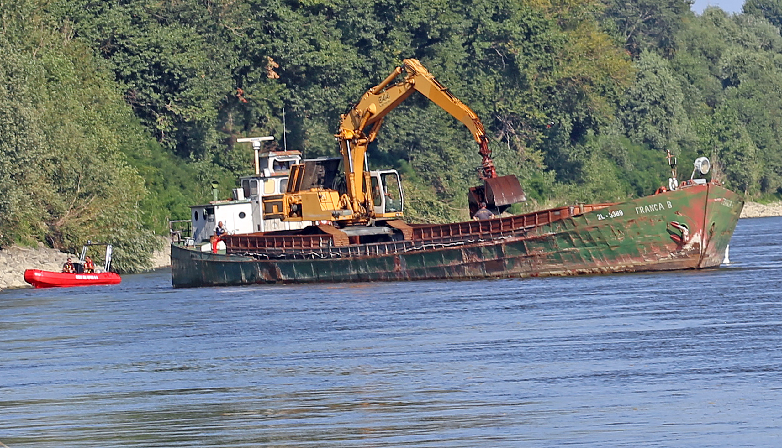 Ci ha provato la Franca B, chiatta della flotta della ditta Bacchi di Boretto, a portarla su. Bacchi ha messo a disposizione i propri dipendenti e il proprio mezzo per quella difficile operazione in acqua. Purtroppo non è servito