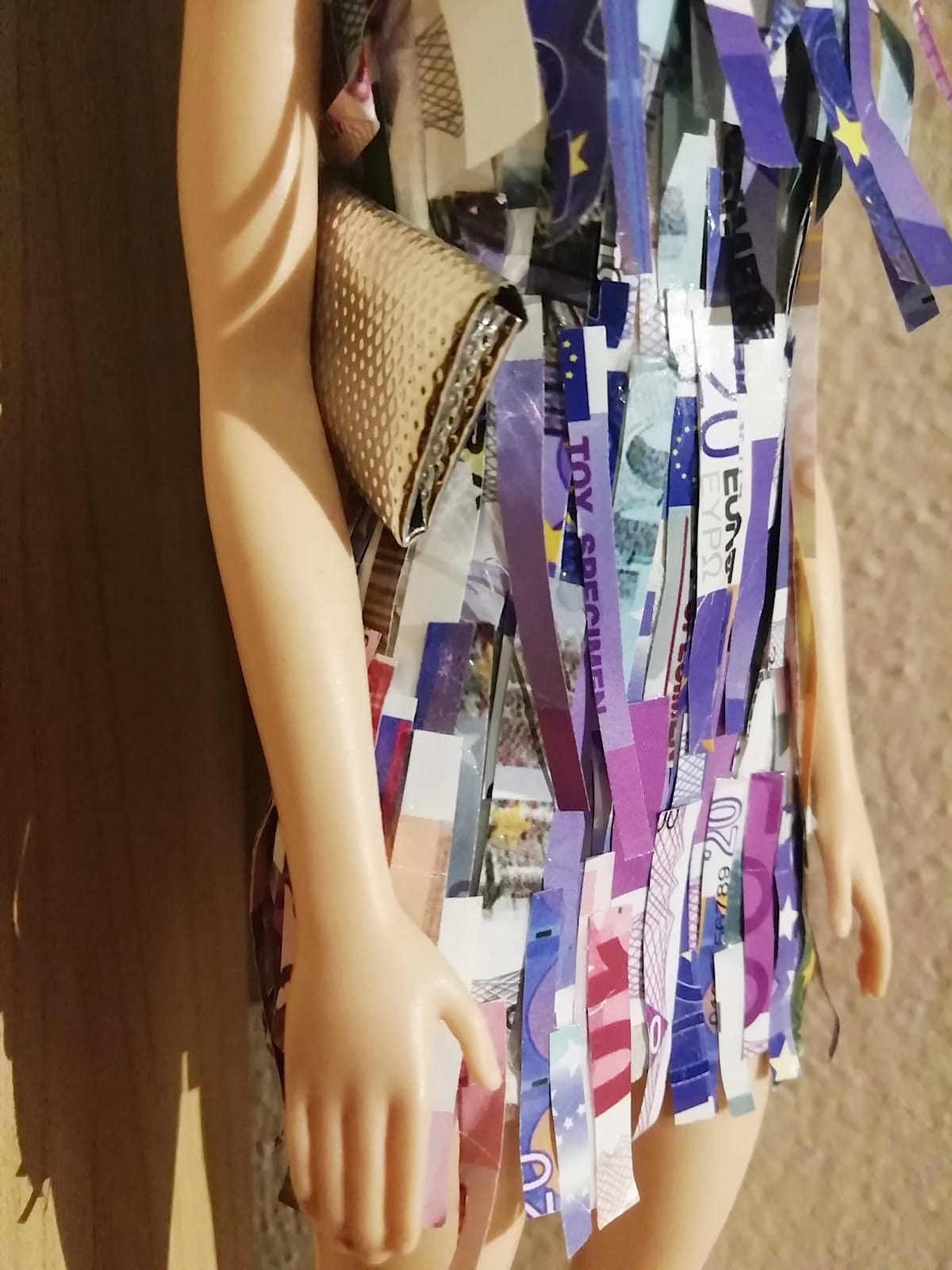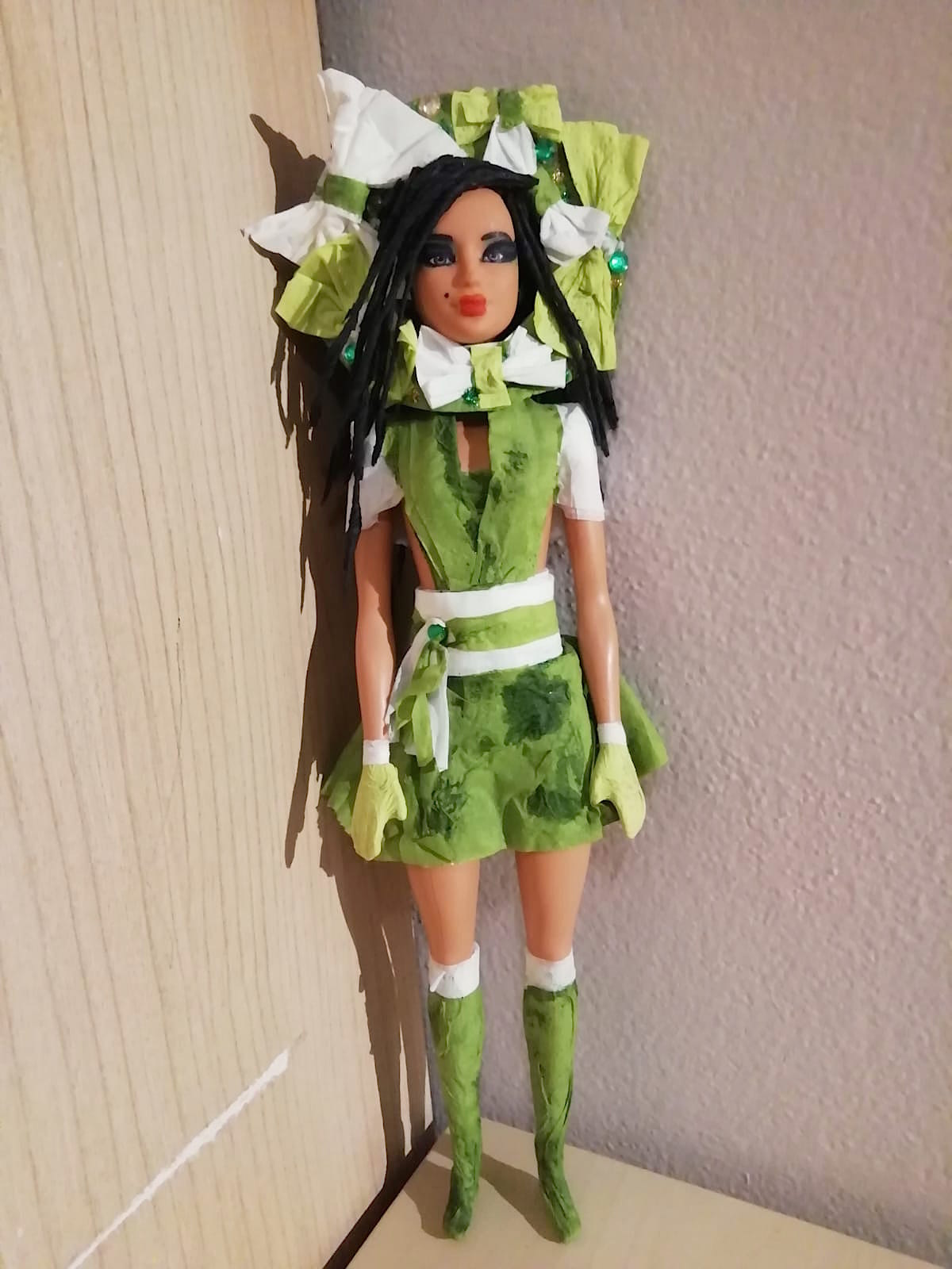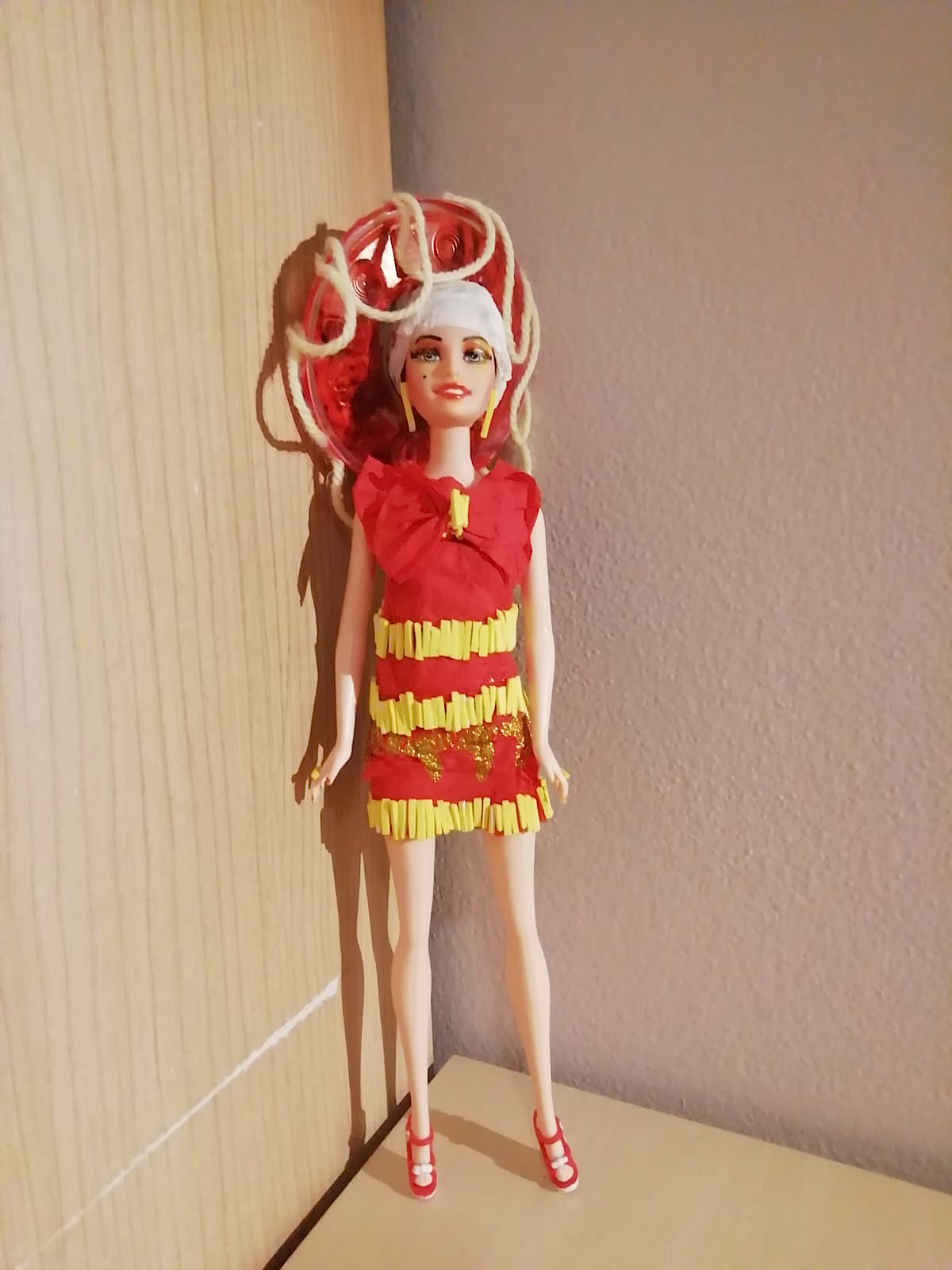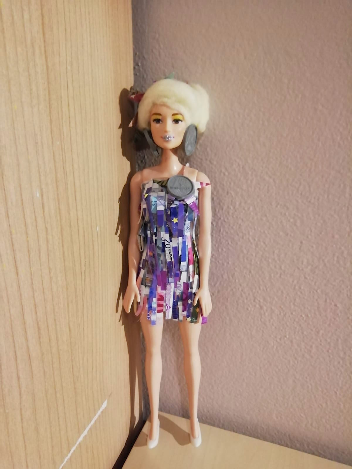 In quegli anni, oltre all’esperienza spiacevole, c’è la scoperta di Monster High. Un cartoon giapponese che lo affascina. In seconda liceo vede per la prima volta un reality in cui si creano vestiti. “Da lì tutto è partito, ho cominciato a creare vestiti per le bambole, diversi modelli. Realizzavo i vestiti con tutto quello che trovavo, le Barbie o le bambole di Monster High erano le mie modelle”. Colla, ogni tipo di materiale recuperato, tanta pazienza e soprattutto la capacità – quella di cui parlavamo all’inizio e quella del violinista Jones – di vedere oltre. “Qualunque tipo di materiale che trovo può essere utile. Non sempre creo i vestiti da un’idea iniziale già definita. A volte trovo il materiale, comincio a tagliare e poi vedo quello che ne viene fuori”.