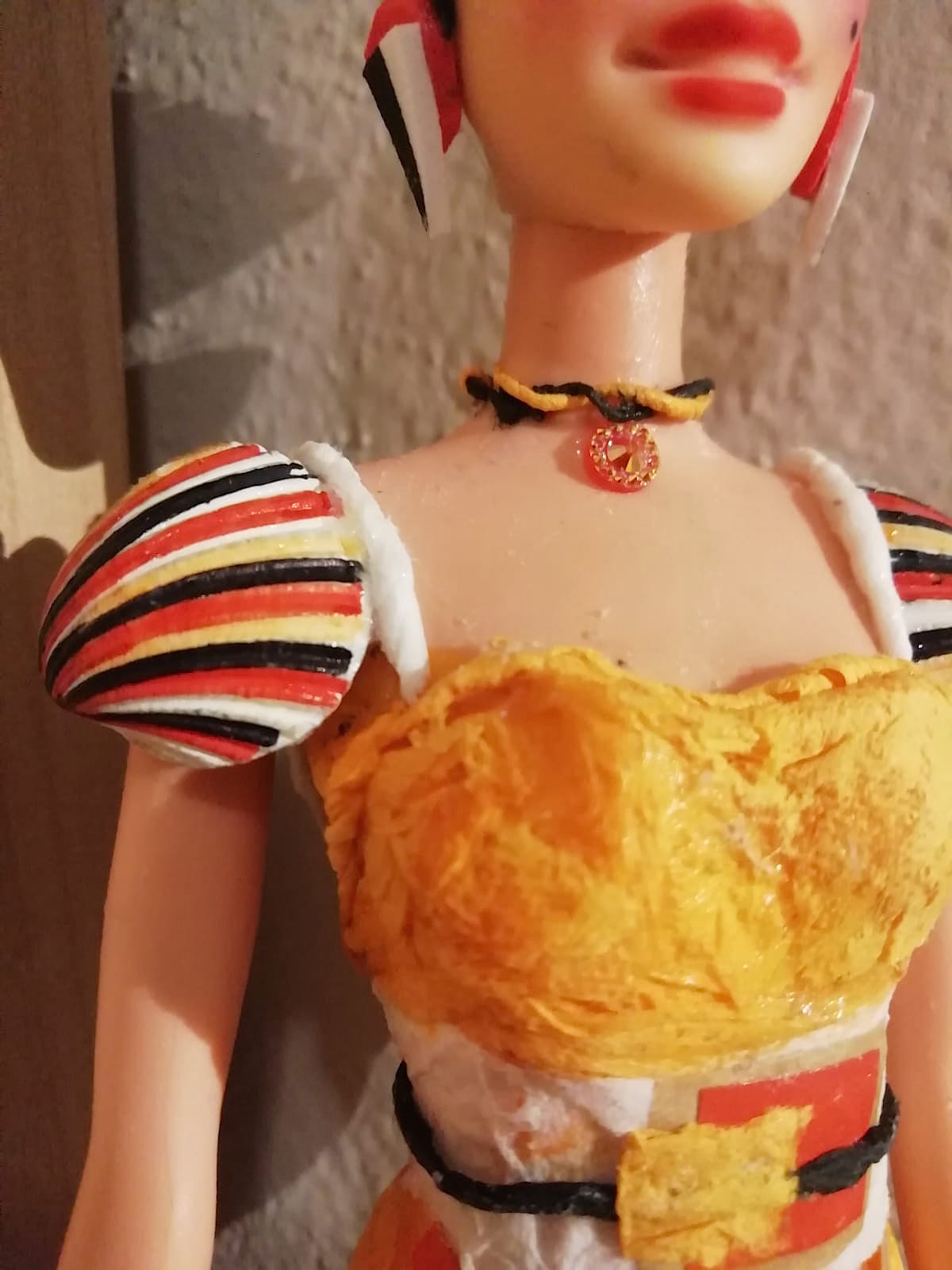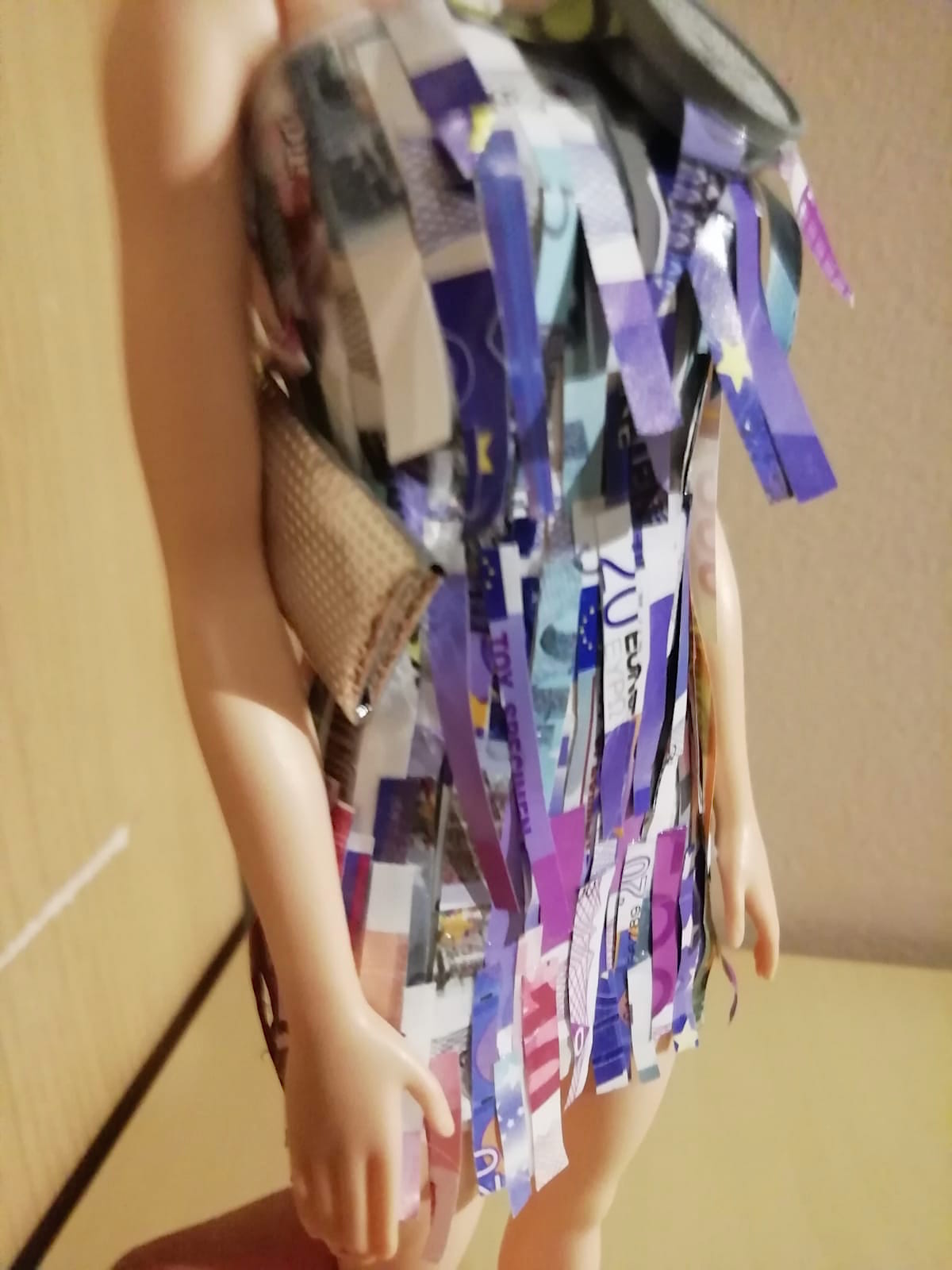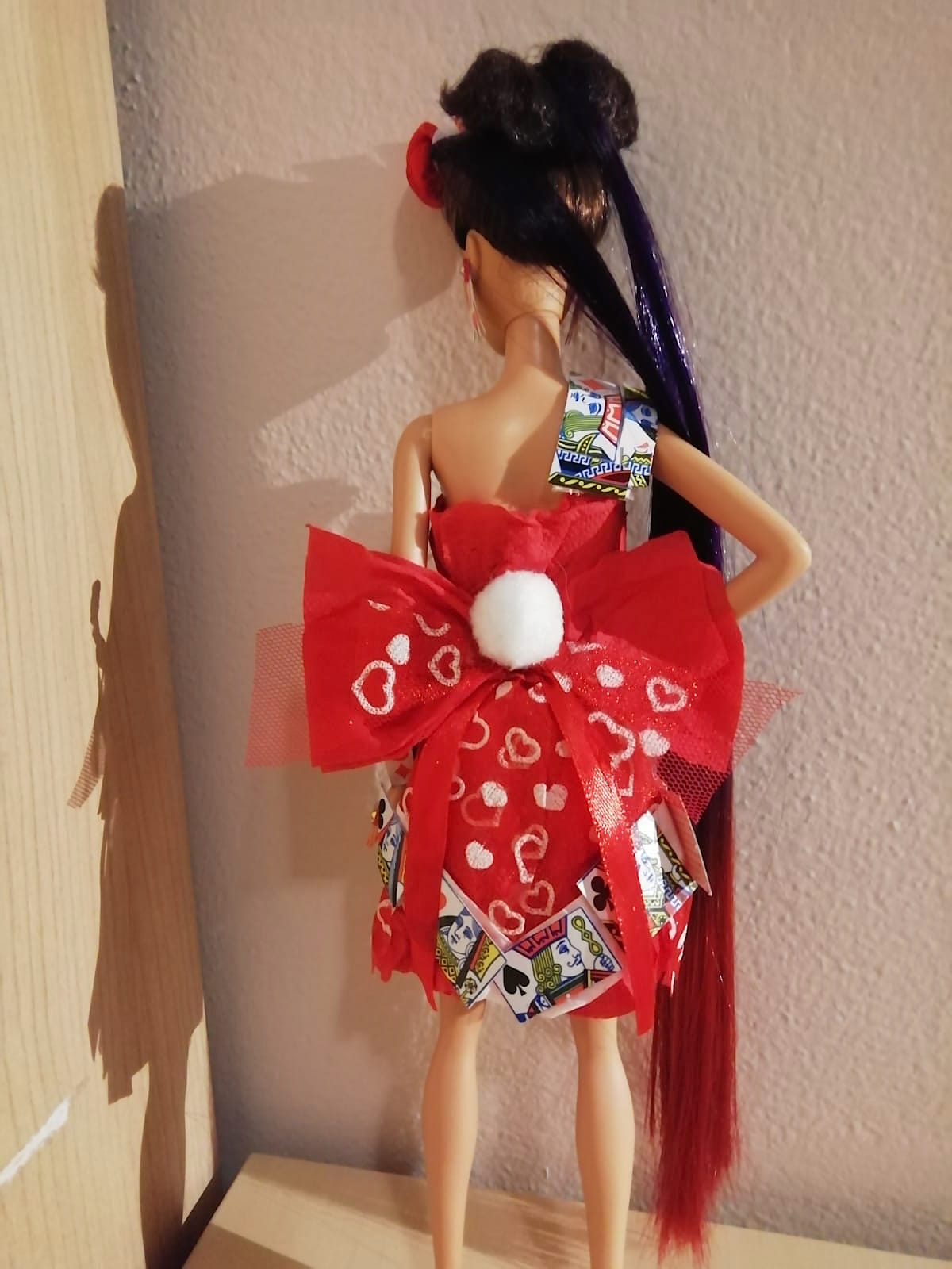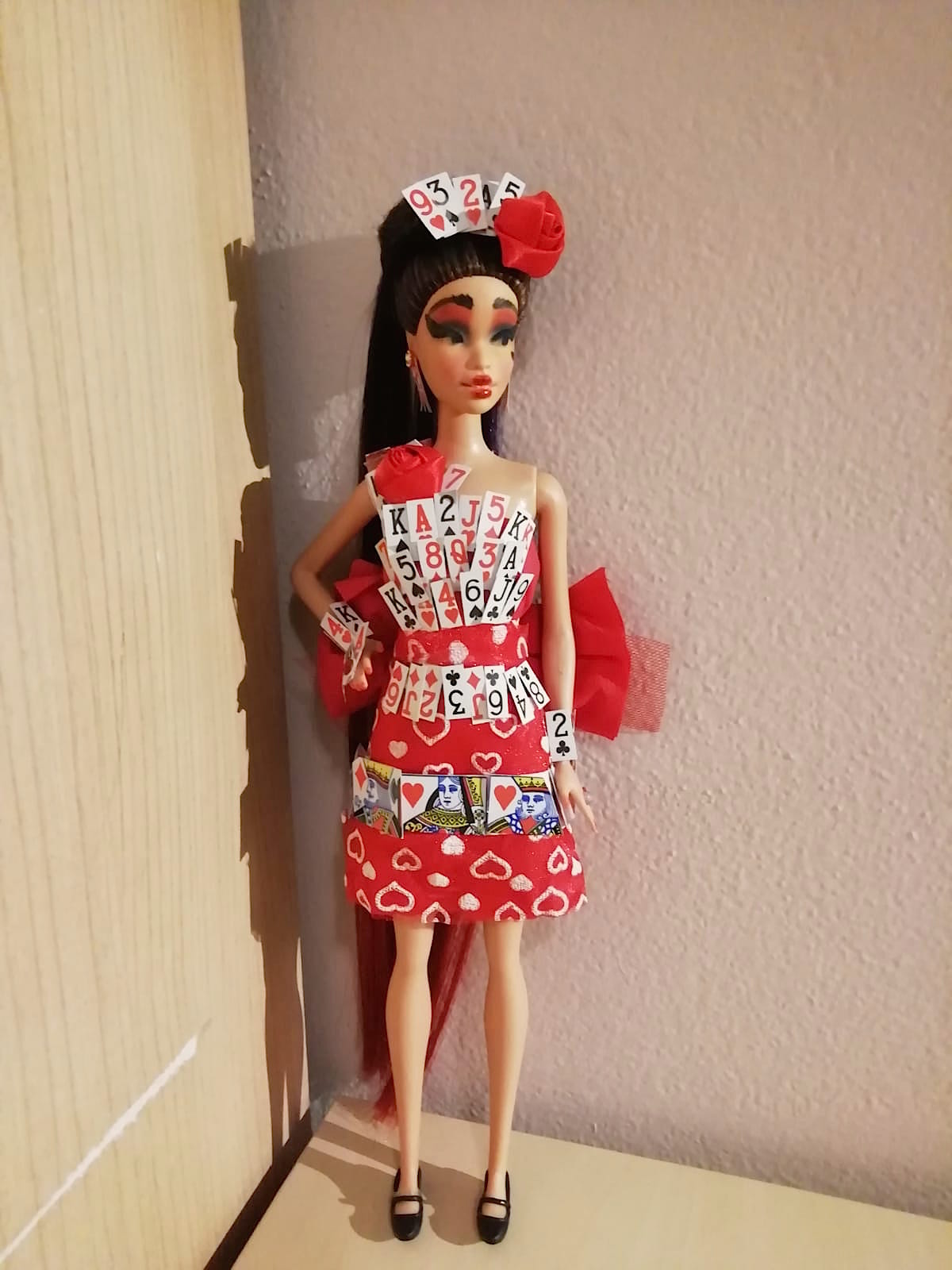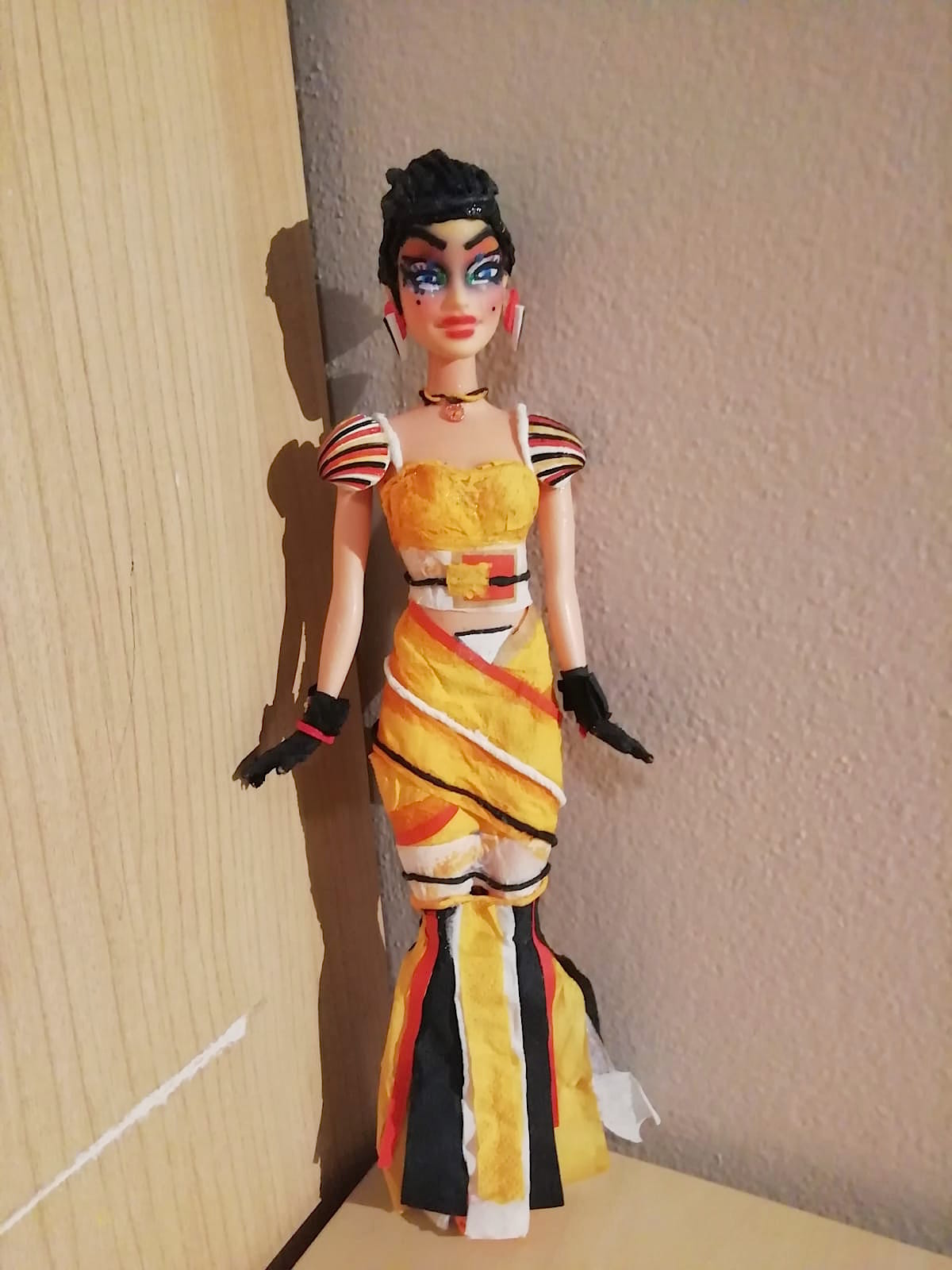 In quegli anni, oltre all’esperienza spiacevole, c’è la scoperta di Monster High. Un cartoon giapponese che lo affascina. In seconda liceo vede per la prima volta un reality in cui si creano vestiti. “Da lì tutto è partito, ho cominciato a creare vestiti per le bambole, diversi modelli. Realizzavo i vestiti con tutto quello che trovavo, le Barbie o le bambole di Monster High erano le mie modelle”. Colla, ogni tipo di materiale recuperato, tanta pazienza e soprattutto la capacità – quella di cui parlavamo all’inizio e quella del violinista Jones – di vedere oltre. “Qualunque tipo di materiale che trovo può essere utile. Non sempre creo i vestiti da un’idea iniziale già definita. A volte trovo il materiale, comincio a tagliare e poi vedo quello che ne viene fuori”.