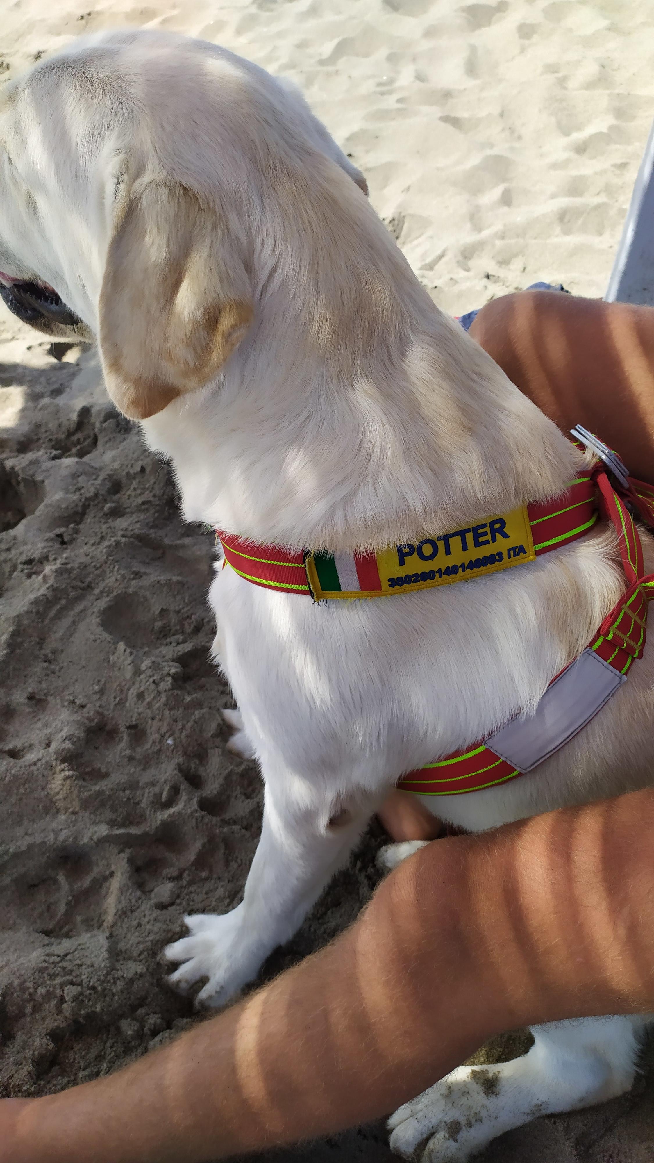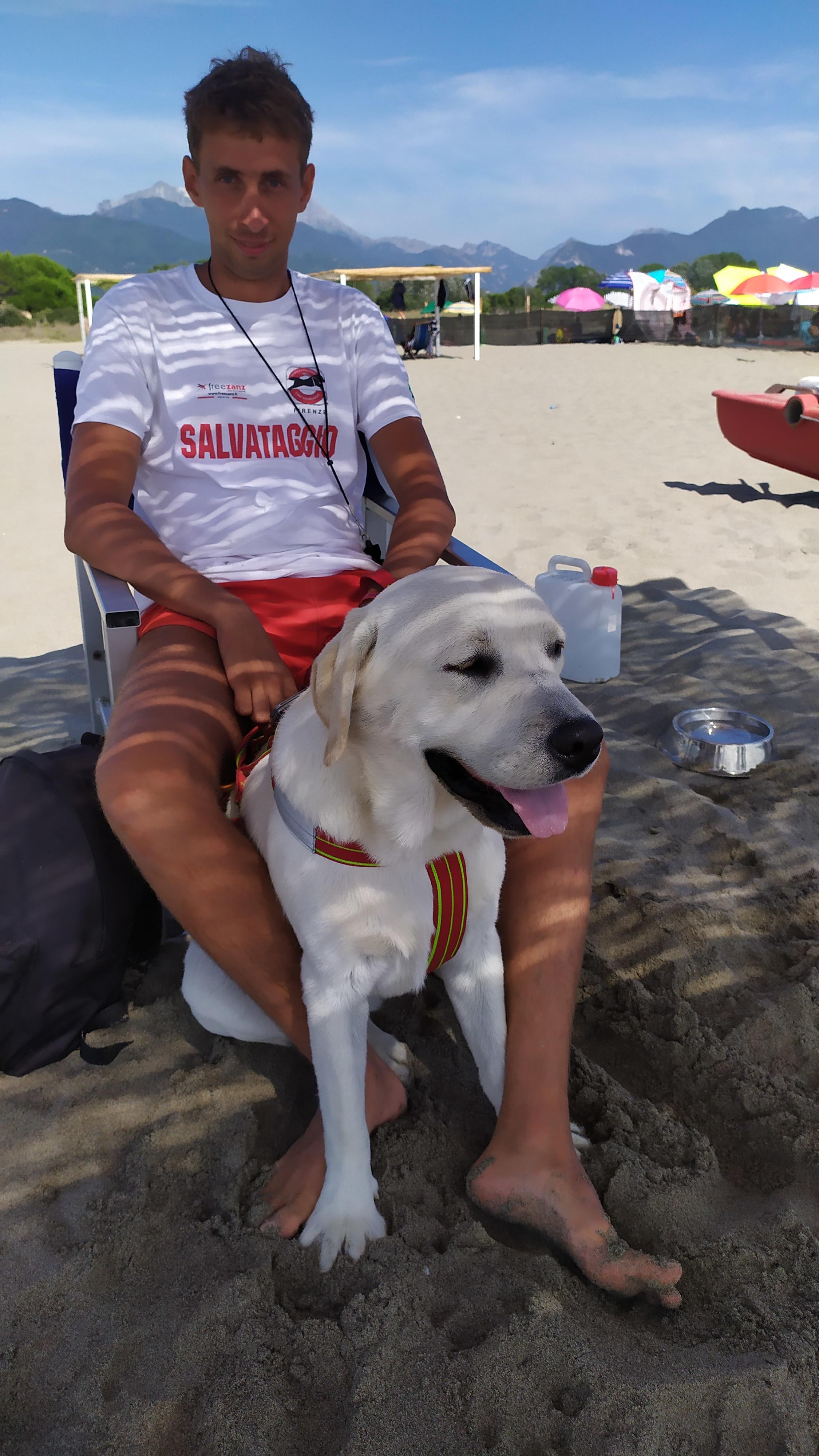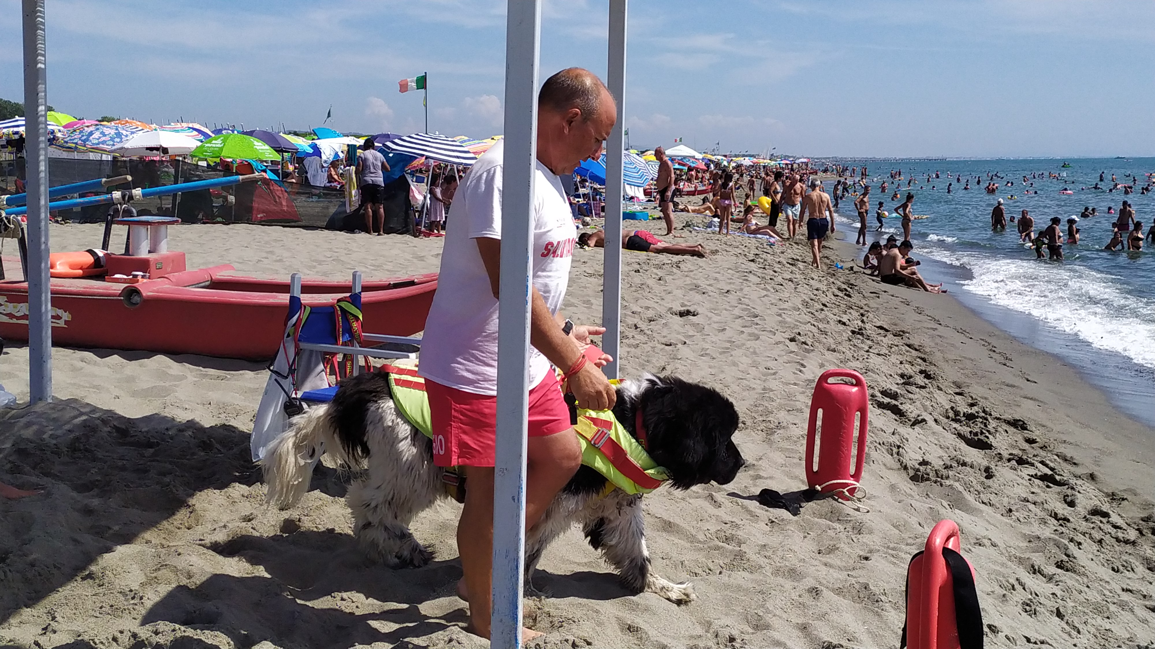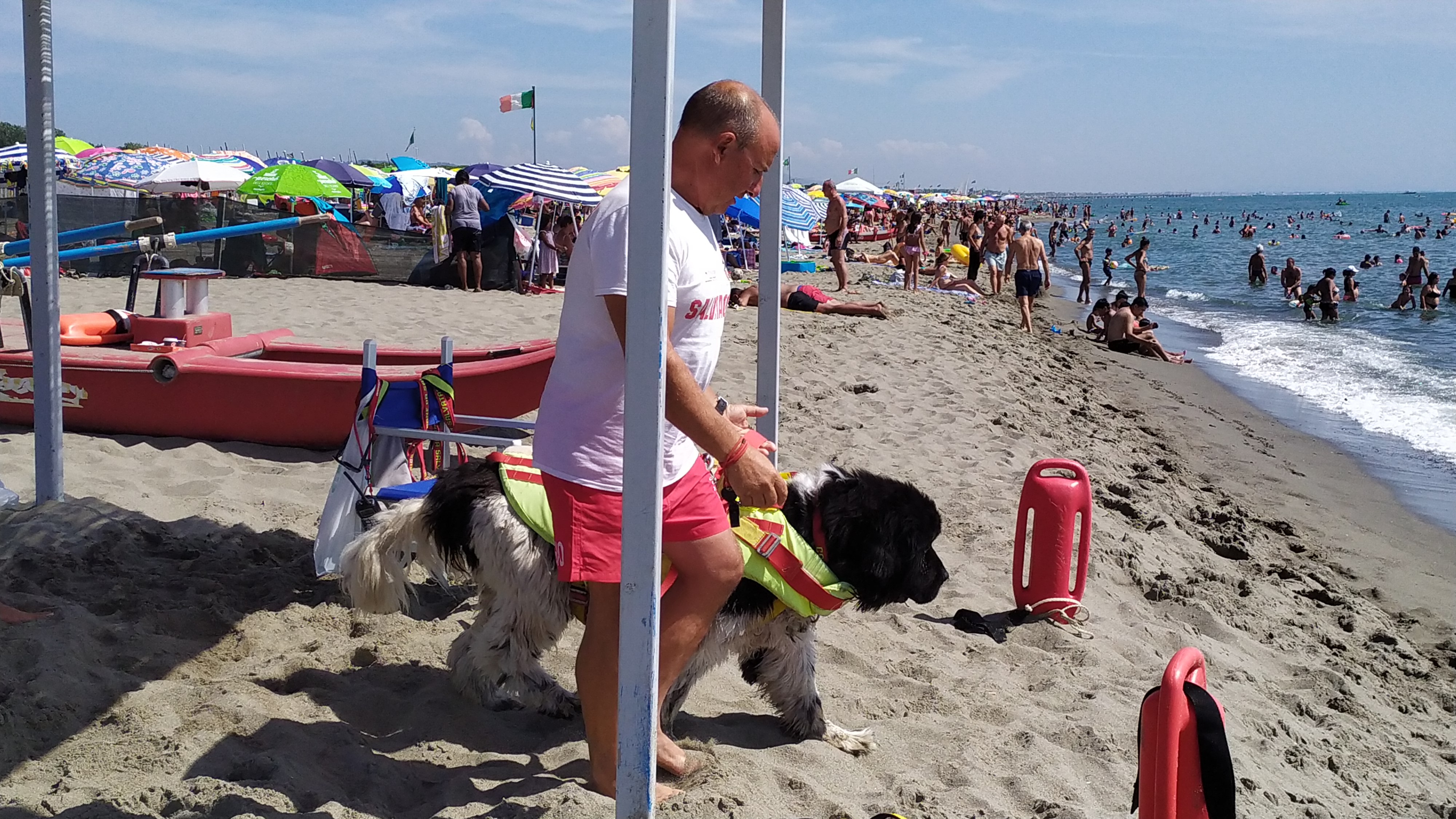 Da quest’anno, grazie ad un accordo con la società che gestisce le spiagge libere della zona e anche quella del nostro Comune, come da accordo stipulato con l’Amministrazione di Filippo Bongiovanni, i cani della SICS sono di stanza proprio davanti ai nostri gazebo balneari in ogni weekend. Abbiamo incontrato Loris e Rhea (una Terranova di 10 anni) e Lorenzo e Potter (Labrador di un anno e mezzo): l’intesa tra uomo e cane è perfetta; i due cani sono obbedienti e tranquilli, pur se ansiosi di raggiungere l’acqua; sono stati addestrati per lunghi mesi e proprio durante alcuni di questi addestramenti dal mese di maggio ad oggi hanno portato in salvo 3 persone. Loris ci spiega che i cani sono motori intelligenti: “Il loro compito sostanzialmente è quello di aiutare noi bagnini a riportare a riva la persona in difficoltá. Ci fanno da traino. Sono motori pensanti, percepiscono e sfruttano le correnti sottomarine per raggiungere più in fretta la salvezza”. Lorenzo aggiunge che per un salvataggio è meglio la coppia uomo-cane che non uomo-uomo: “Il cane aiuta molto di più l’operazione di traino e di risalita della corrente: la sua forza è incredibile!”