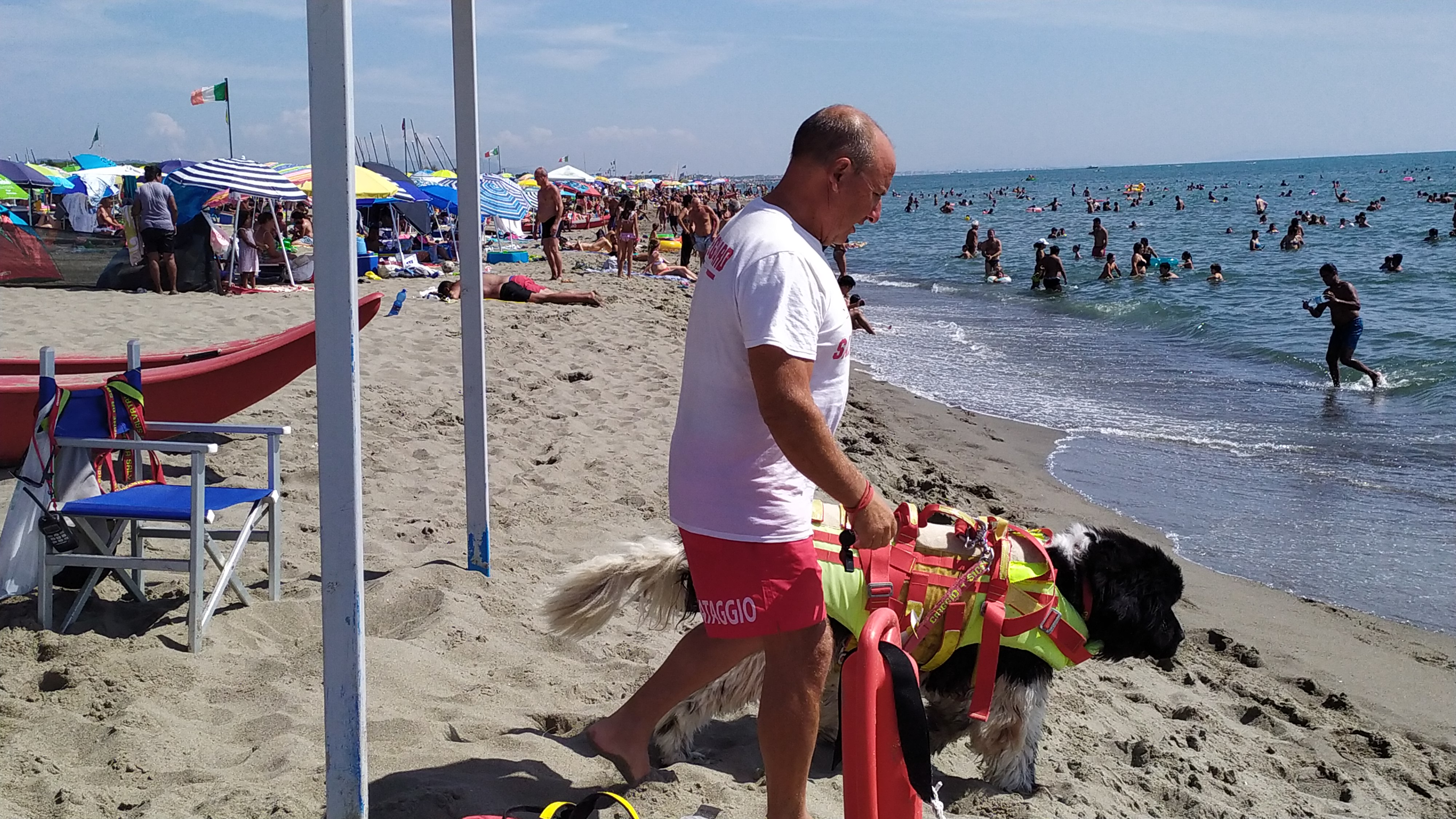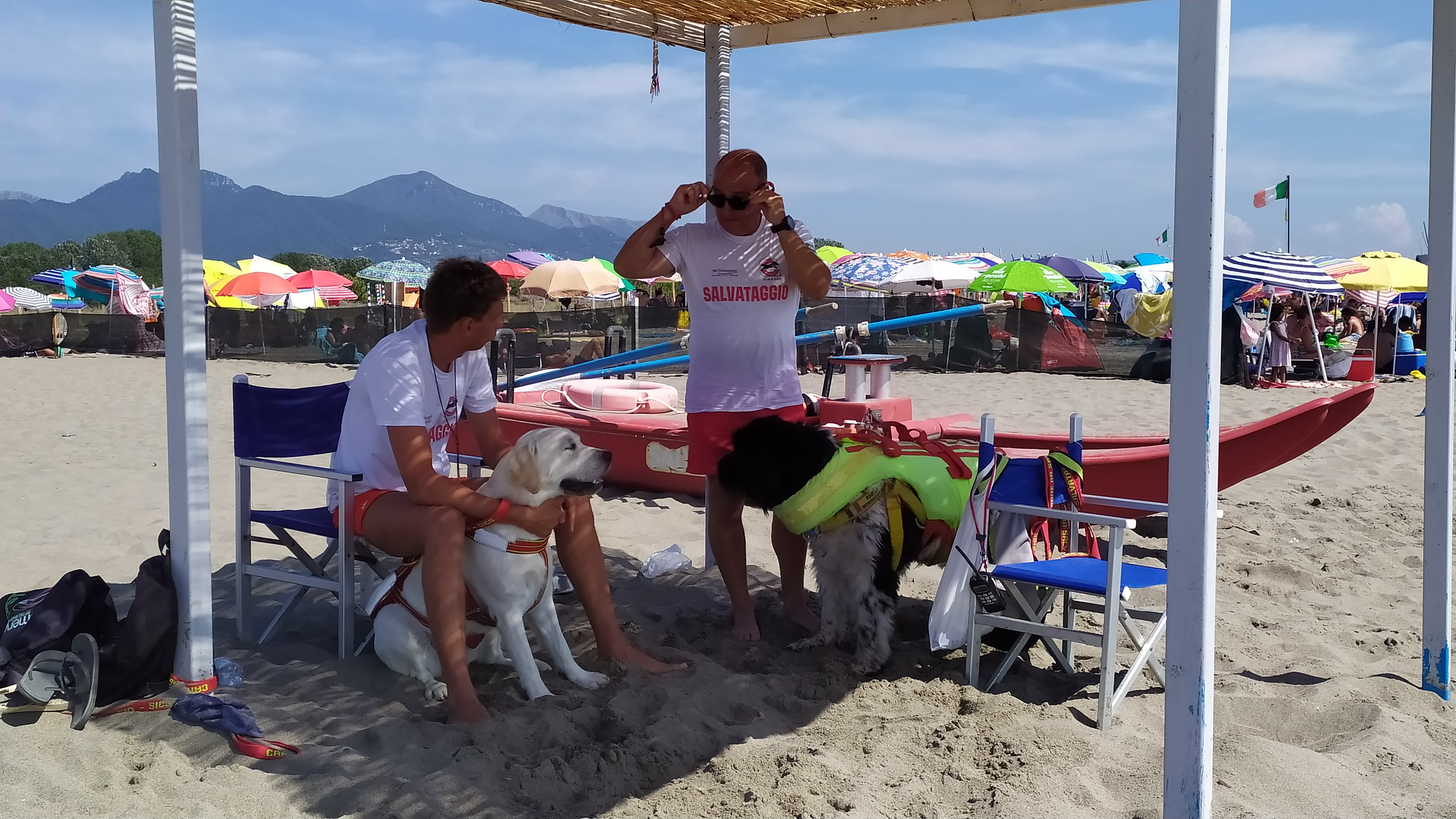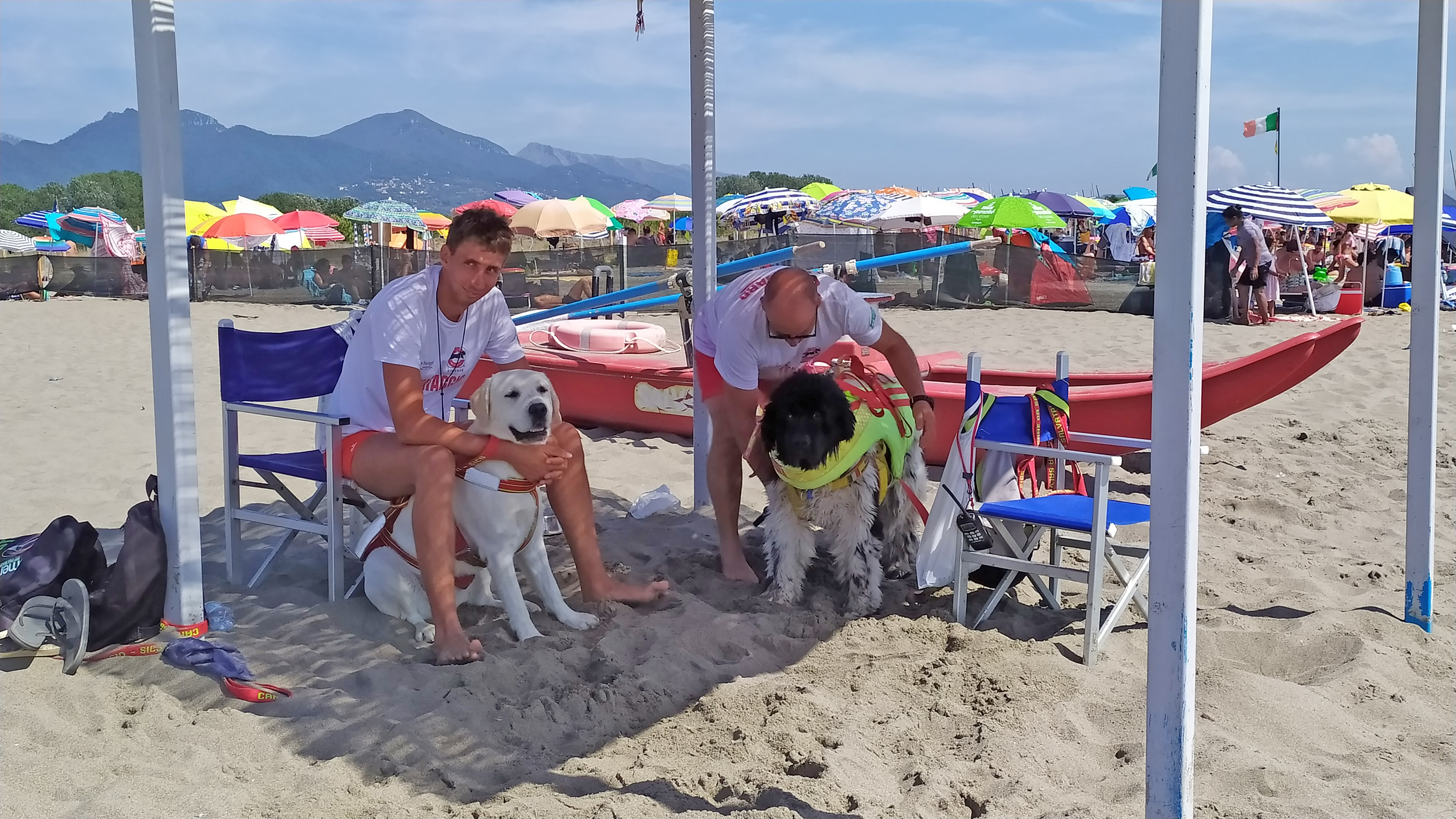 Ma chi vi si reca nelle giornate di sabato e domenica per tutta la stagione estiva potrà notare un’altra peculiarità della nostra spiaggia, ovvero la presenza di bagnini accompagnati da bellissimi cani. Potremmo chiamarli i ‘cagnini’, i cani bagnini. Appartengono ai volontari della Scuola Italiana Cani Salvataggio (SICS: www.scuolacanisalvataggio.it), sezione di Firenze: già l’anno scorso il cane Lizzy salvò una donna di Casalmaggiore, e venne premiata con tutti gli onori in una cerimonia pubblica tenutasi nella Sala d’Armi a Firenze.