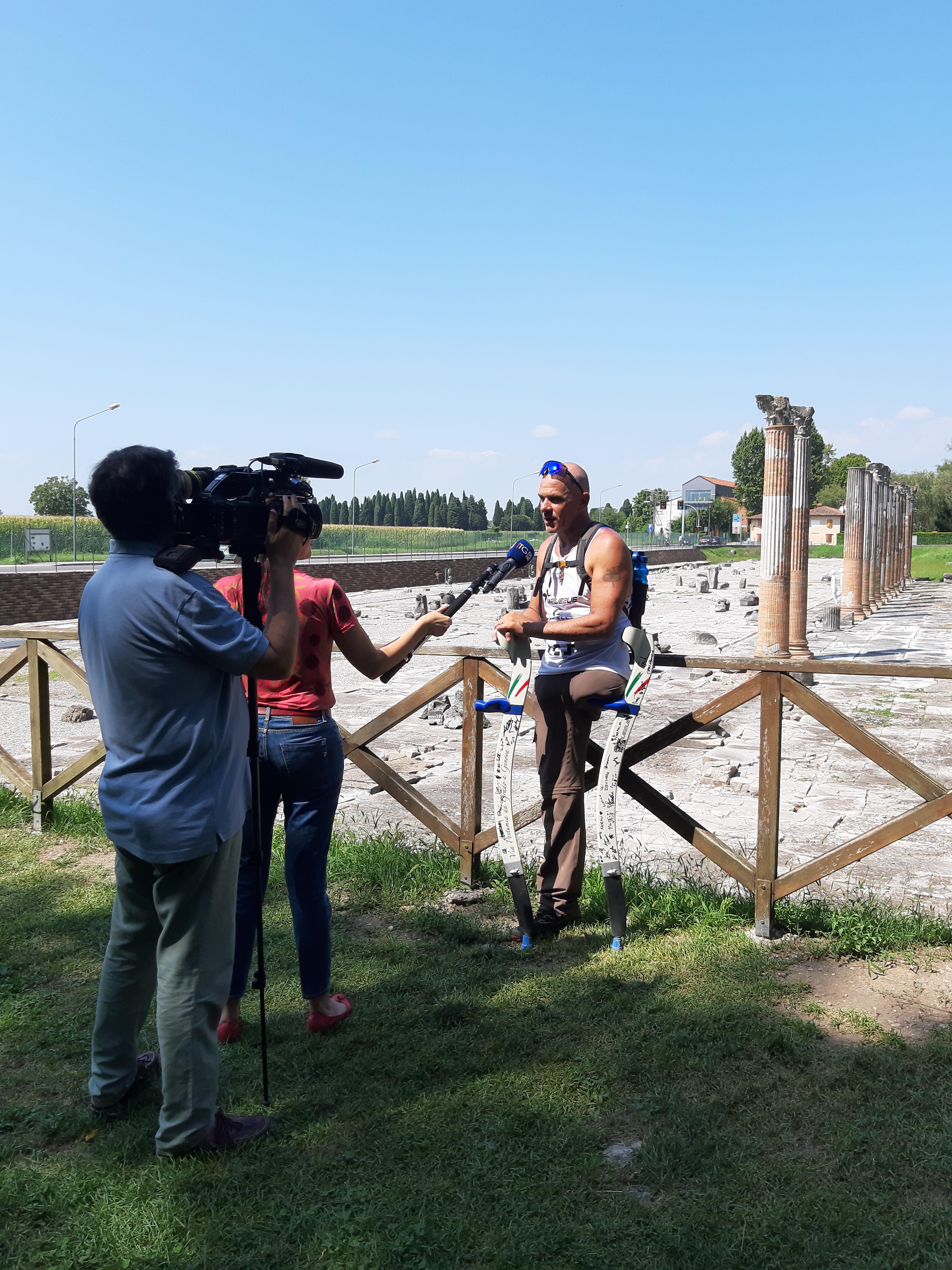 AQUILEIA – E’ partito il viaggio di Andrea Devicenzi, quello che lo porterà da mare a mare lungo la via Postumia. Ieri prima tappa (o tappa zero per come l’ha chiamata lui) da Grado ad Aquileia. Due borghi ricchi di storia, che è storia romana. Tappa zero poiché formalmente la via Postumia parte proprio dalla destinazione d’arrivo di Andrea, da Aquileia. Ma, essendo il mare così vicino l’atleta e motivatore casalasco non si è voluta far mancare la possibilità di unire i due mari. Ad accoglierlo in questa tappa tanta gente e le amministrazioni dei due comuni. Qualche omaggio, qualche dono da recapitare a Genova, al sindaco del capoluogo ligure per testimoniare che le strade uniscono genti in un unico grande abbraccio. Missione compiuta dunque. Da oggi, e per tutte le tappe, alla mattina verso le 8 troverete il racconto del viaggio: 930 km a tagliare la pianura. Buona visione dunque.