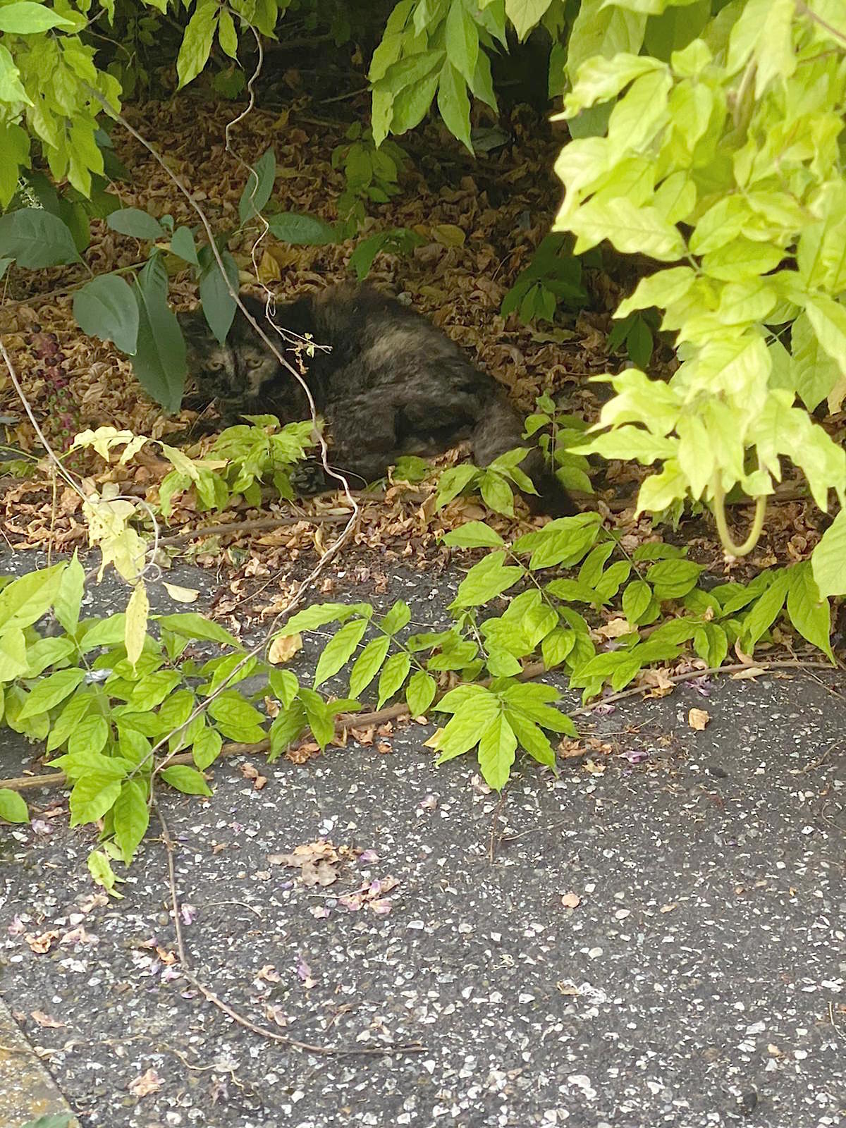 Tutto era scattato questa mattina quando una ragazza, a spasso con il cane, aveva notato quella gatta dal comportamento un po’ strano. Quando si è avvicinata per vedere cosa aveva, l’animale si è trascinato sotto il cespuglio. Da lì un post sui social per vedere se quel bell’esemplare tartarugato appartenesse a qualcuno e soprattutto per chiedere aiuto.