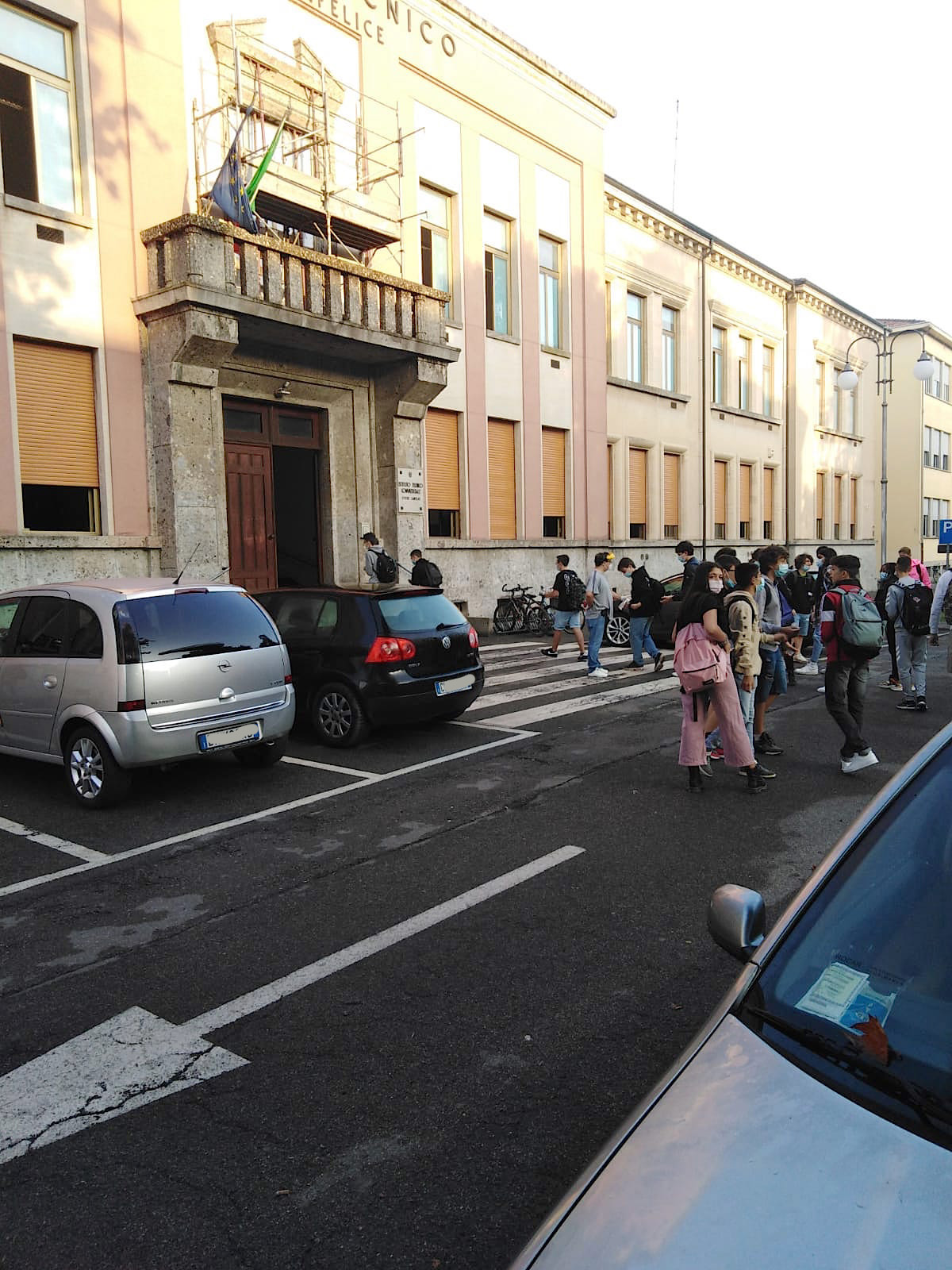 Nella zona immediatamente antistante istituto ITC e medie ovviamente vi sono gruppi di studenti che se la contano o guardano lo smartphone in mezzo strada in attesa di entrare. Questi a mio avviso sono in pericolo di essere investiti dalle auto che entrano in quella zona per scaricare ragazzi o andare nei vari parcheggi. L’ingresso risulta consentito a tutti non solo ad insegnanti o addetti ai plessi”.