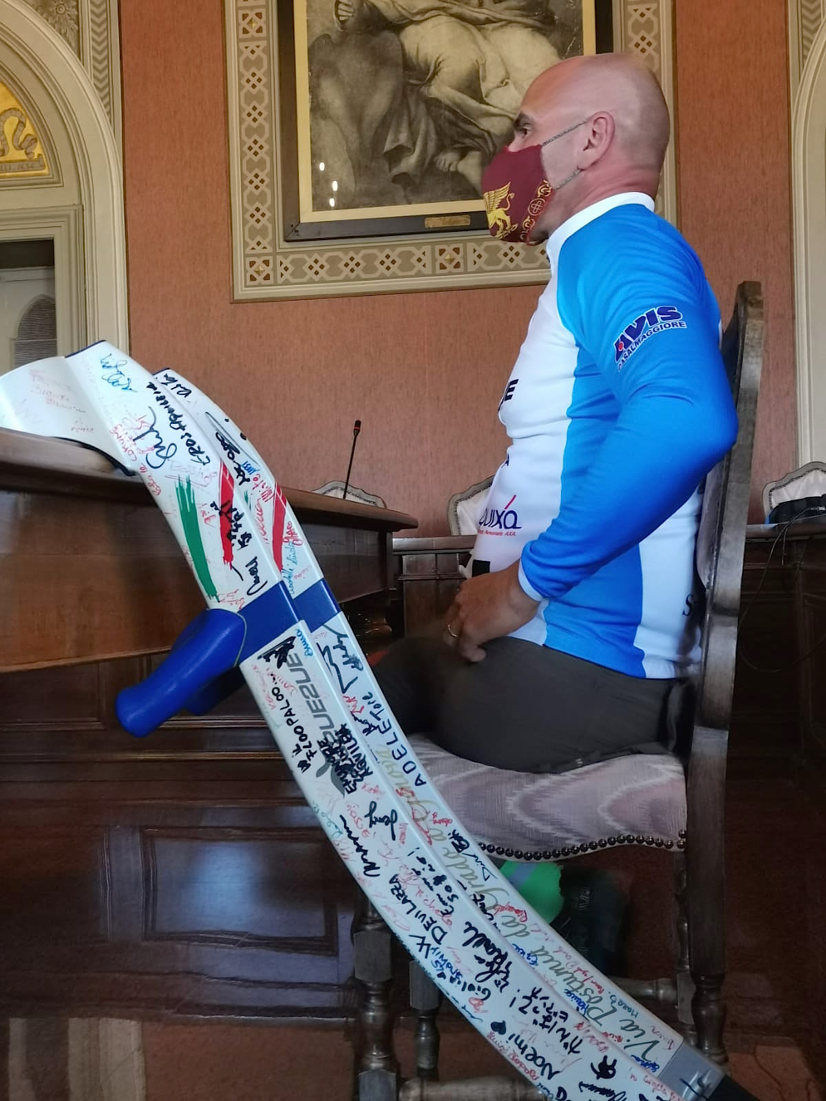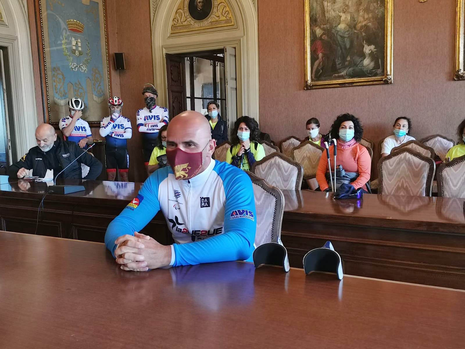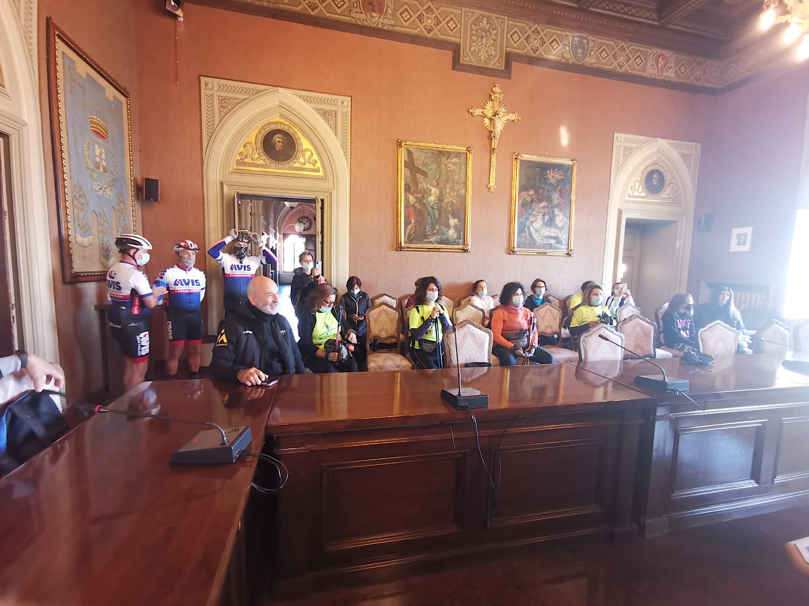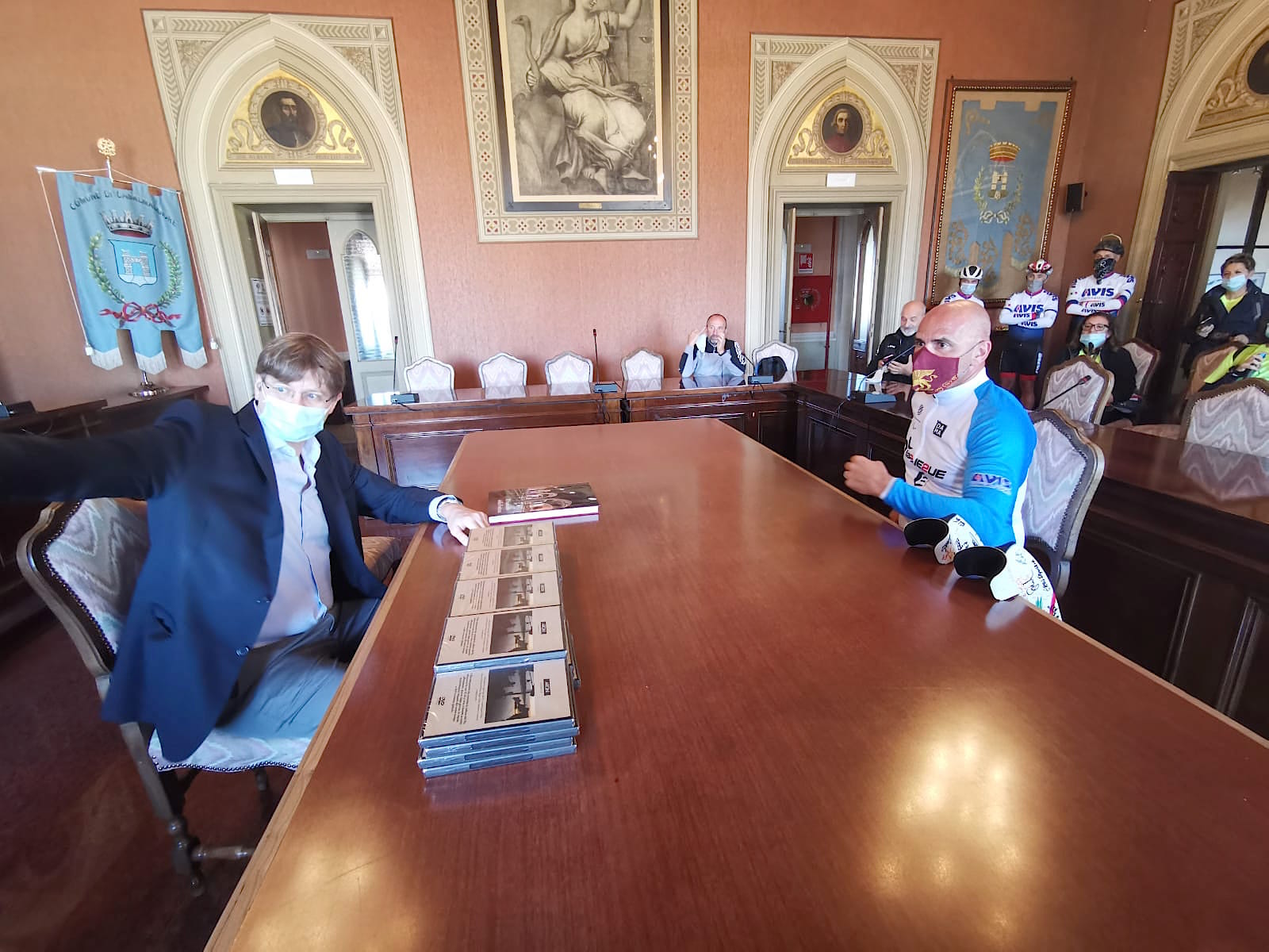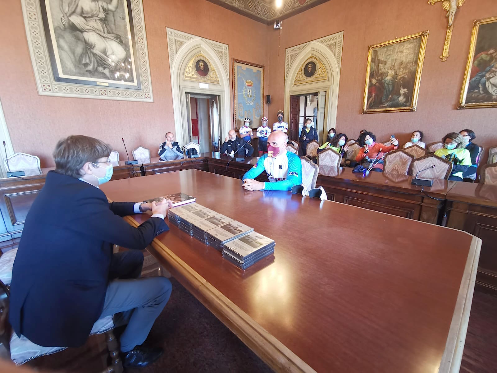 Il sindaco di Casalmaggiore ha illustrato con dovizia di particolari la storia del palazzo comunale e dei personaggi dipinti nella sala del Consiglio. Ha raccontato con la giusta enfasi piccole parti di storia, ha omaggiato Andrea di un libro sulla Chiesa della Fontana e tutti i presenti di un DVD che parla di argini e di mobilità dolce. Ieri stessa cosa aveva fatto il sindaco di Sabbioneta Marco Pasquali e l’altro ieri quello di San Martino Dell’Argine Alessio Renoldi. Hanno mostrato la bellezza dei loro paesi, l’unicità di queste nostre terre di bassa padania, la forza della gente.