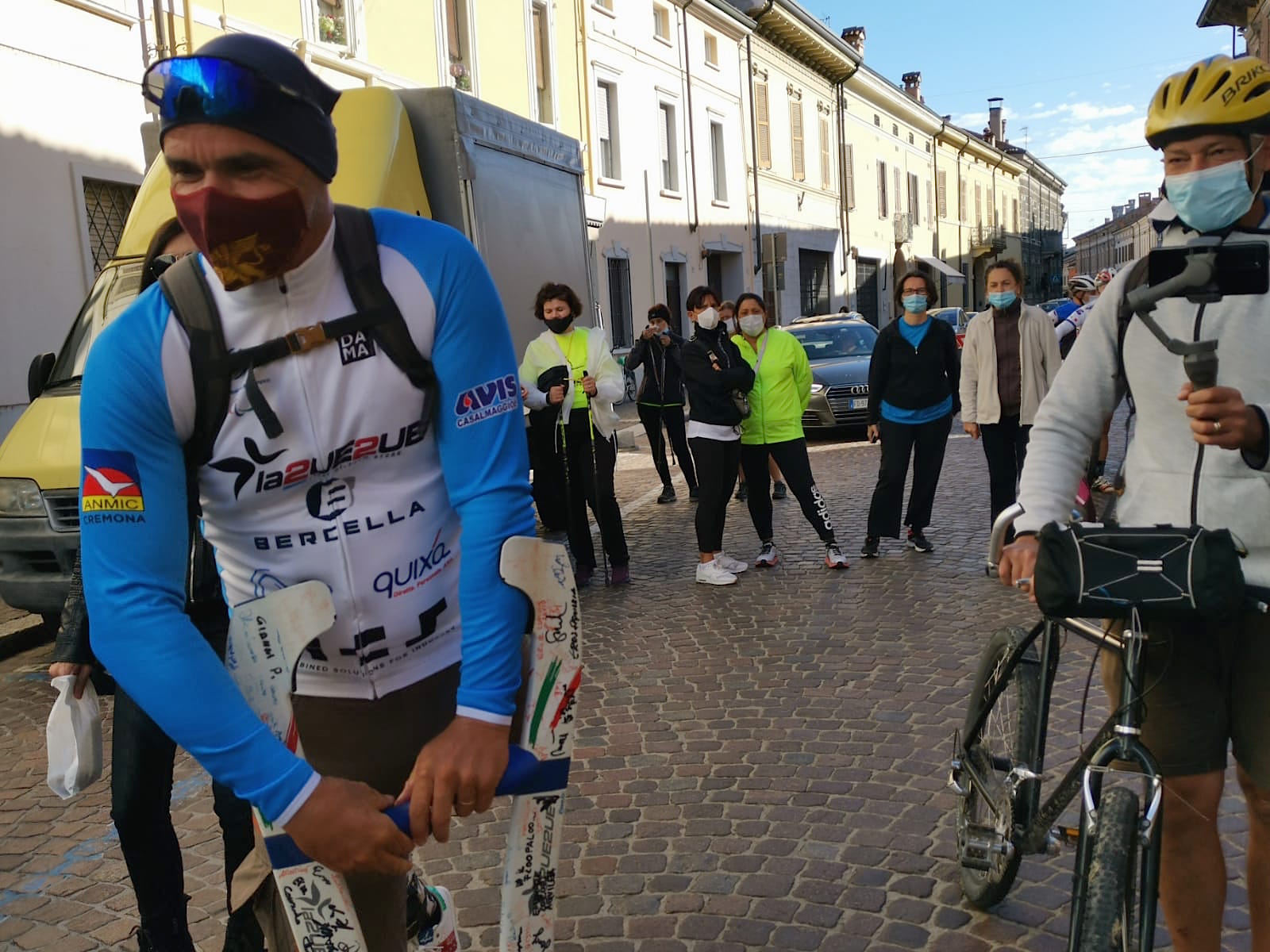 E’ giunto alla sua Itaca Ulisse, con un bel gruppo di compagni di viaggio. Dall’infermiera Ferdinanda, che alle due riprendeva a lavorare in ospedale alla maestra Patrizia che fotografava i fotografi, dagli amici dell’AVIS pedale Casalasco, compagni di tante strade e tanti allenamenti al gruppo di donne del nordic Walking. “Stamattina ho un bel gruppo di compagni di viaggio” ci ha detto non nascondendo la soddisfazione. “Qui sono a casa, ed è strano portare un percorso sulle strade che conosci ma è un’esperienza nuova che andava fatta”.