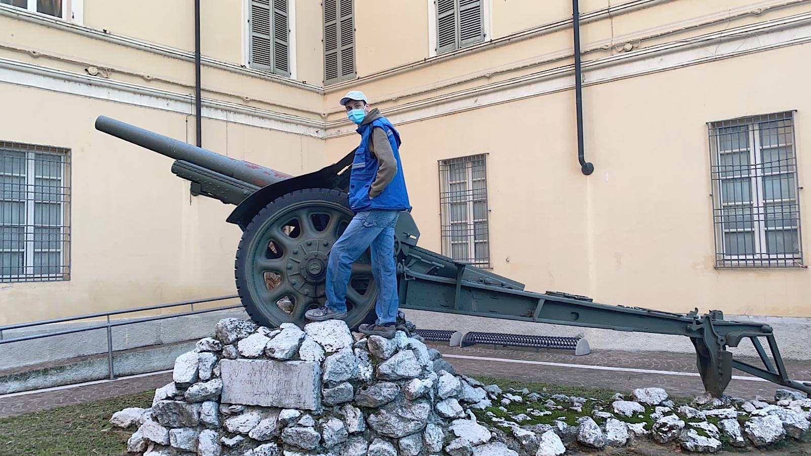 Quello di Casalmaggiore, messo nel 1973 e dedicato ai caduti di tutte le guerre, era stato affidato all’associazione Artiglieri un tempo attiva sul territorio. Erano loro a prendersene cura sino a che hanno potuto, sino a che ci sono stati. I Bersaglieri e l’associazione Armi e Bandiere, insieme al Voltese Giuseppe Franceschi, appassionato, e a Marco Gerevini, consigliere comunale oltre che titolare dell’armeria omonima lo hanno rimesso in sesto. Per ricordare i caduti di tutte le guerre e per ridare dignità ad un angolo di città che ne aveva necessità.