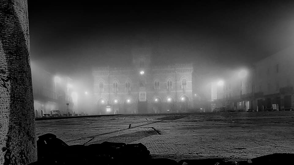 CASALMAGGIORE – Ore 23 di un sabato sera di novembre. Una spessa coltre di nebbia si appoggia sulle cose, rendendo la notte ancor più impenetrabile, ancor più pesante. C’è un silenzio innaturale in tutta la città, non c’è un’auto in giro, nessuna persona a piedi. Il nulla. Nel primo lockdown erano le sirene delle ambulanze a spezzare il silenzio, in questa notte di secondo lockdown è il tubare dei piccioni. Non lo si sente mai amplificato come in questo primo sabato di chiusura. E’ comunque un piccolo istante che ti ricorda che la vita c’è, da qualche parte ed oltre la coltre bianca, oltre le regole, oltre le restrizioni del Covid.