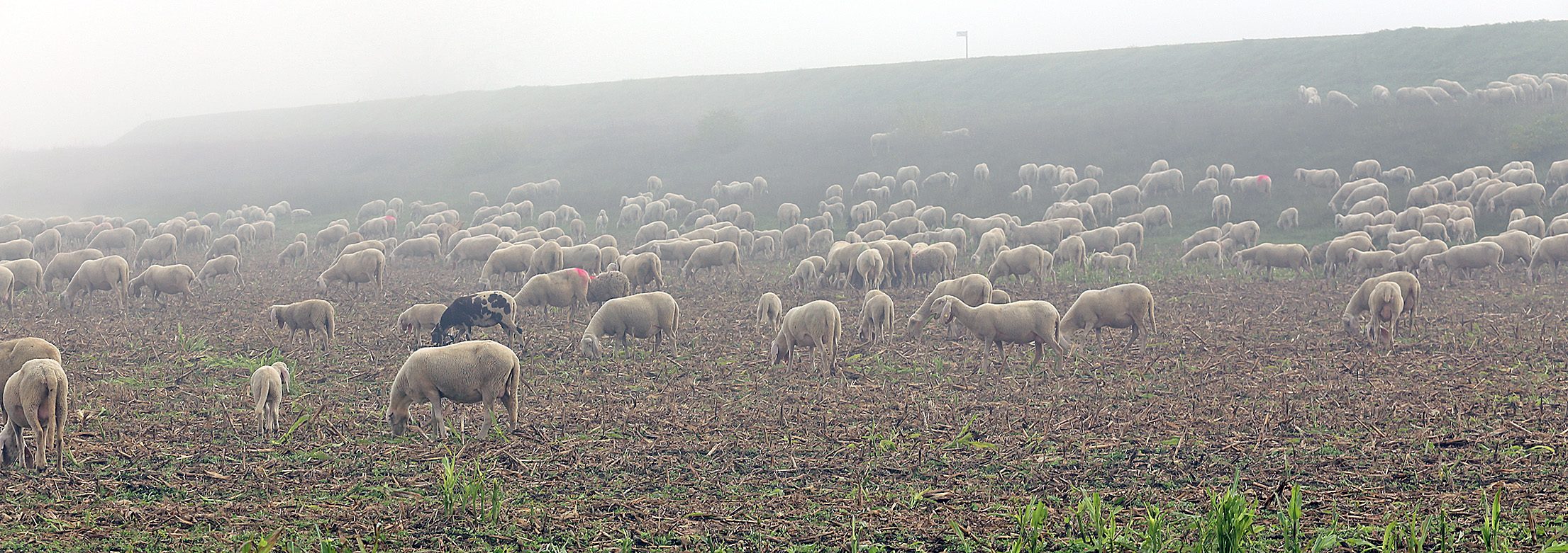 Continua ad andare avanti e indietro, tra il ponticello del canale d’irrigazione e l’argine maestro. La gente si ferma a guardare quella scena. Non è la prima volta che i greggi passano da Martignana, ma questo è uno dei gruppi più numerosi che si siano visti da queste parti. Qui, aggrappati all’argine maestro, nel silenzio di leggere coltri di nebbia il tempo pare essersi fermato.