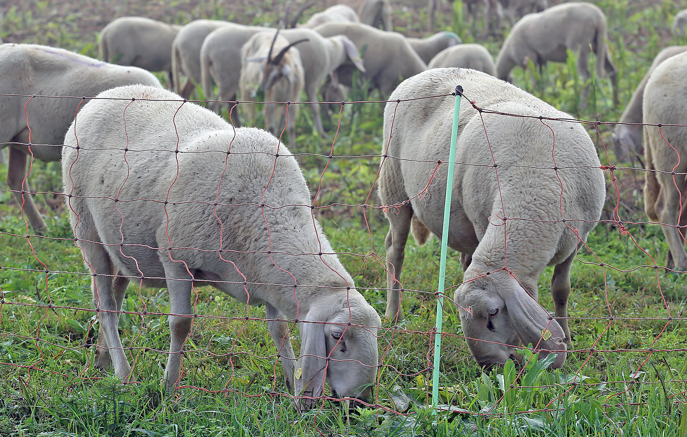 Non perde mai di vista i capi che si assembrano nel campo di fronte alla chiesa di San Serafino. Un gruppo si distacca dal resto. Fa un fischio al cane che parte e le raggruppa prima di tornare indietro. Non ha paura di perderne per strada: “Ho i cani che controllano, senza di loro sarebbe impossibile fare quello che faccio”.
