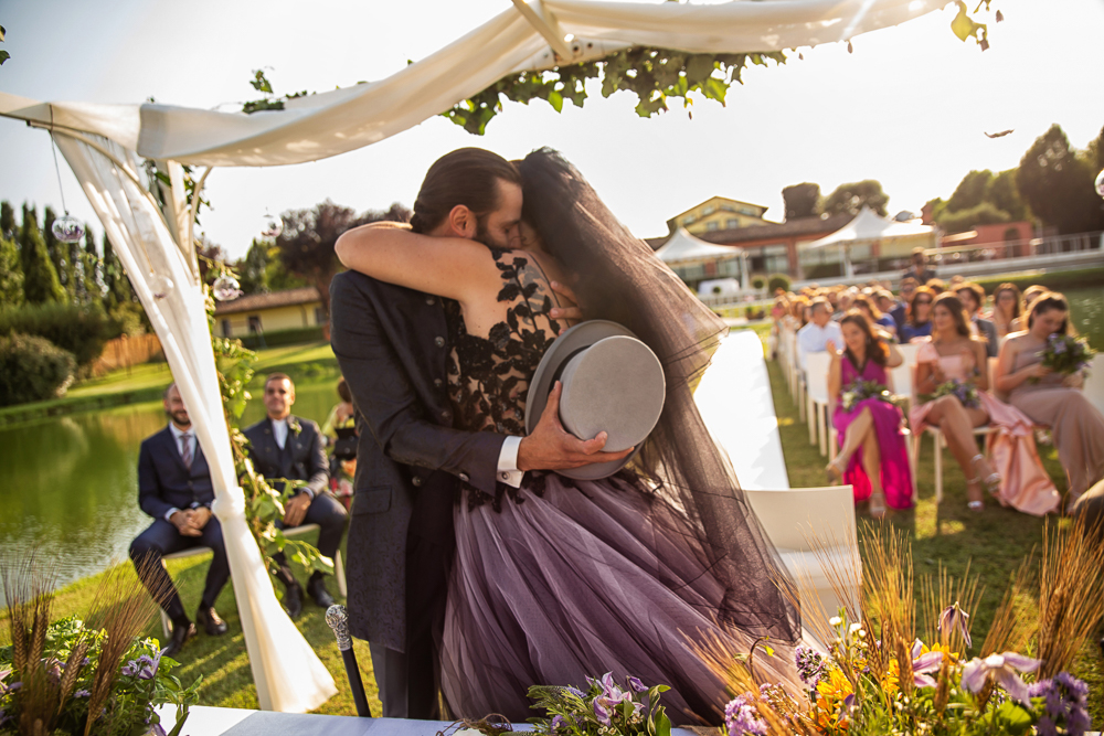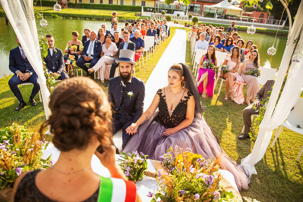 “Immaginatevi – scrive – di avere un piccolissimo studio fotografico in un paesino sconosciuto e disperso nella bassa padana. Immaginatevi di seguire da anni un sito, il sito internazionale più importante che tratta di matrimoni alternativi sognando su quelle foto. Immaginatevi che negli anni vi capitino (grazie miei amati sposi) vari matrimoni che vi fanno venire in mente il mood di quel sito. E poi immaginate di ricevere una mail proprio da quel sito dove vi comunicano che uno dei vostri servizi wedding è stato scelto per essere pubblicato. Beh ragazzi, oggi si avvera un piccolo sogno, siamo su Rock’n Roll Bride. Grazie ai miei sposi Erica Brunhild Curle e Antonio Cighetti che hanno dato vita ad un matrimonio spettacolare! La citazione dei Rammstein come primo ballo lo rende proprio MIO!”.