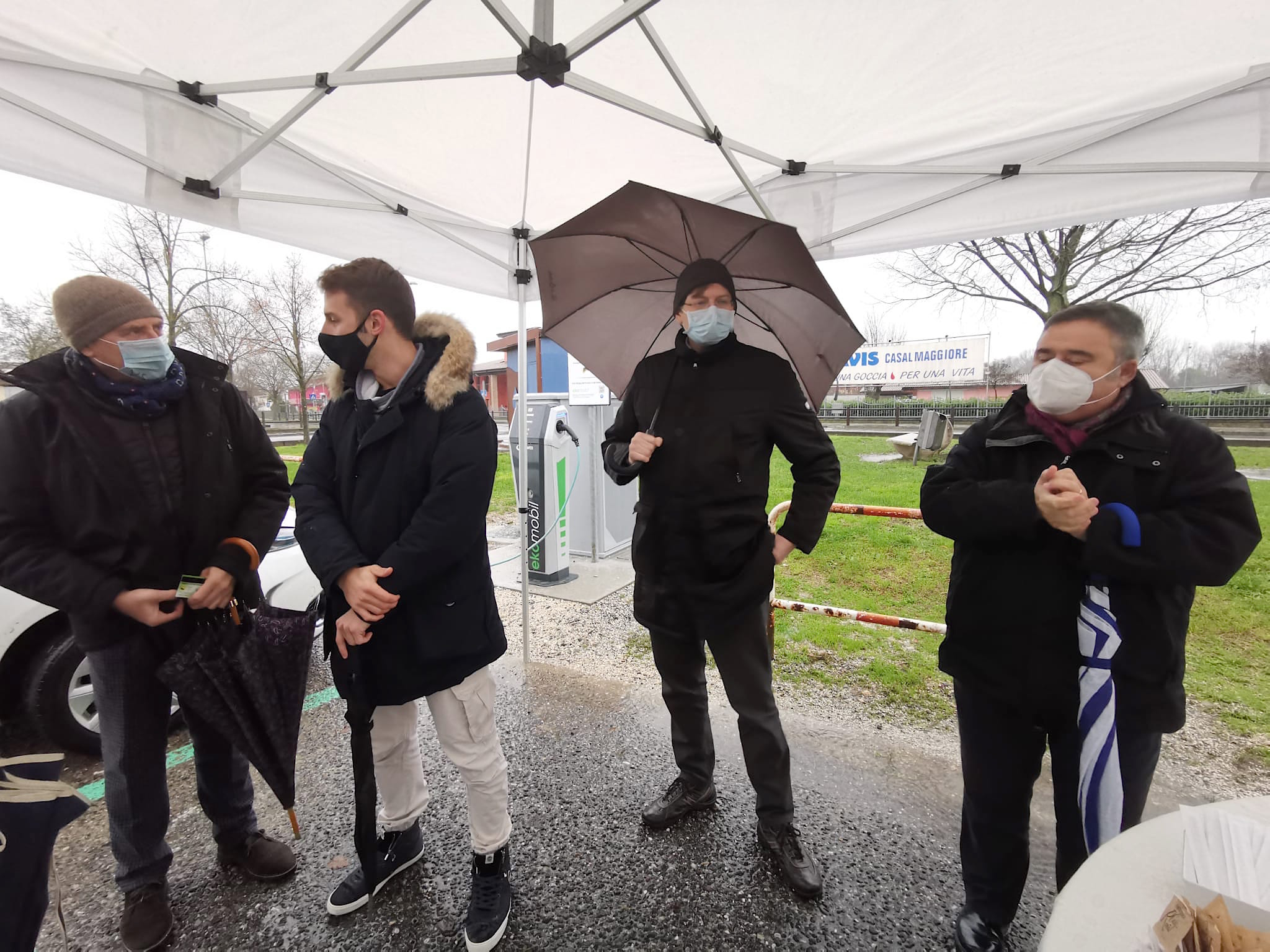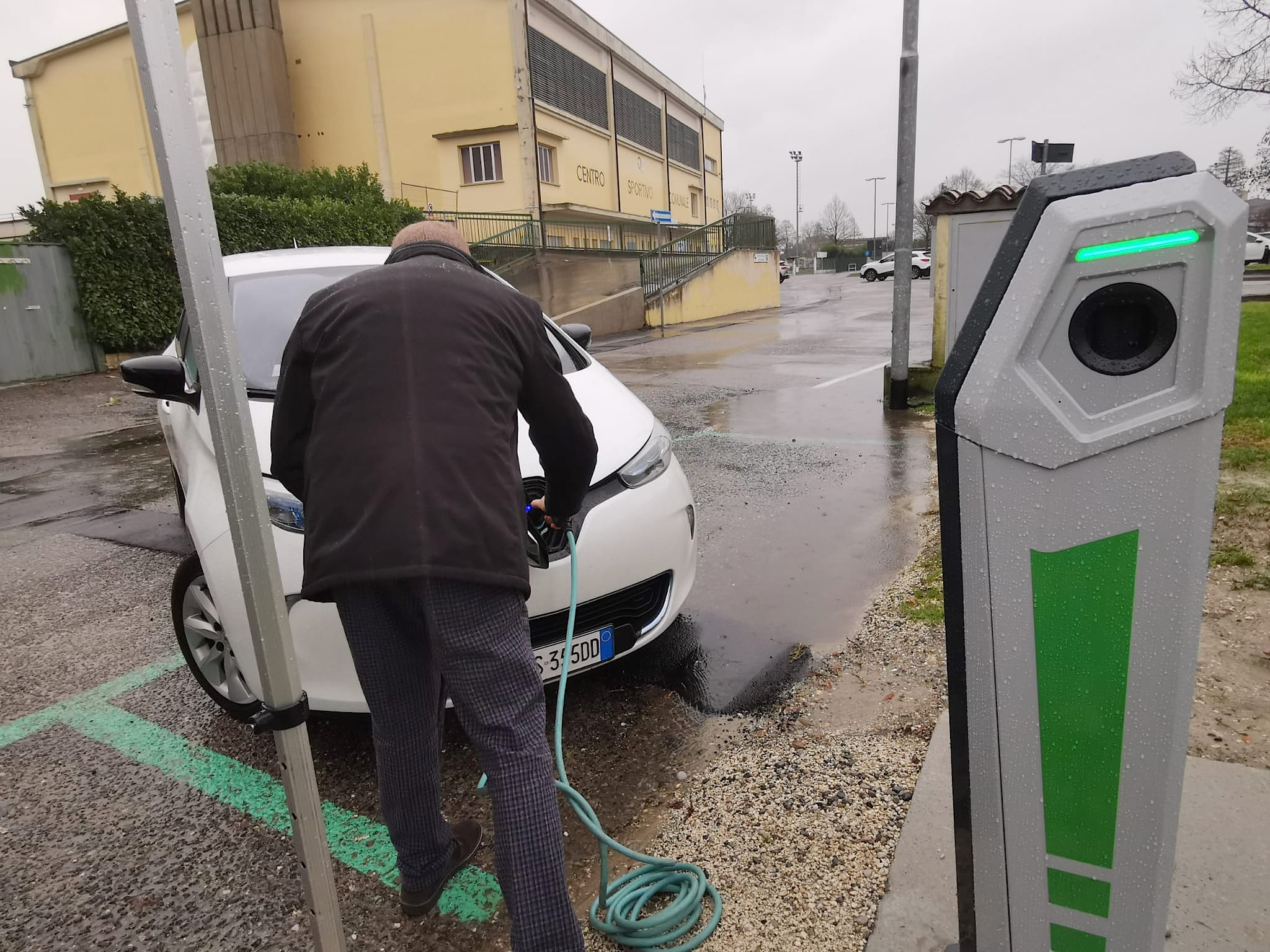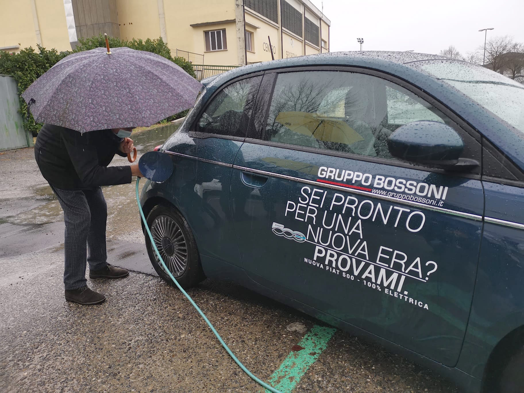 La stazione di ricarica è stata inaugurata ieri mattina, sotto la pioggia battente, alla presenza del sindaco Filippo Bongiovanni, del vice sindaco Giovanni Leoni, del responsabile dell’ufficio ambiente Uber Ferrari, dei rappresentanti di Ekomobil Francesco Pinardi e Federico Bosio (e-mobility project manager), di Eros Lazzarini, cremonese, uno dei primi in provincia di Cremona a passare all’elettrico (ha l’auto elettrica dal 2016, la prima colonnina elettrica urbana fu installata solo l’anno dopo) e di Francesco Bossoni, responsabile marketing, digital e comunicazione del Gruppo Bossoni.
