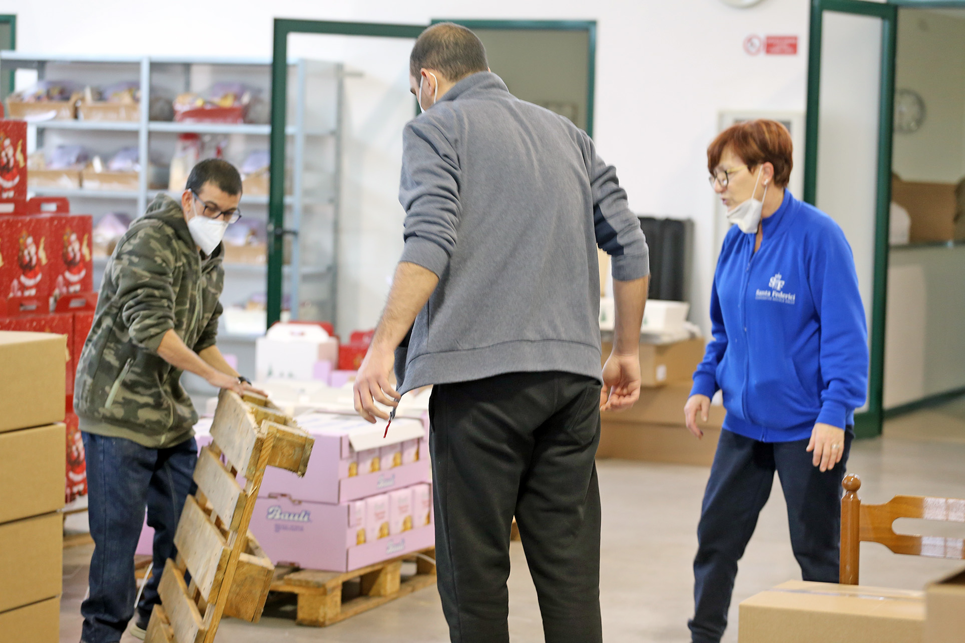 Il laboratorio ergoterapico è un’idea fortemente perseguita dalla Santa Federici. E non è più quello di un tempo in cui il lavoro lo si faceva nella stessa sede, assolutamente monotono, quasi uno (stressante) passatempo: qui si lavora sul serio, con partite e scadenze, con commissioni da portare a termine. Sono aperti da un anno e quest’anno, con i pacchi di Natale sta andando più che bene. Diverse le ditte che si sono affidate al ‘Settore B’ di Santa Federici per i presenti natalizi. Erano stati 200 i pacchi confezionati l’anno scorso. Ad una settimana da Natale sono oltre 400 quelli confezionati quest’anno.