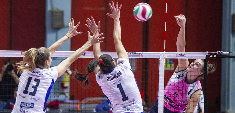 Bergamo: Valentin 5, Faucette-Johnson 16, Dumancic 13, Moretto 6, Loda (K) 21, Enright 17, Fersino (L), Mio Bertolo 1, Prandi, Lanier 8. Non entrate: Marcon, Faraone (L). All. Turino-Zanelli