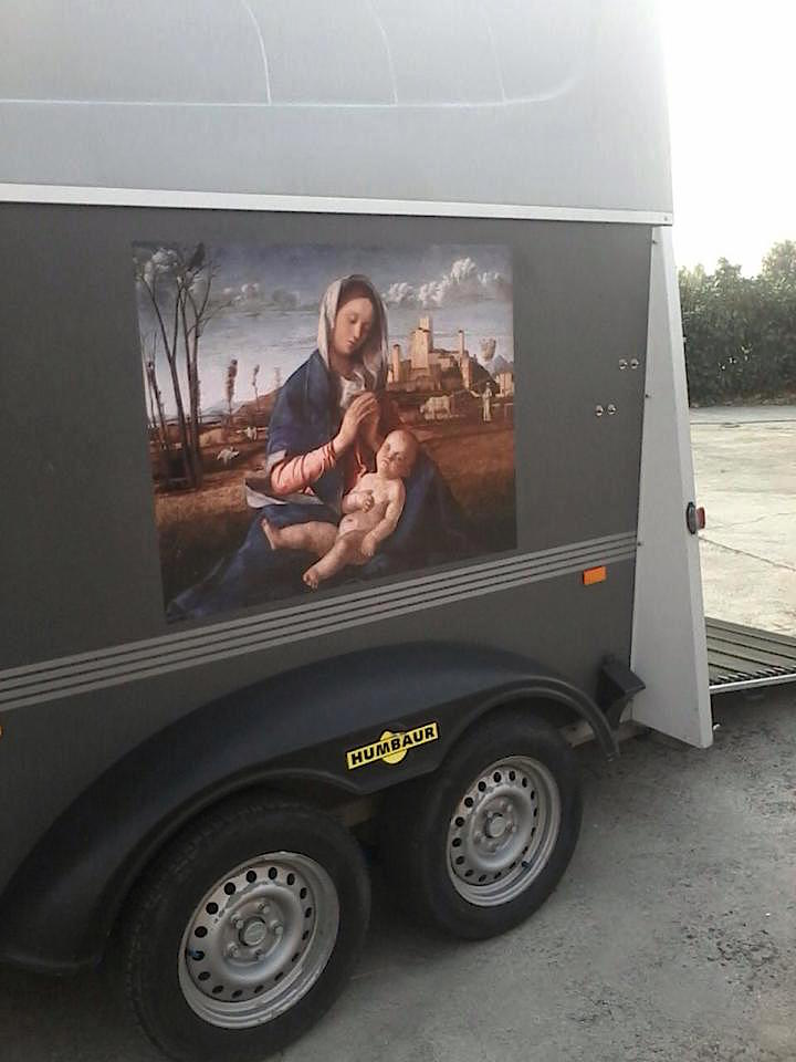 Il capolavoro rinascimentale che accompagnerà la moto nel suo tour d’oltralpe è attualmente conservato ed esposto alla National Gallery di Londra, ma continuerà a fare sfoggio della sua bellezza sulla moto del Team della Madonna!