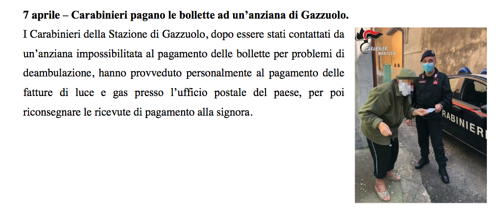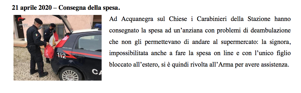 Ovviamente l’anno è stato segnato dalla pandemia del coronavirus e ciò ha determinato anche un adeguato orientamento delle varie attività dell’Arma dei Carabinieri, da un lato per contrastare quei reati che più emergono in situazioni di allarme e criticità come questi, quali per esempio le truffe ai danni di anziani, dall’altro, oltre che per contrastare la criminalità comune nelle diverse manifestazioni, proprio ad esaltare il ruolo di prossimità al cittadino, per supportare i cittadini e gli altri enti con la generosità e lo slancio che contraddistinguono ogni carabiniere.