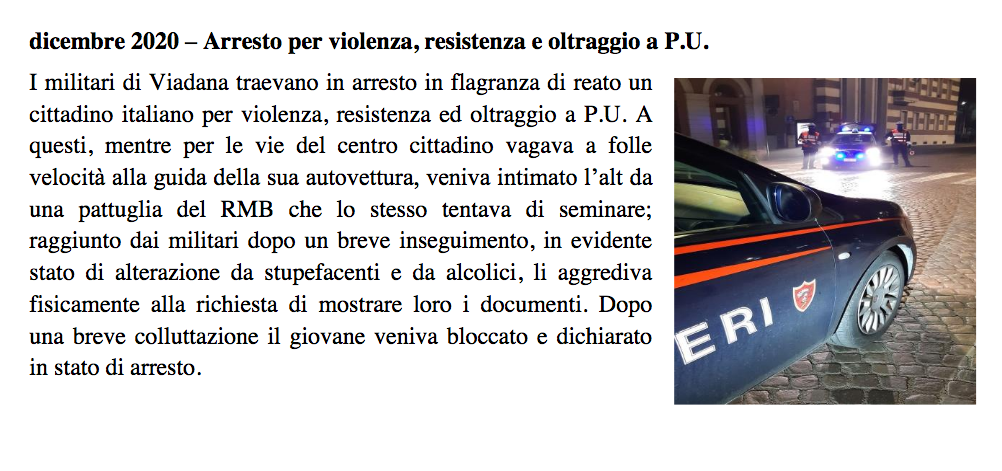 Il bilancio dell’anno 2020, condizionato dall’emergenza sanitaria del covid-19, ha evidenziato importanti risultati per l’Arma dei Carabinieri in Mantova e provincia: procedendo per 9.645 reati, ovverosia il 84,8% (79,2% nel 2019), di tutti quelli consumati nell’intera provincia, ha individuato i responsabili di 2.432 reati (2.671 nel 2019).