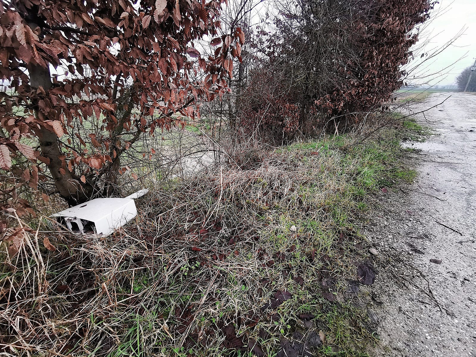 Un pezzo di poco conto e neppure il più grande o il più pericoloso tra i tanti abbandonati nelle terre di nessuno, tra gli altri che compaiono poco più avanti, nel boschetto in prossimità della diramazione. La golena – senza guardie ecologiche e con una polizia provinciale di cui, almeno nella bassa, non si nota neppure l’esistenza ed è già tanto se interviene a chiamata – è simile al Far West, l’ultima frontiera appunto e in questo caso, dell’imbecillità umana.