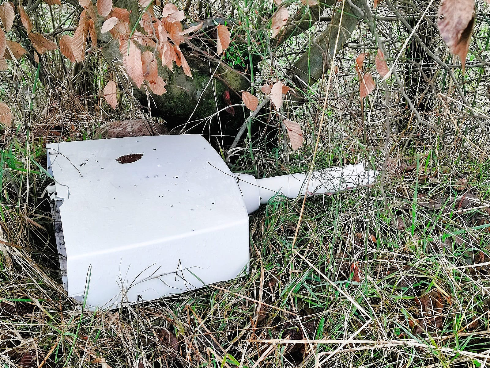 Martignana di Po, cassetta del water tra le sterpaglie (l'imbecillità umana)