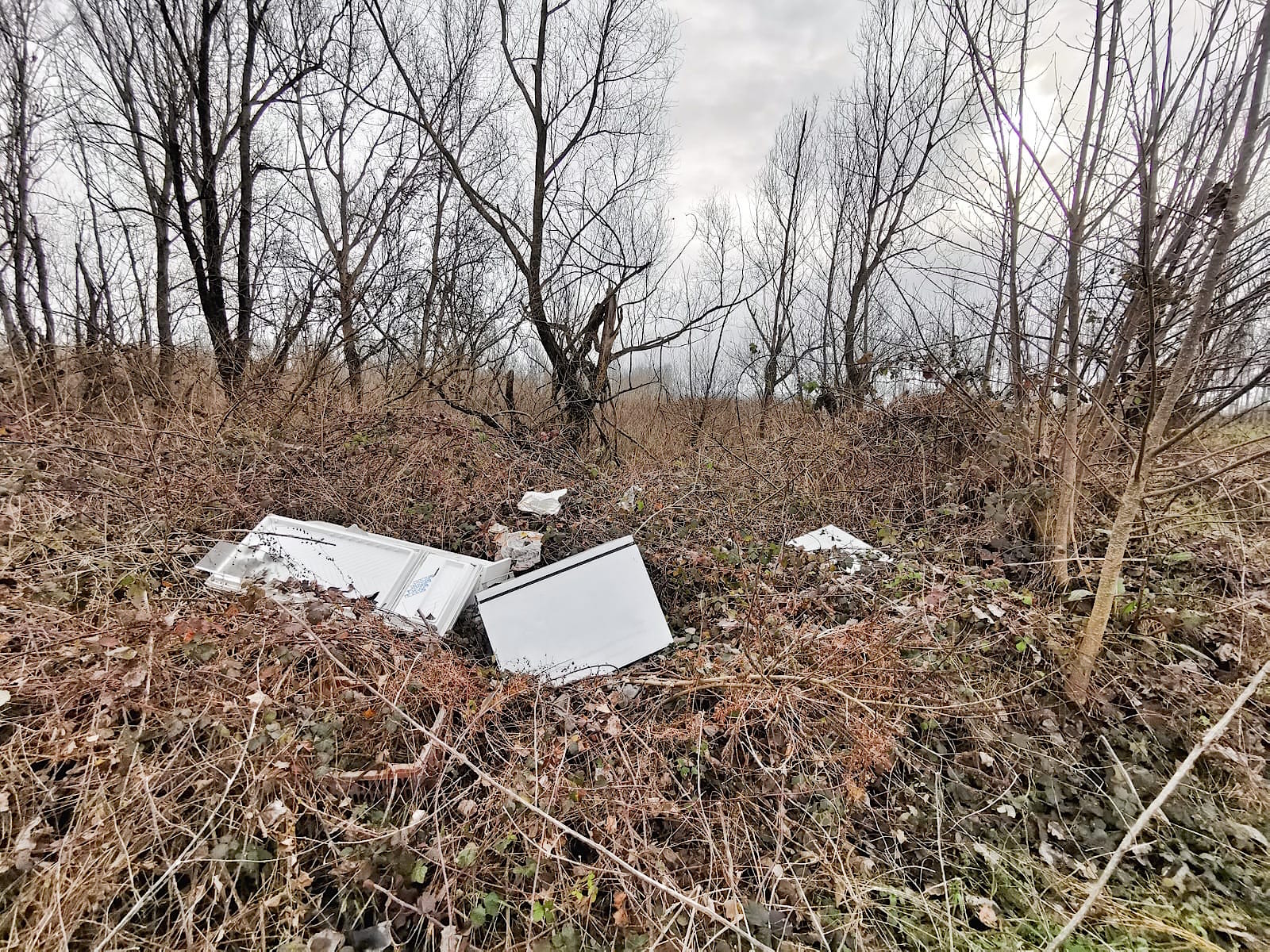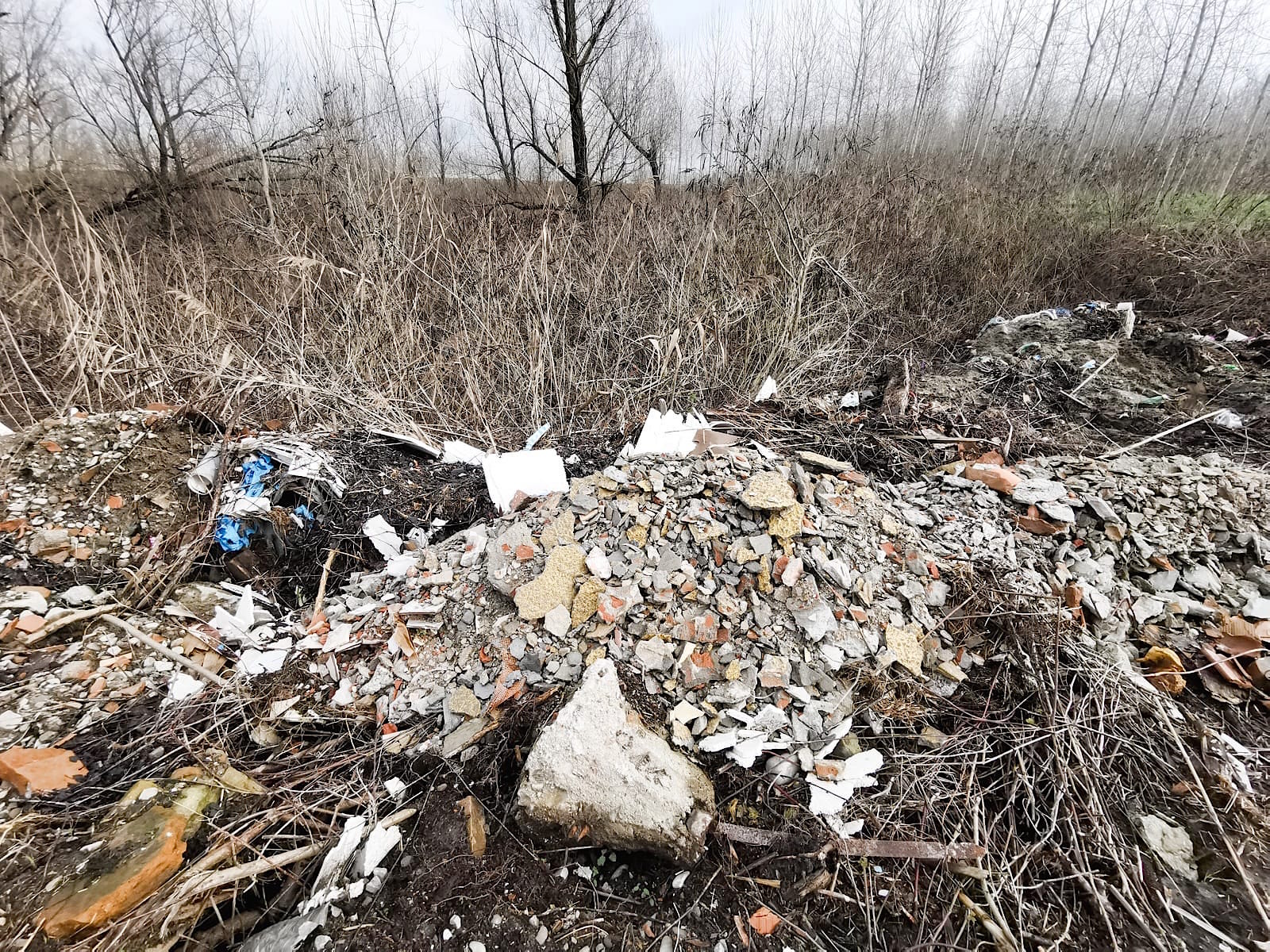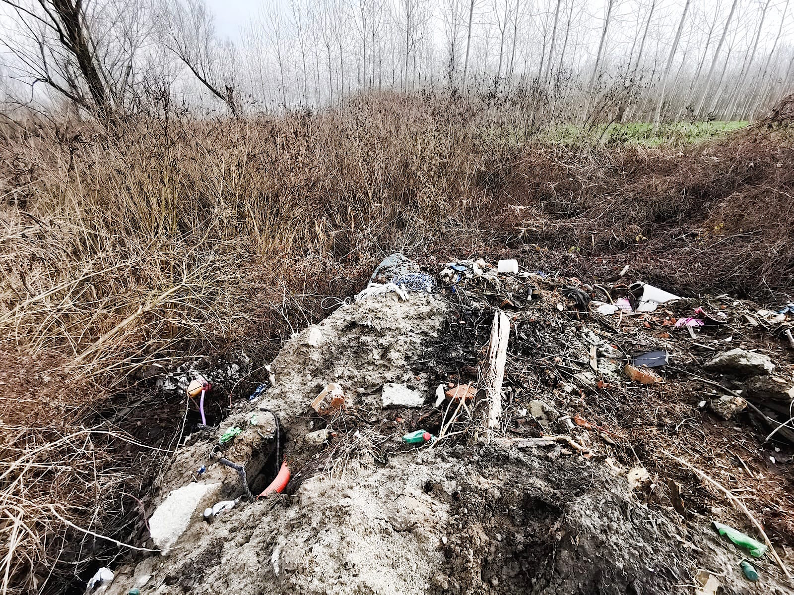 Scarti di lavorazioni edili soprattutto, cavi elettrici, pietre, plastiche, vecchi mobili, elettrodomestici (almeno un paio di frigoriferi e una lavastovigle visibili) e vetro. Cassette in plastica, buste con materiale ignoto. E poi chissà che altro sotto il primo strato compattatosi (forse grazie all’utilizzo di un escavatore). Difficile anche quantificarne l’entità, ma sicuramente un quantitativo ingente, e preoccupante. Quello che forse un tempo era un piccolo budrio oggi è una pozza d’acqua (la si intravvede ancora) stoppata per una parte, forse proprio dai rifiuti.