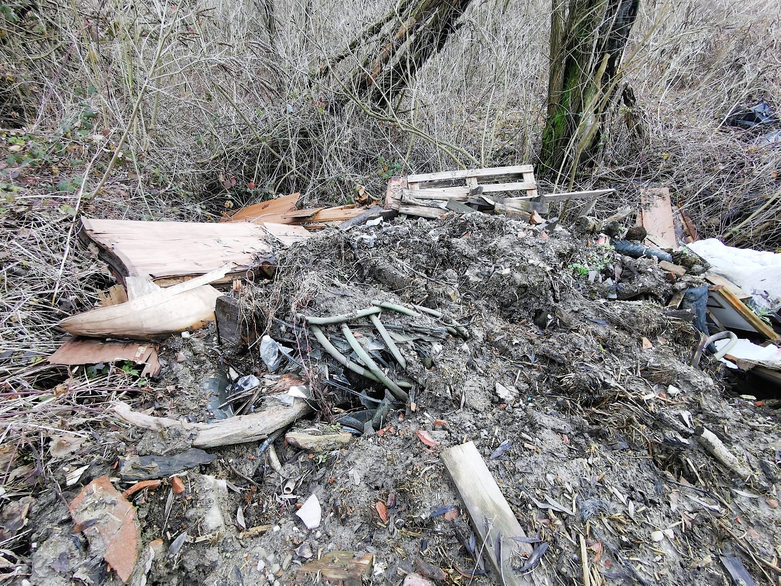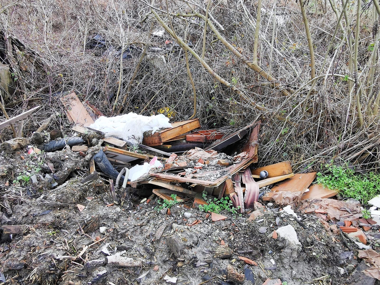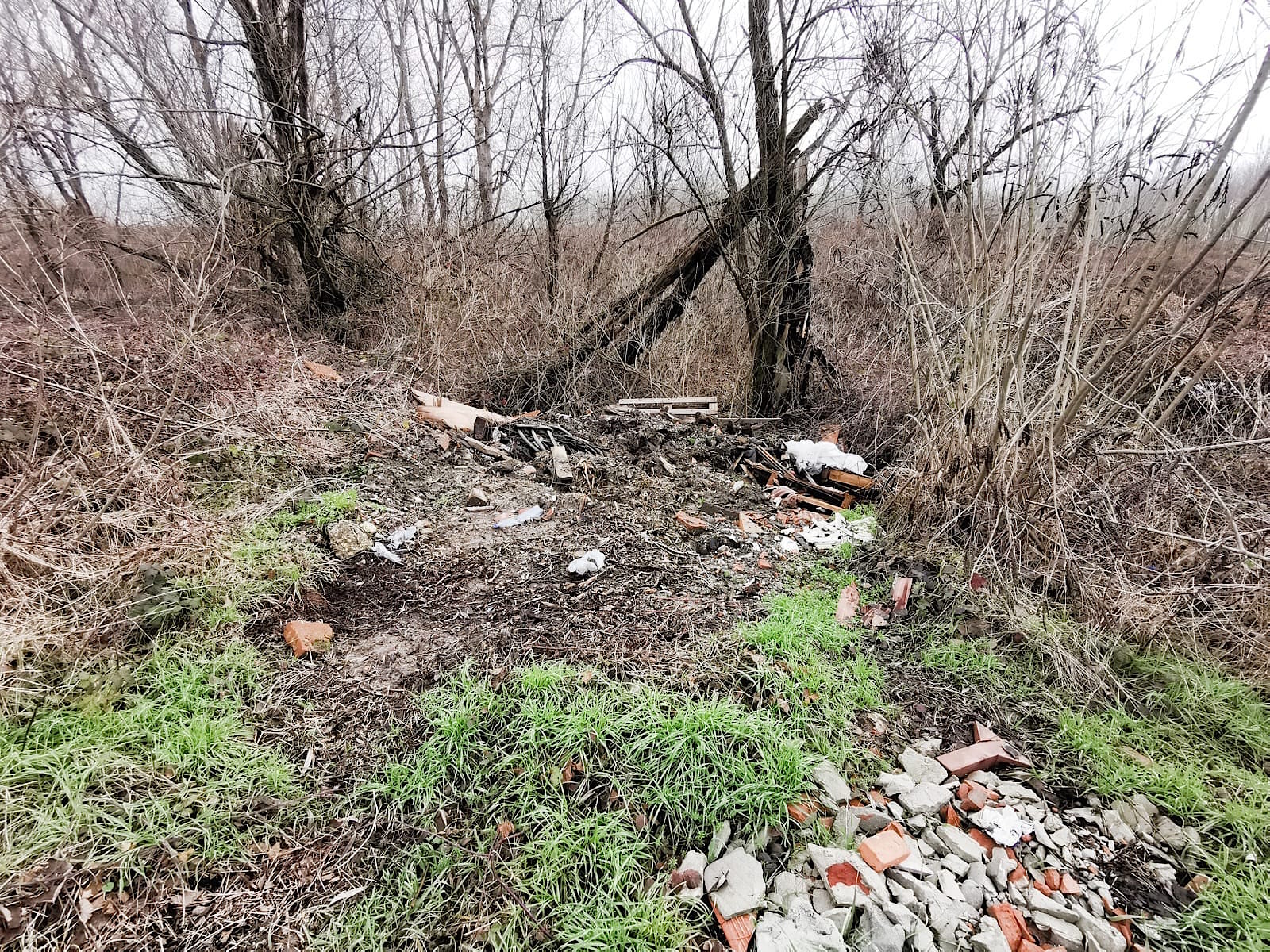 Scarti di lavorazioni edili soprattutto, cavi elettrici, pietre, plastiche, vecchi mobili, elettrodomestici (almeno un paio di frigoriferi e una lavastovigle visibili) e vetro. Cassette in plastica, buste con materiale ignoto. E poi chissà che altro sotto il primo strato compattatosi (forse grazie all’utilizzo di un escavatore). Difficile anche quantificarne l’entità, ma sicuramente un quantitativo ingente, e preoccupante. Quello che forse un tempo era un piccolo budrio oggi è una pozza d’acqua (la si intravvede ancora) stoppata per una parte, forse proprio dai rifiuti.