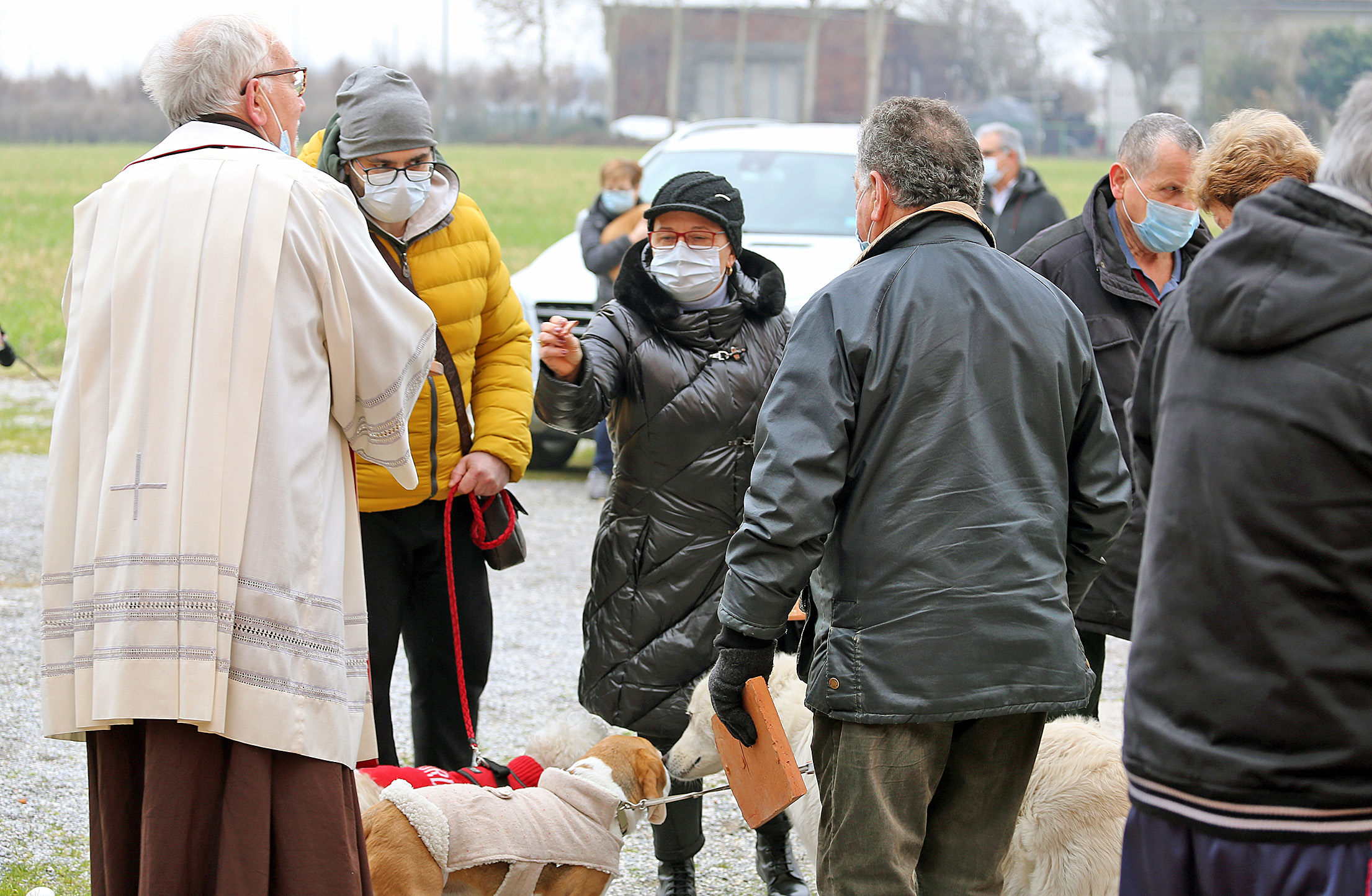 MOTTA SAN FERMO – “Io non sono credente, ma non so come la pensa lei”. Lei è una segugina adottata al canile di Calvatone ieri presente, insieme ad una trentina di altri animali (cani, gatti e conigli) alla benedizione riservata agli animali in occasione della festività di Sant’Antonio Abate.