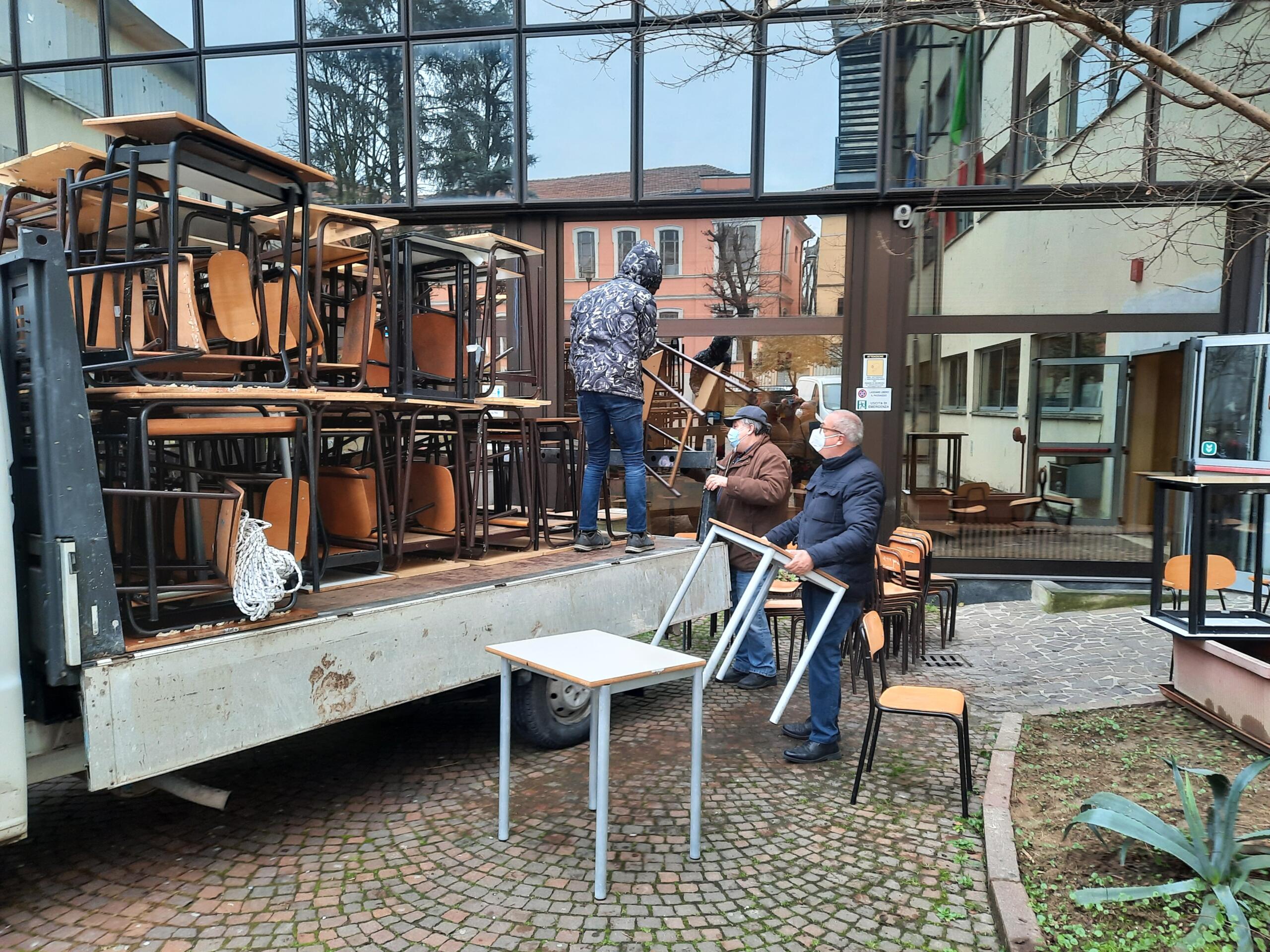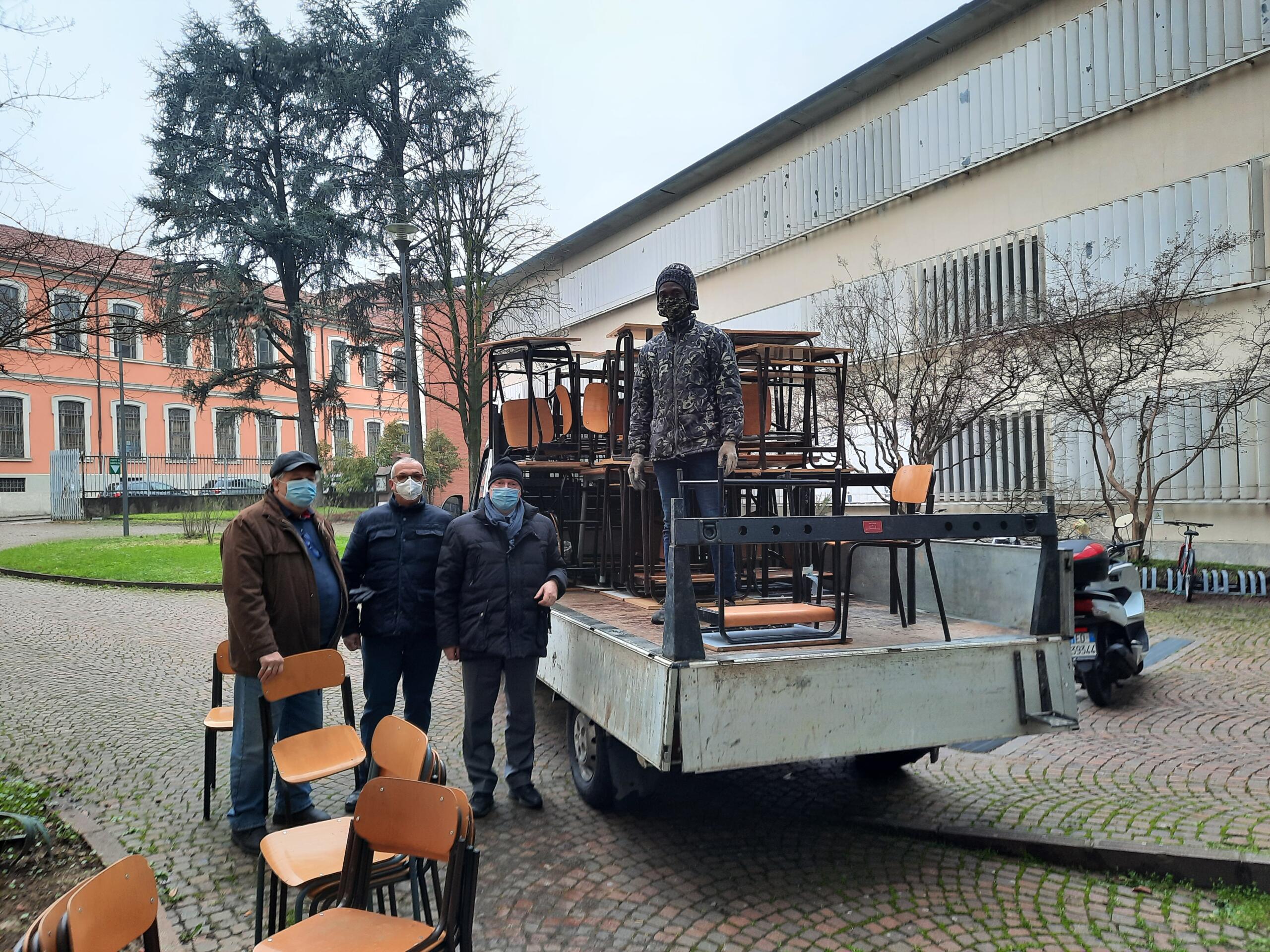BOZZOLO – 200 banchi e relative sedie, 8 cattedre e 8 lavagne. Questo parte del materiale che la Provincia di Cremona ha donato all’Associazione Pobic di Bozzolo per i propri progetti. “Quando a fine settembre dello scorso anno – spiegano i referenti dell’associazione – lanciammo l’appello finalizzato al recupero dei banchi dismessi dalle nostre scuole, il Presidente della Provincia di Cremona Mirko Signoroni rispose subito positivamente. Dopo aver emesso un Avviso Pubblico per l’assegnazione di tale materiale alle associazioni che ne avrebbero fatto richiesta per un progetto sociale, in data odierna l’Amministrazione Provinciale ci ha consegnato il primo lotto di arredi scolastici dismessi”.