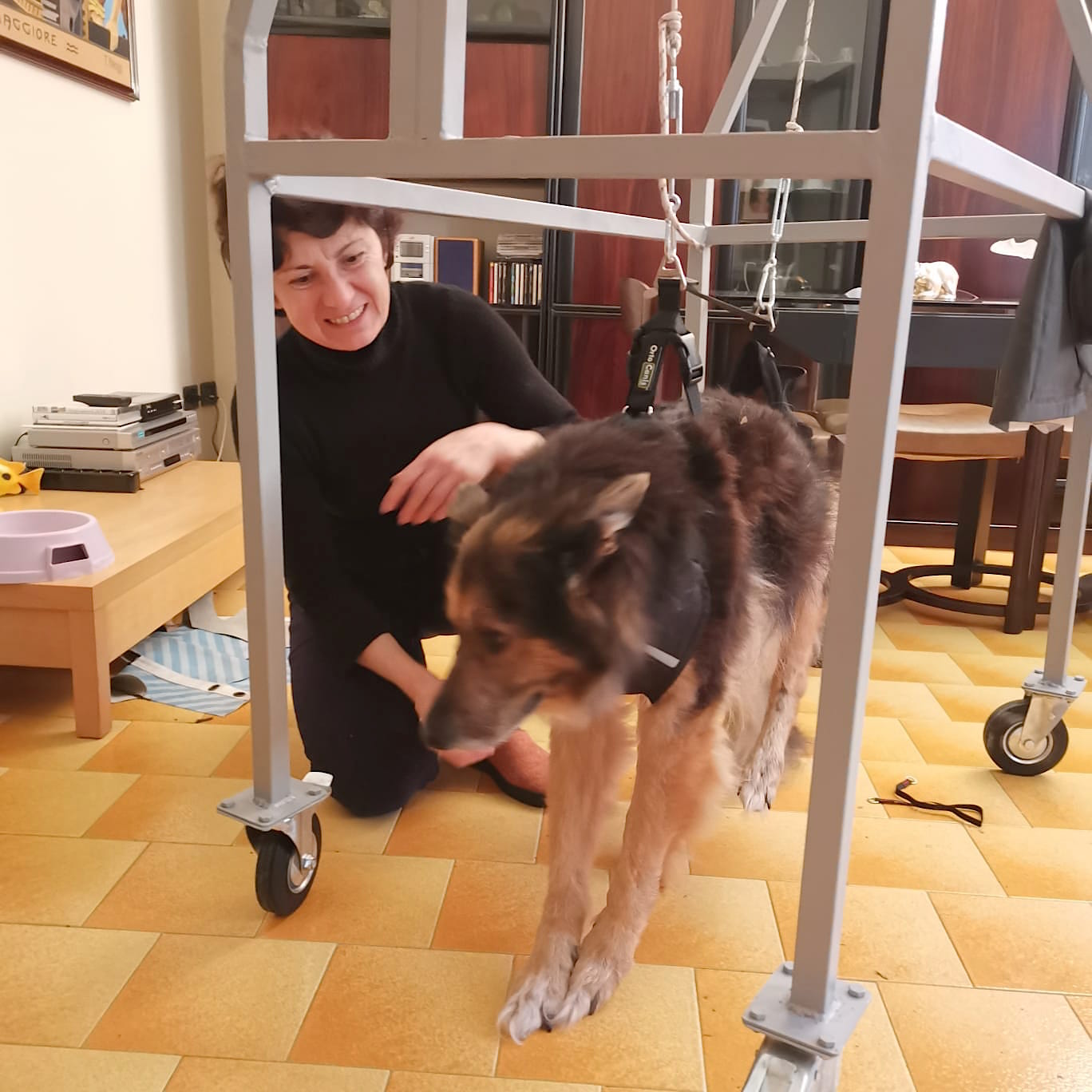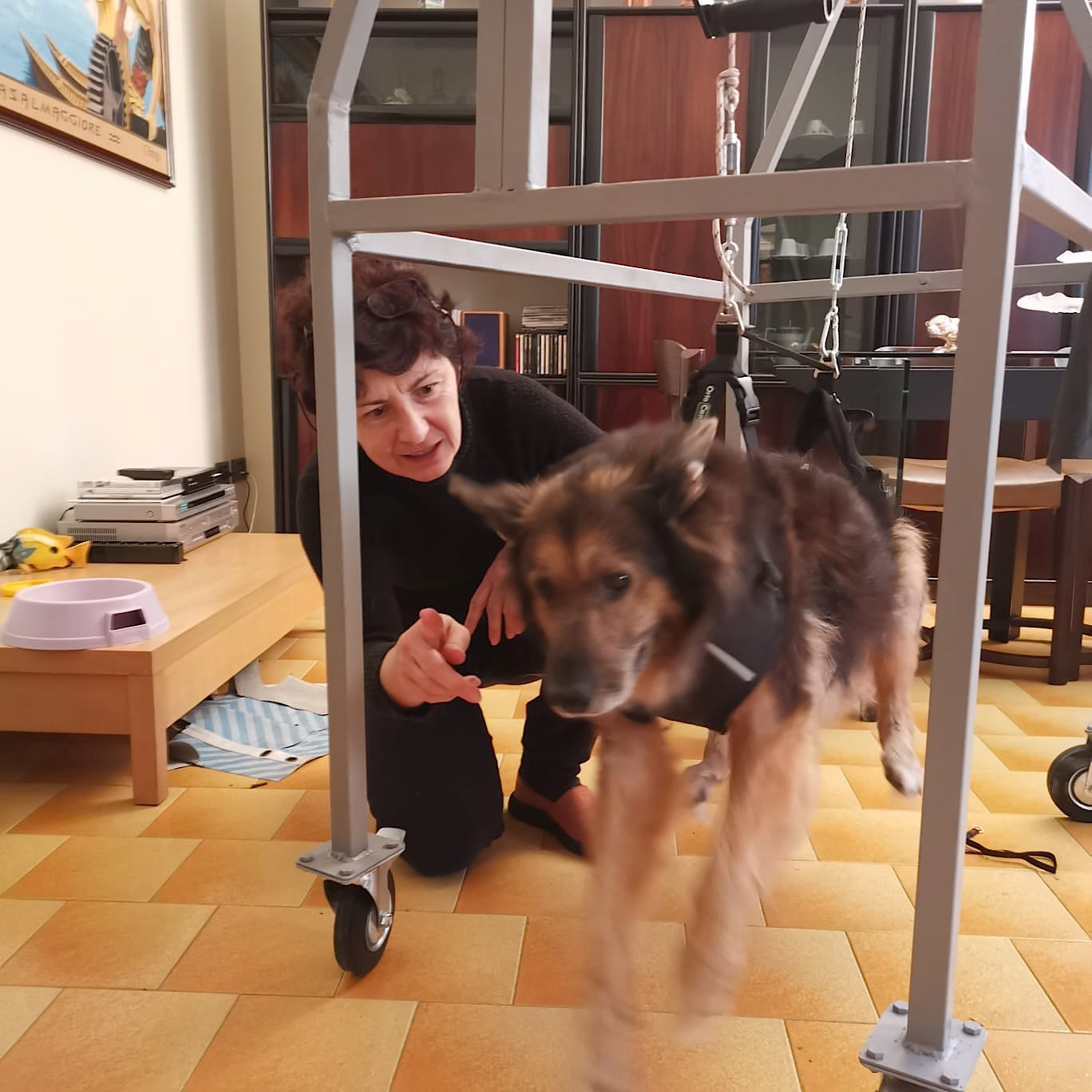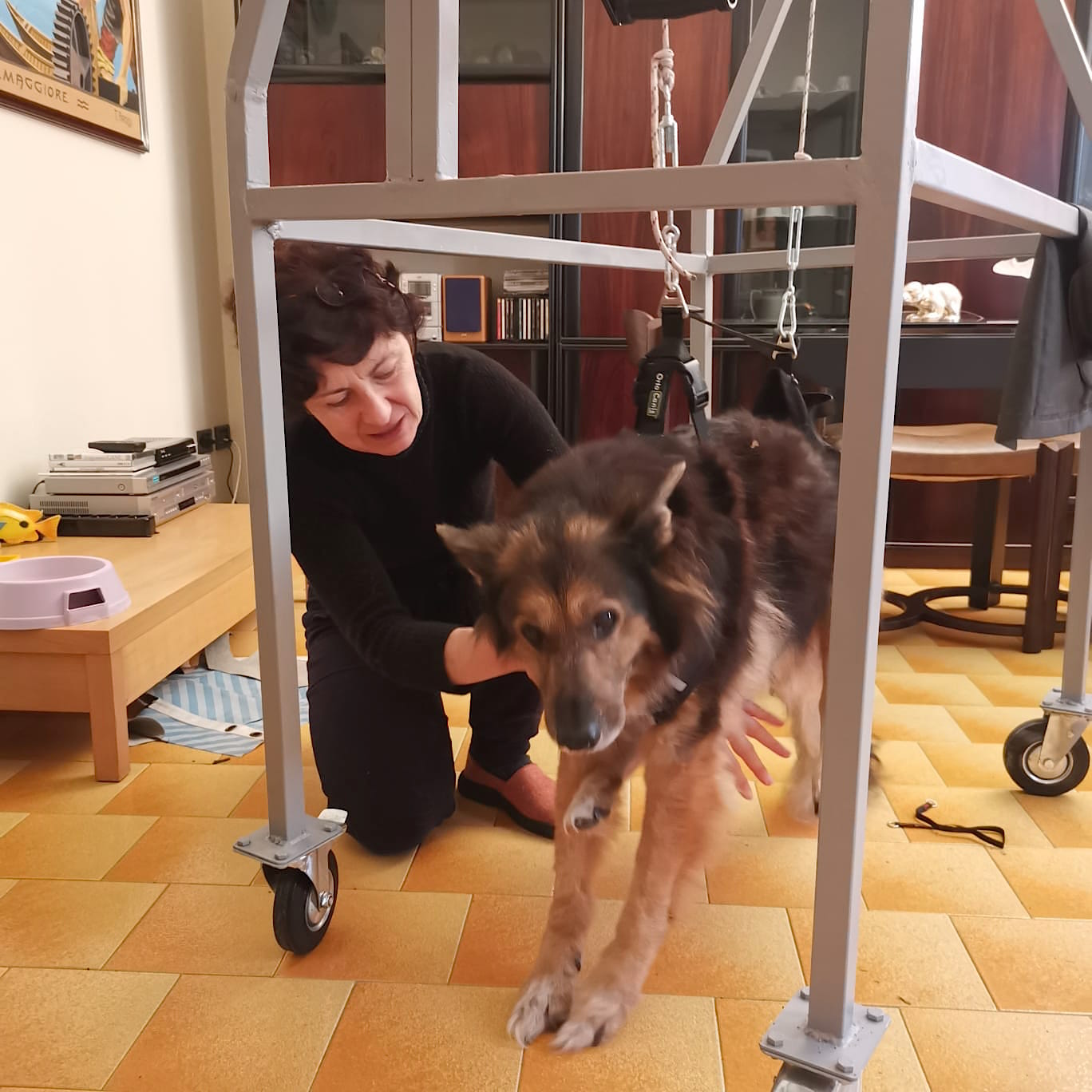 Il sollevatore – nemmeno a dirlo – lo hanno realizzato per Claudia a loro spese. Il lupone può essere tirato su con facilità. L’attrezzo è stato studiato affinché passi dalle porte e possa anche fungere da carrello all’esterno. “Ma a differenza di un carrellino – aggiunge Morgan – non ha tutto il peso poggiato. Per lui ci voleva una soluzione adeguata ai problemi che ha alla colonna vertebrale. E’ un cane anziano e già i pastori a quella età spesso soffrono di patologie. Volevo trovare un sistema per rendergli la vita più semplice. L’ho fatto perché mi sentivo di farlo, non per soldi. Mi fa piacere fre qualcosa per aiutare quando posso. L’ho fatto – ed ho fatto tante scelte di questo tipo, anche quando toelettavamo i cani – perché nella mia famiglia si ragiona così. Abbiamo cinque cani anche noi, vogliamo loro un gran bene, ed in famiglia sono stati tutti contenti della scelta”.