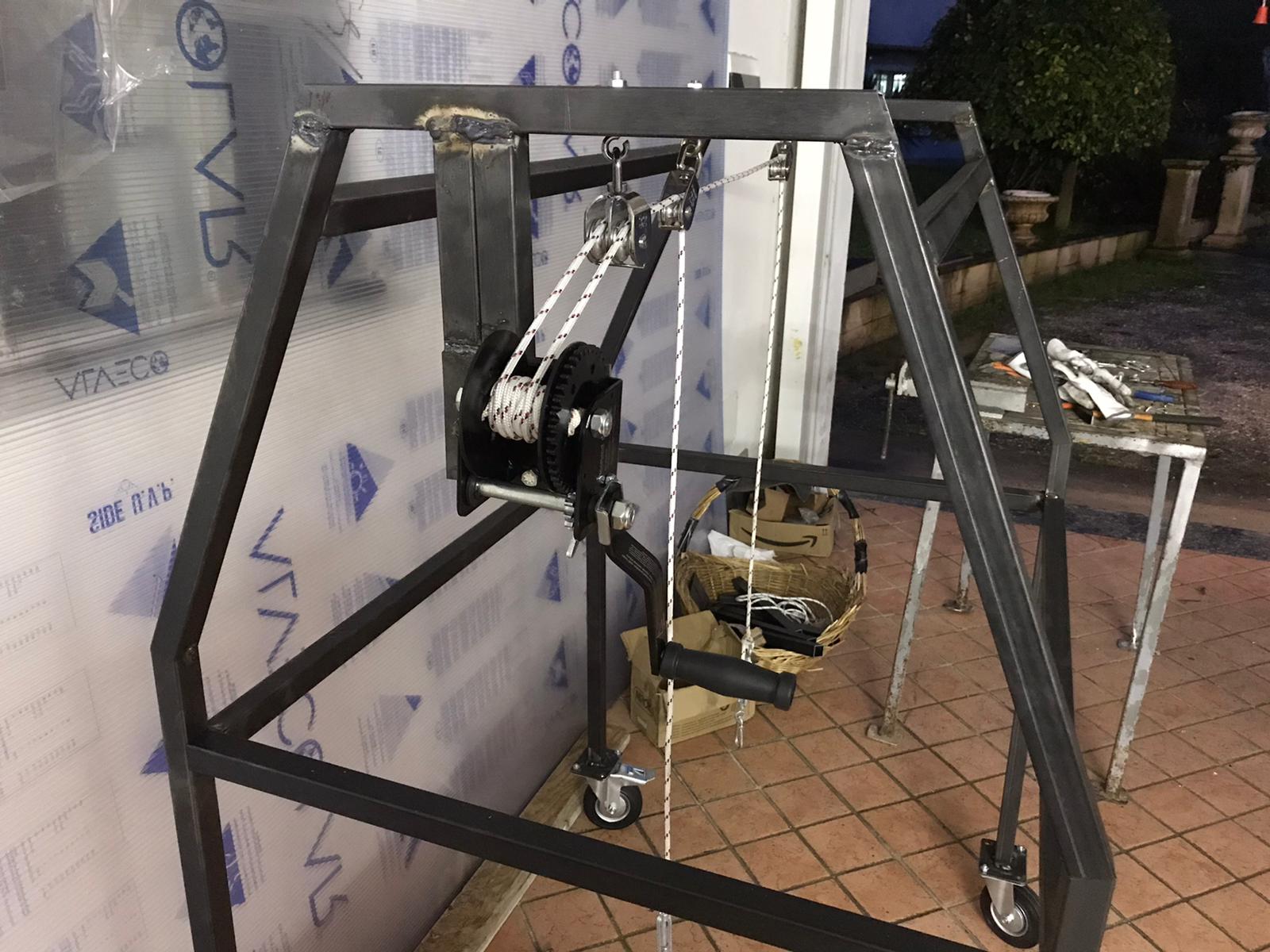 L’idea non è nata dal nulla. Morgan ha voluto dapprima studiare quel cane e le sue condizioni fisiche per valutarne le reali necessità. Lo ha accompagnato insieme a Claudia a Romanengo per la risonanza magnetica che ha dato un quadro chiaro delle condizioni. Non sono state purtroppo risposte di tanta speranza, ma Claudia e Morgan non si sono arresi. L’elevatore non è nato a caso, ma è stato frutto di uno studio complesso partito dalle analisi e dalle osservazioni del cane. “Per le condizioni della colonna vertebrale è stato studiato un sistema di sollevamento che non gli provocasse dolore o traumi. Un verricello e due carrucole lo tirano su. Il sollevatore è dotato anche di ruote perché magari, stare in piedi può essere uno stimolo a livello cerebrale a fare movimenti. E sollevarlo da terra era fondamentale. I cani nelle sue condizioni, sempre sdraiati e soprattutto d’estate possono sviluppare piaghe. Era importante poi che Claudia non facesse fatica a tirarlo su”.