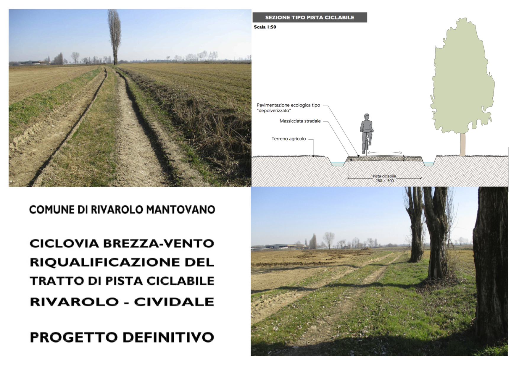 La ristrutturazione della strada vicinale comporterà, infatti, il consolidamento del fondo stradale con materiali sufficientemente permeabili, ma soprattutto la corretta ricezione e il necessario convogliamento delle acque meteoriche e di quelle derivanti dall’irrigazione dei terreni agricoli prospicienti per tutta la lunghezza del percorso. Le acque reflue saranno infatti intercettate dai fossi di scolo previsti, oggi inesistenti, e convogliate nel sistema generale del Reticolo Idrico Minore (RIM), attribuito ai Comuni da Regione Lombardia; disposizioni recepite dal Comune di Rivarolo Mantovano negli elaborati grafici e nel Regolamento di Polizia idraulica che integrano il Piano di Governo del Territorio (PGT).