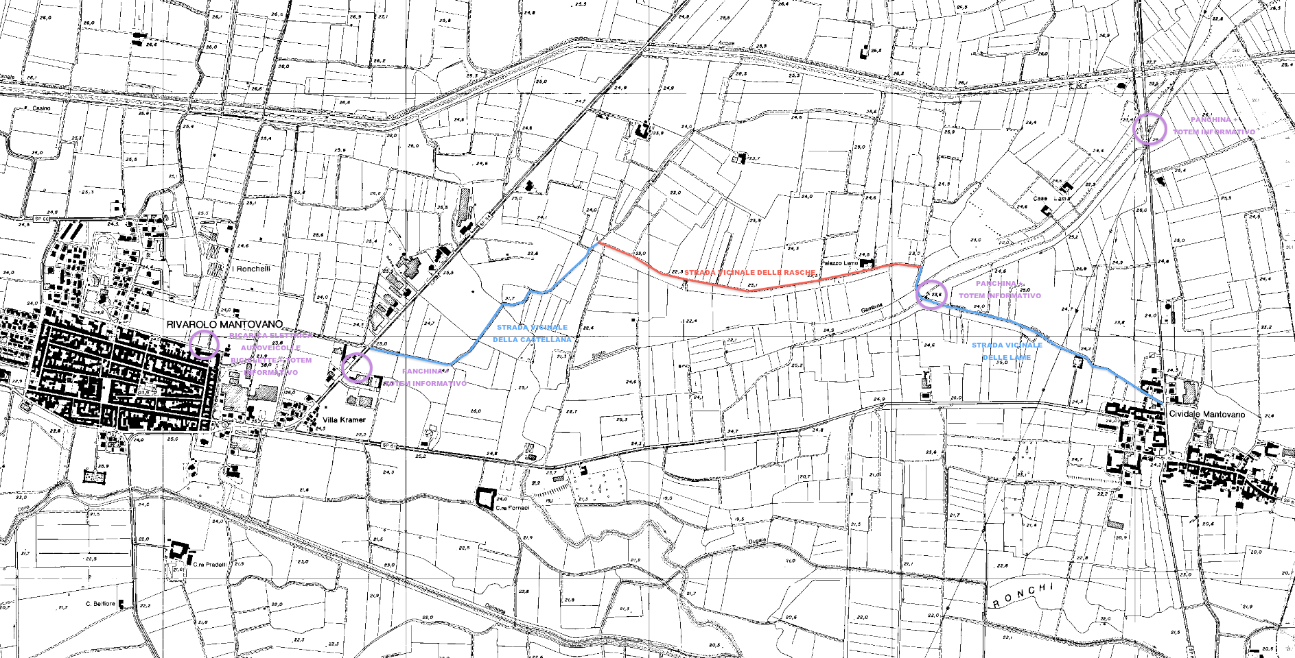 L’interconnessione con quest’ultimo centro abitato costituisce l’obiettivo specifico del progetto; tuttavia nella sua essenza, la riqualificazione della Strada delle Rasche, si configura come ristrutturazione di un tratto della percorrenza ciclabile di interesse sovracomunale, ed anzi interprovinciale, denominata “da Brezza a Vento”.