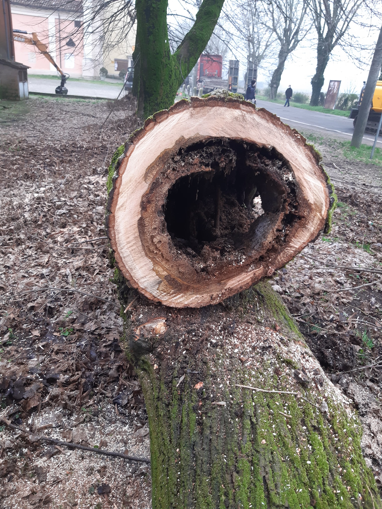 Gli alberi in questione sono monitorati ormai da 2/3 anni ed ora avevano raggiunto un grado di pericolosità non più accettabile, a testimonianza di questo vi allego le foto dei “buchi” interni per cui si è deciso di toglierli nell’assoluta direzione della pubblica sicurezza.