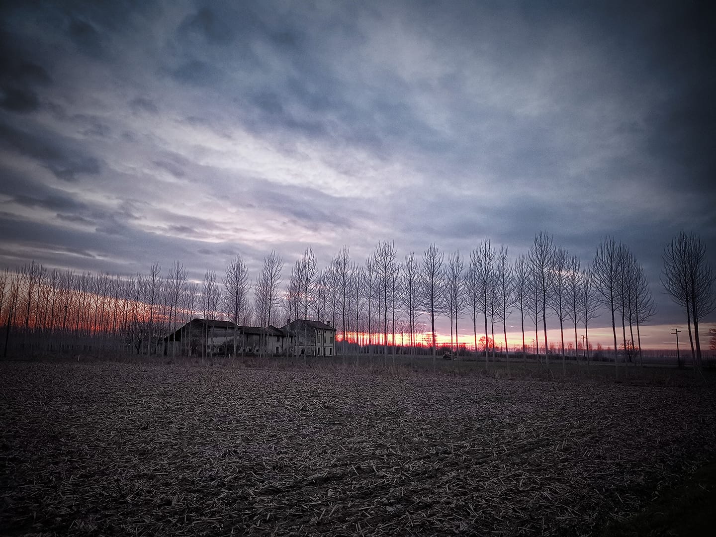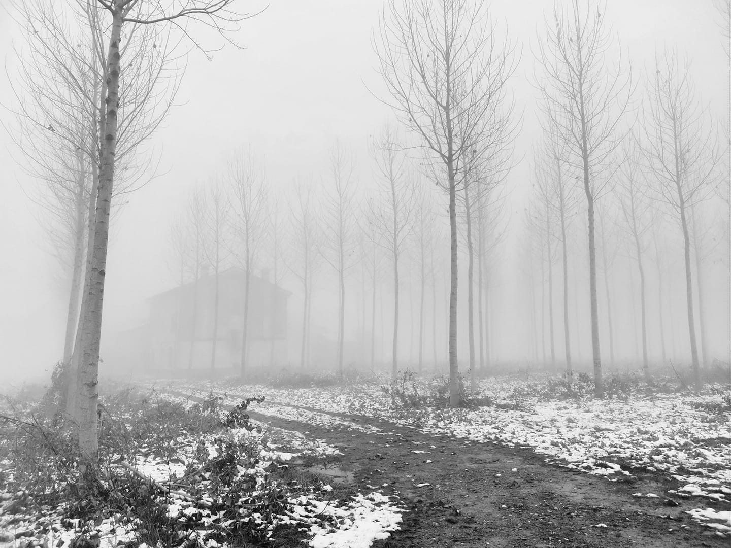 Martignana di Po, i filari di piante e le cascine perse tra le nebbie. Il mondo che si spegne