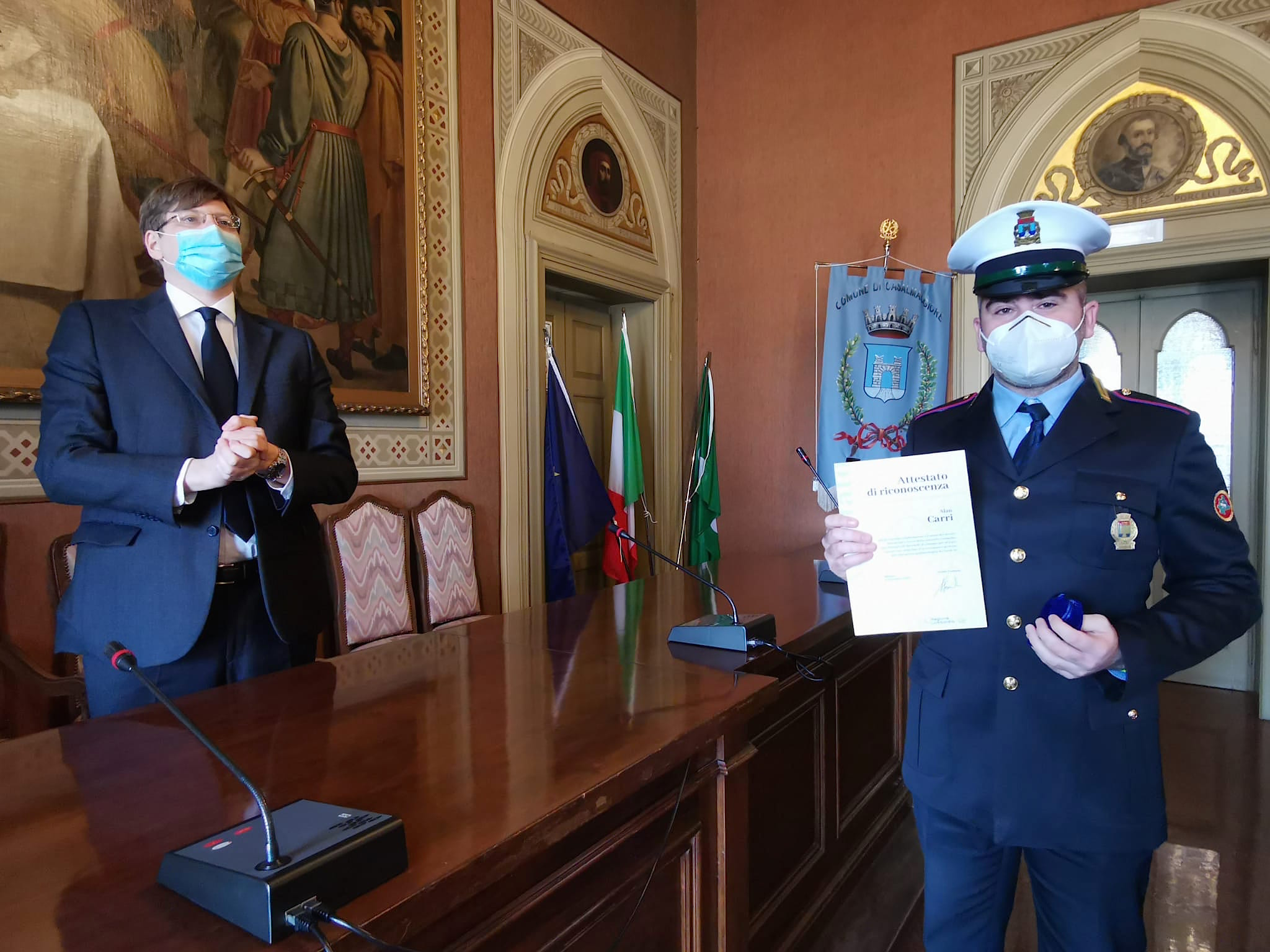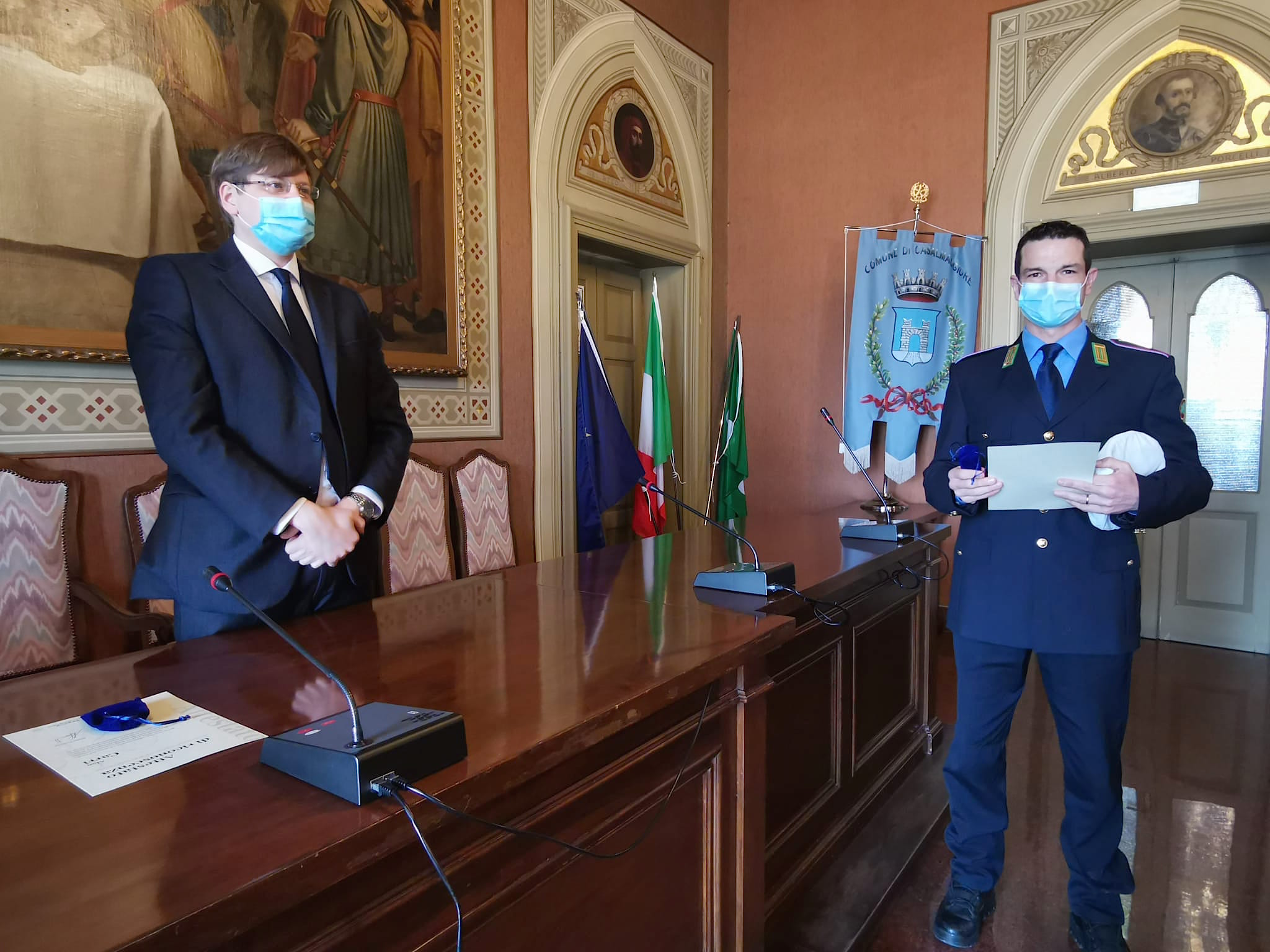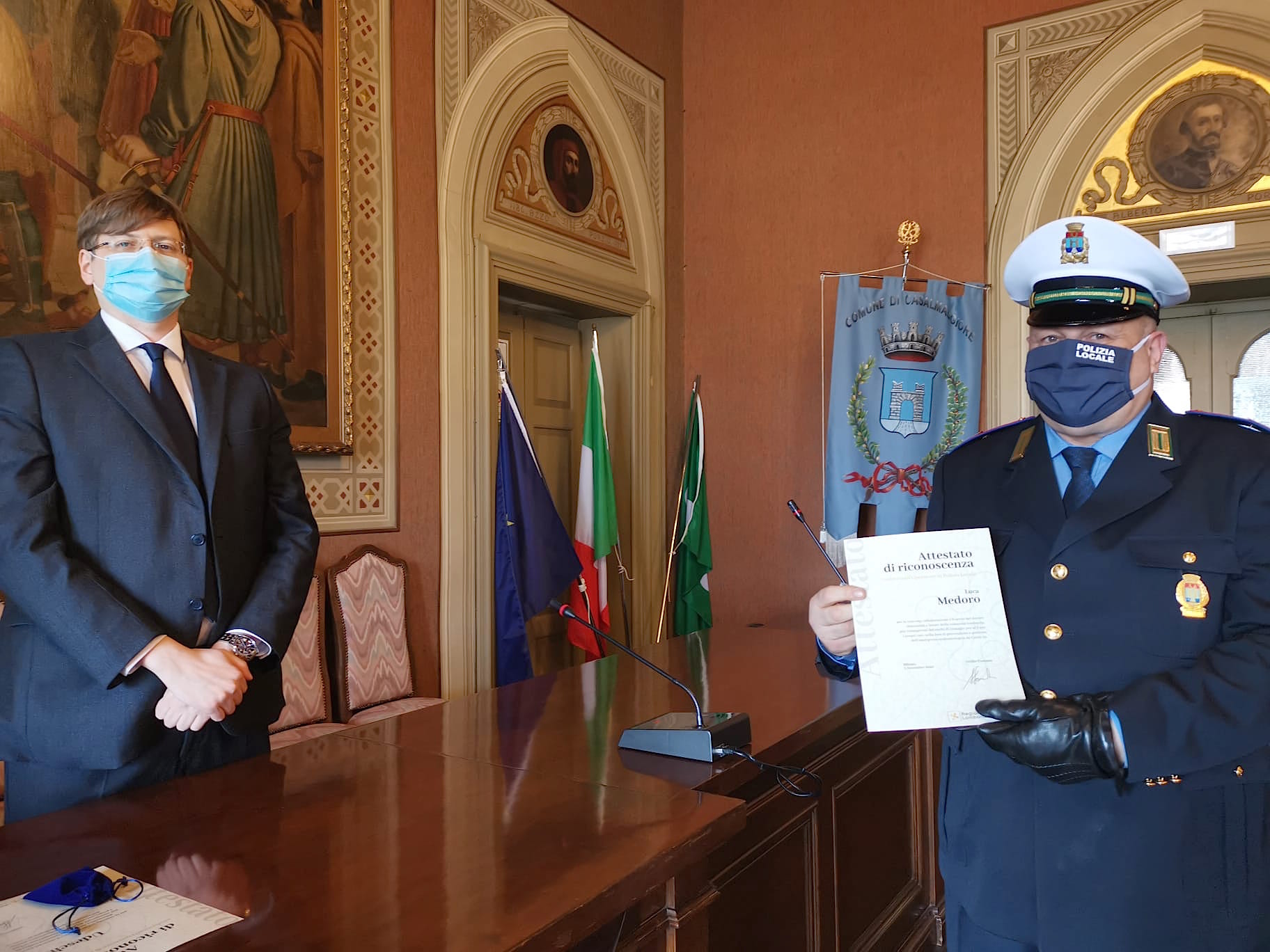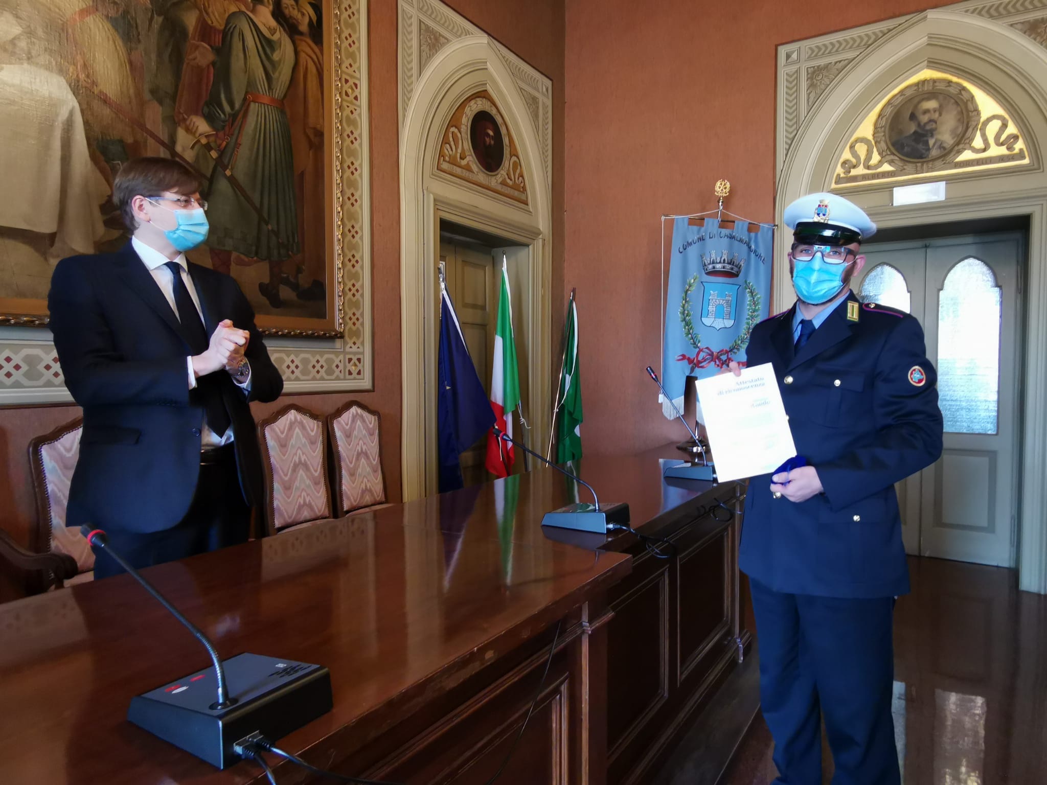 “E’ un riconoscimento – ha spiegato il Comandante Silvio Biffi – di Regione Lombardia più che meritato per i nostri agenti, per i miei agenti che sono stati in un periodo molto critico in prima linea. Chiaramente il nostro lavoro non è possibile svolgerlo in smart working ma deve essere svolto a stretto contatto con l’utenza e quindi il Comando, i cui uffici sono sempre rimasti aperti al pubblico anche nel periodo più critico, è stato un punto di riferimento per tutta quanta la cittadinanza anche da un punto di vista di informazione e di interpretazione delle norme che in certi casi erano anche difficili da interpretare. Abbiamo sempre cercato di venire incontro alle esigenze e alle richieste di delucidazioni da parte dei cittadini. Oltre a questo lavoro, oltre al lavoro ordinario, in un periodo molto critico in cui neppure noi sapevamo bene a cosa andavamo incontro, i miei agenti, gli agenti della Polizia Locale del comune di Casalmaggiore hanno agito sempre con il più ampio senso del dovere, con tanta professionalità e anche coraggio perché hanno messo a rischio lavorando su strada, controllando le persone in quarantena, la loro incolumità fisica e quella delle loro famiglie e dei loro parenti più stretti”.