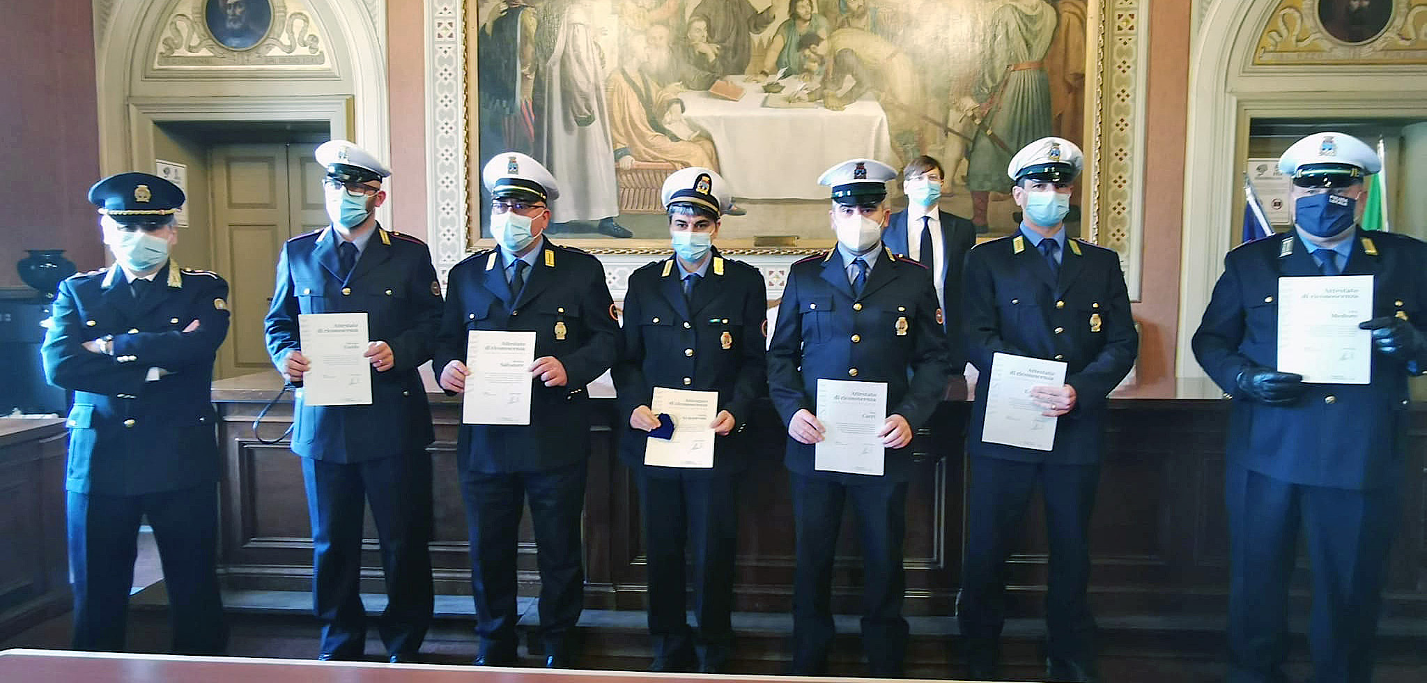 Le benemerenze sono meritatamente andate alla vice Comandante Angela Acquaroni e agli agenti Salvatore Guido, Alan Carri, Ilario Udeschini, Luca Medoro e Roberto Salvatore.