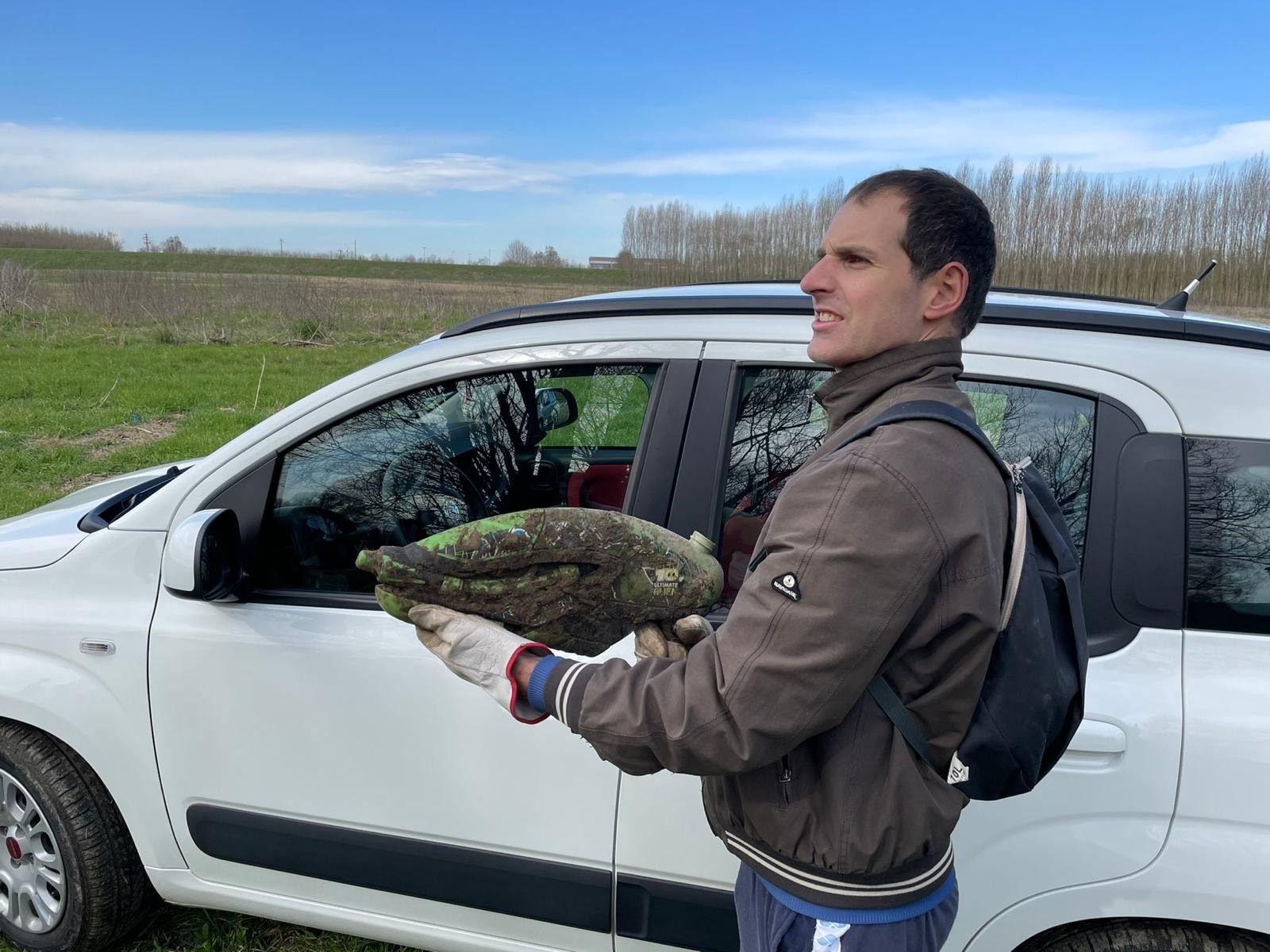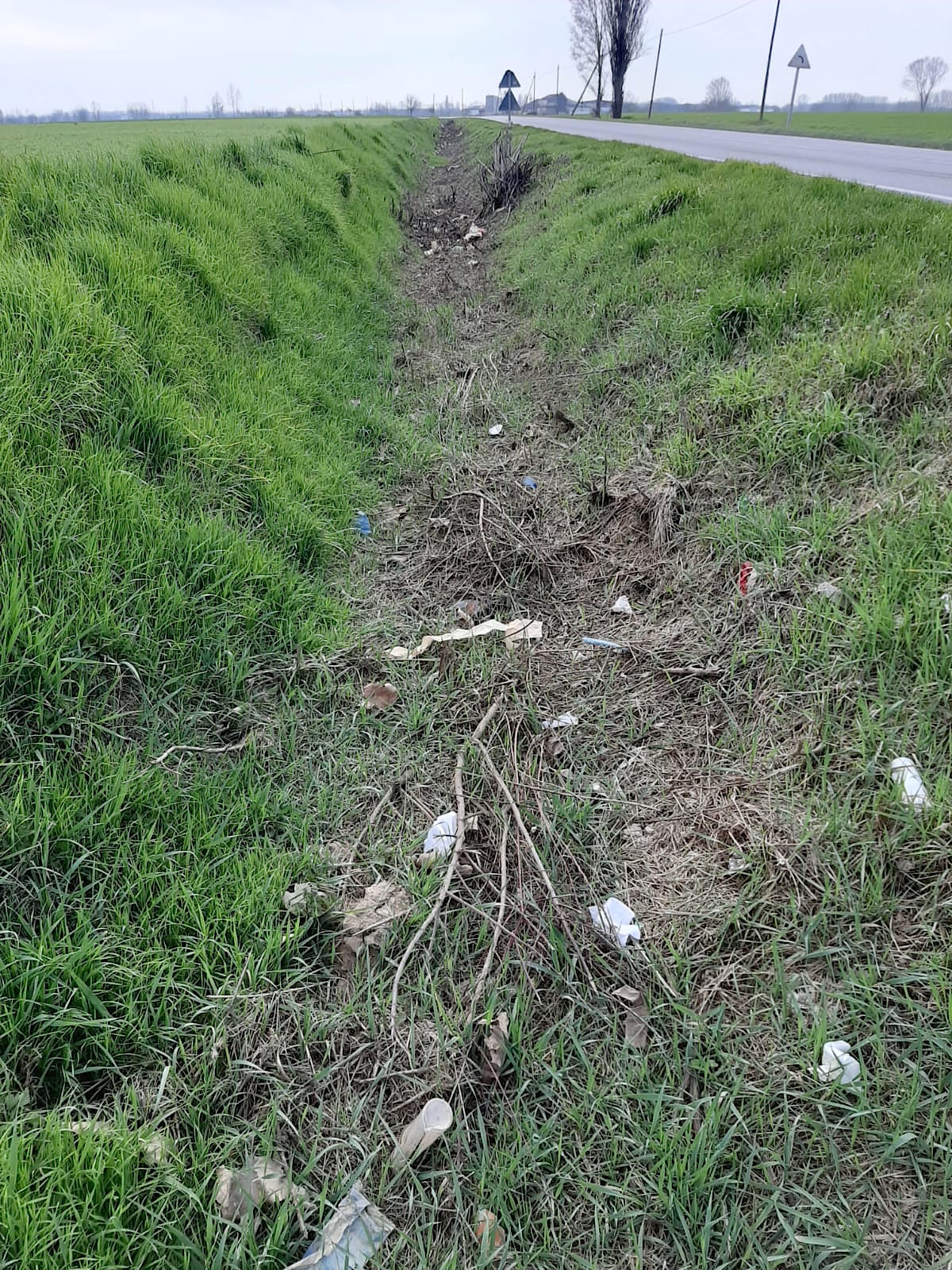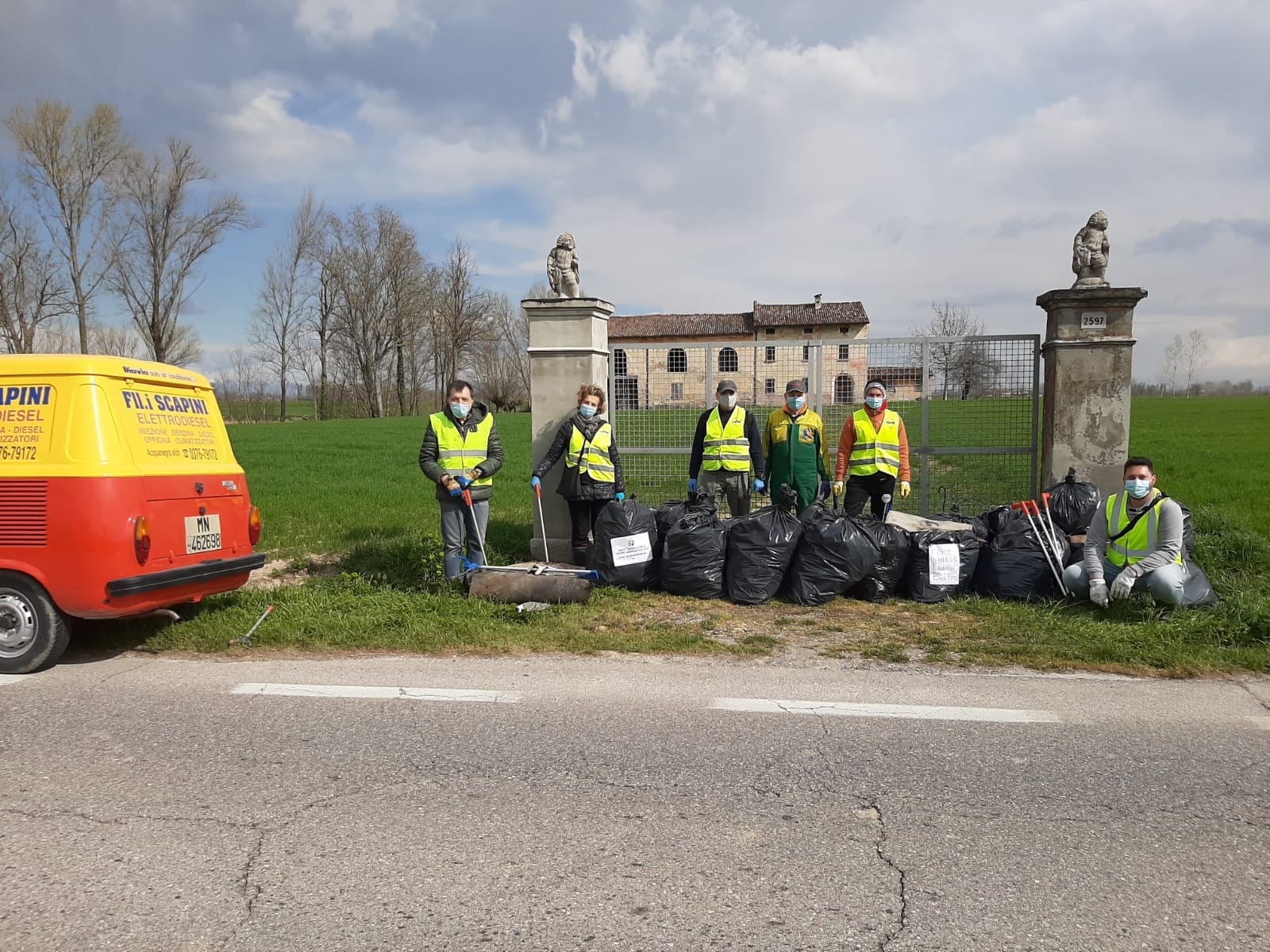 ACQUANEGRA SUL CHIESE – (Gruppo Foce Chiese Trashbusters) – Il gruppo ha agito dalla rotonda di Mosio lungo la SP verso Marcaria. “Avevamo in programma – ci racconta Fabrizio Rossi – due chilometri, ne abbiamo fatto appena uno! Eravamo in 7 e raccolto 20 sacchi grandi. Il fossatello irriguo, ora asciutto, è colmo di plastica depositata nei periodi estivi irrigui. Nel rimanente chilometro ci saranno almeno altri 40 sacchi”. Valore aggiunto del gruppo il furgoncino-scopa di Franco Scapini e il drone di Jack.