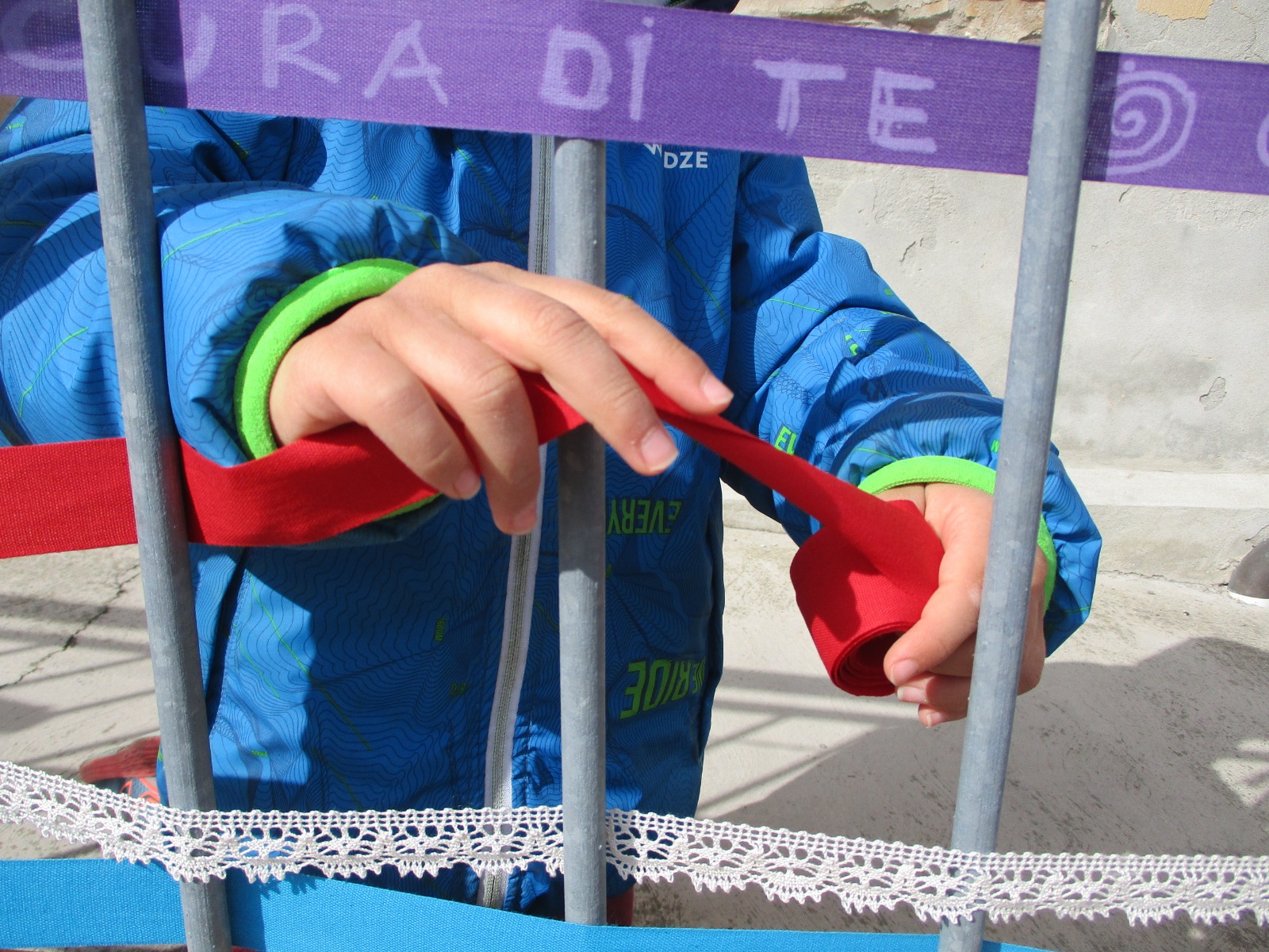 Prendersi cura, pensare al futuro, ad un futuro colorato e di bellezza. “I bambini sono parte della comunità – proseguono Cristina Bassi e Sara Bernazzali – ed è bello immaginare un noi che li comprenda, che li faccia sentire parte della comunità. Volevamo ci fosse un segno di questa loro presenza, e che questo segno si intrecciasse con le vite di tutti. I bambini sono una promessa di futuro”.