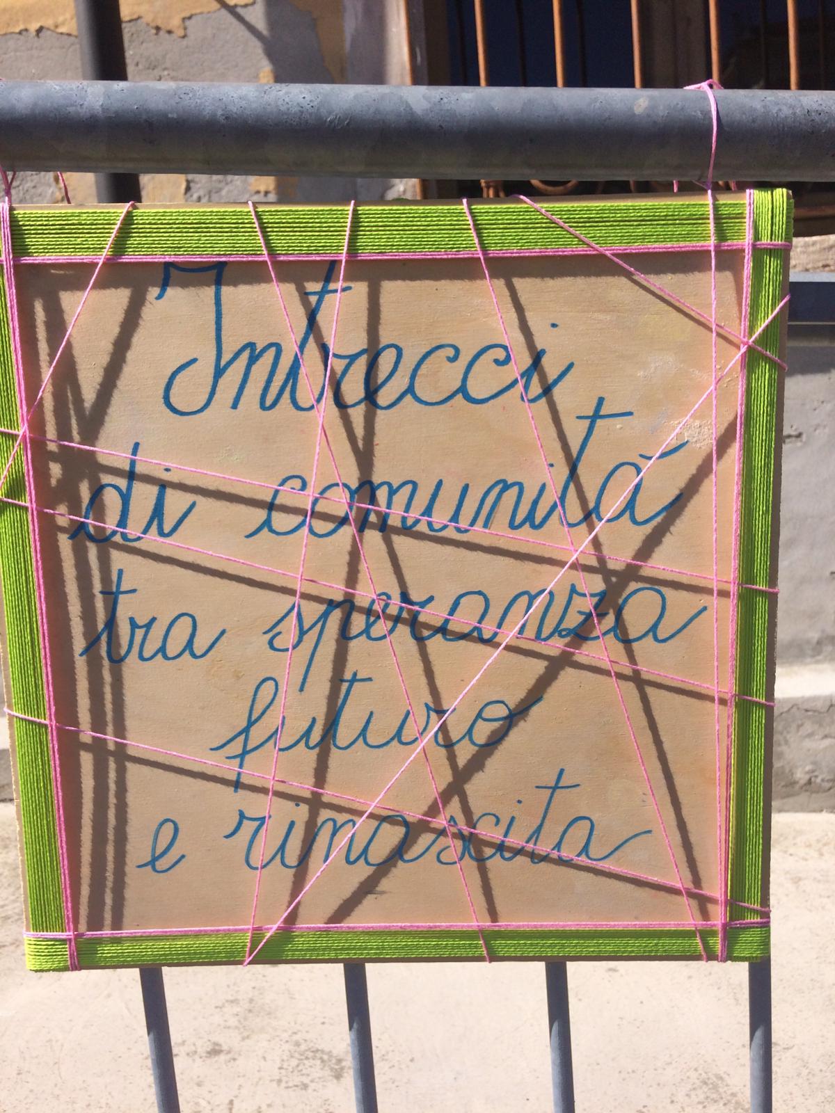 “La ringhiera della scuola ci sembrava un telaio naturale – raccontano Sara Bernazzali e Cristina Bassi – e volevamo ci fosse uno spazio in cui i bambini con l’aiuto delle loro famiglie potessero tenersi in contatto”. Intrecci (così hanno chiamato l’iniziativa) serve a mantenere e rendere visibili le relazioni. Lo hanno fatto per la scuola e per il paese. Non serve avere un bambino nella struttura per farsi parte dell’intreccio.