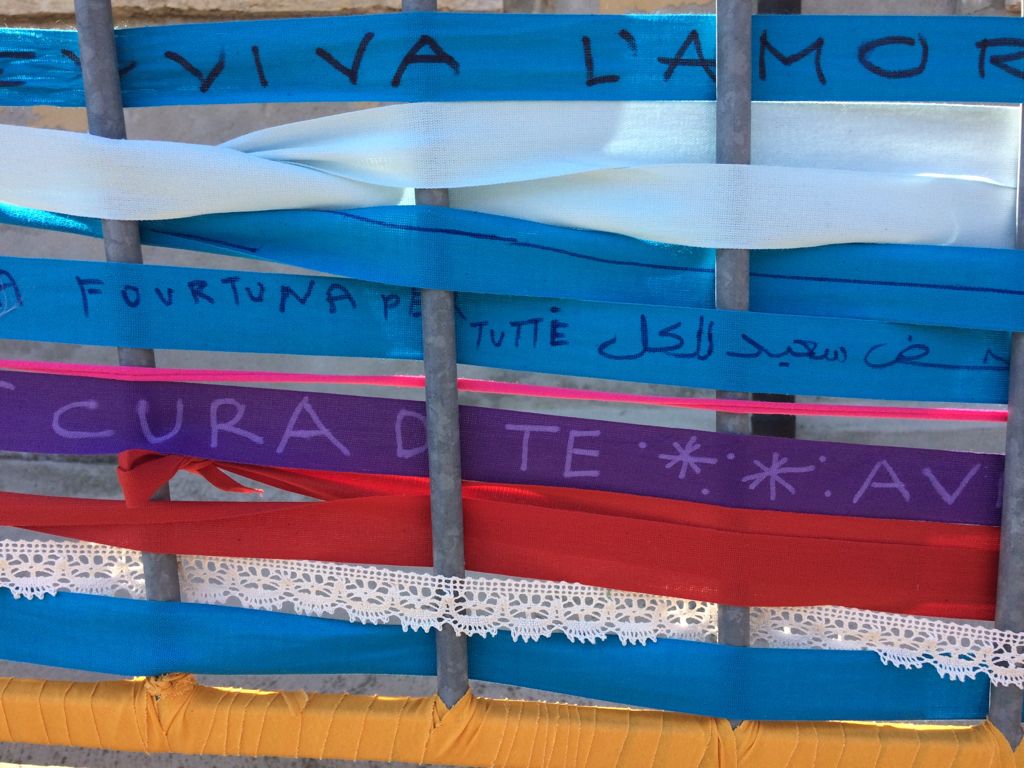 VILLASTRADA – La ringhiera è un telaio dove possono starci tante strisce colorate, intrecciarsi tra loro. Perché in fondo la vita è proprio questa, l’intreccio di vite ed esperienze diverse. L’intreccio di anime erranti e di pensieri. La prima delle strisce comparse è stata scritta in arabo. Augura buona fortuna a tutti. Un altro parla di cura e quell messaggio – Avrò cura di te – ti abbraccia e ti scalda più di ogni altra parola possibile.