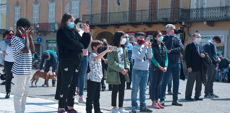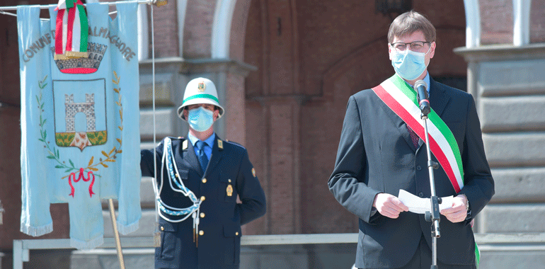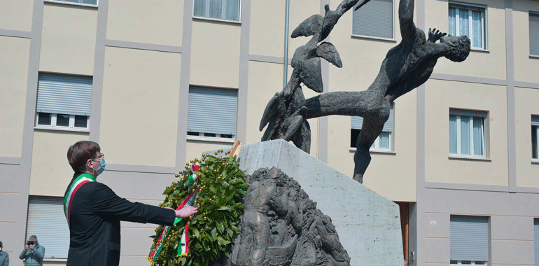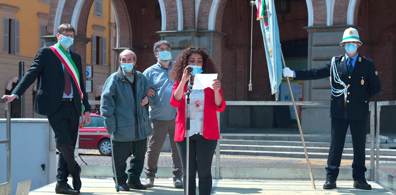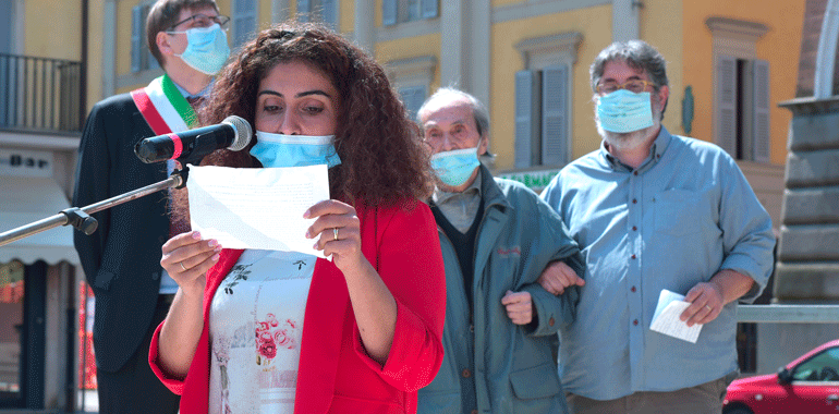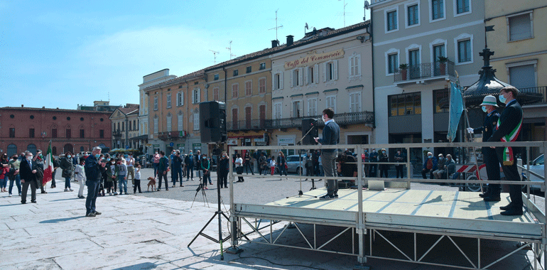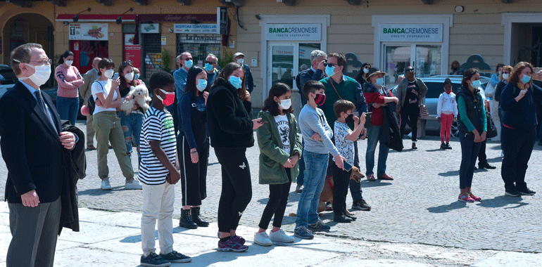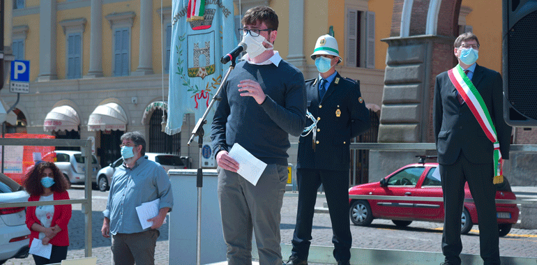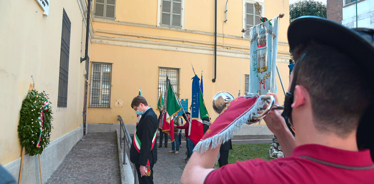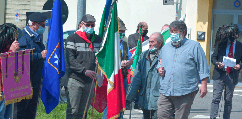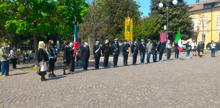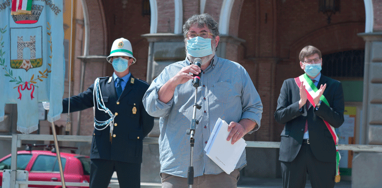 “Non mi sono preparato come al solito un discorso da rituale. Questa pandemia ci ha segnato – ha ricordato il sindaco Stefano Belli Franzini in piazza – ma non deve farci dimenticare la quotidianità, quello che abbiamo guadagnato con sacrificio nel corso della storia non sono banalità o cose che ci spettano per diritto. E’ stato conquistato questo diritto, e quindi quotidianamente dobbiamo proseguire per far si che questa libertà, una parola che è abusata, banalizzata sotto tanti aspetti senza analizzare quello che ha significato per far si che si arrivasse per poterla utilizzare. Chi ha avuto modo di confrontarsi con i libri di storia, non politicamente, ma in modo aperto, libero può apprezzare secondo intelligenza e coscienza quello che effettivamente è stato. Penso che al giorno d’oggi i tanti negazionisti che ci sono erano gli stessi che c’erano una volta. Che volevano negare l’evidenza e che negavano che si stava limitando la libertà umana per dei valori con la v minuscola, associati soltanto a una parte. Le norme di quest’anno non ci consentono di fare qualche cosa di più grande, ma penso ugualmente che non avremmo avuto un pubblico molto più folto di quelli che stanno partecipando e che ringrazio, e questo è triste. Il fatto di essere qui oggi porta avanti quei valori, e anche una persona sola deve avere la forza di andare avanti e di portare avanti qquesta giornata. Quello che viviamo quotidianamente non ci è stato regalato, non lo abbiamo avuto per grazia ricevuta dal divino, l’abbiamo avuta perché delle persone hanno lottato e scelto di liberarsi. Al contempo noi lottiamoquotidianamente, per lavorare, per vivere, per andare avanti. Sono forme diverse, lotte differenti per fortuna, ma quotidianamente portiamo avanti valori se crediamo in quello che stiamo facendo“.