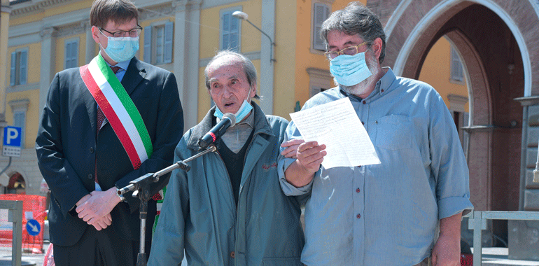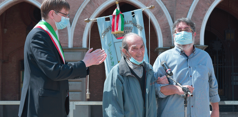 A Casalmaggiore grande protagonista è stato Aurelio Magni, partigiano classe 1921, emozionato ed emozionante quando ha sfilato fino al Monumenti ai Caduti all’Isola Bella e pure in piazza Garibaldi, al fianco del sindaco Filippo Bongiovanni e del presidente ANPI Giancarlo Roseghini. Ma la cerimonia ha visto, come sempre, anche la partecipazione delle associazioni d’armi e combattentistiche, oltre che di alcuni cittadini, che hanno pienamente rispettato le distanze e il divieto di assembramenti. In piazza Garibaldi, in particolare, sono state lette alcune considerazioni anche da parte di studenti del Romani, mentre la cerimonia ha seguito il classico spartito degli anni precedenti, passando dalla Santa Messa in Duomo alle tre tappe per i Caduti presso l’acquedotto, sulla scalinata d’accesso del comune e, appunto, all’Isola Bella. La fotogallery è di Alessandro Osti.