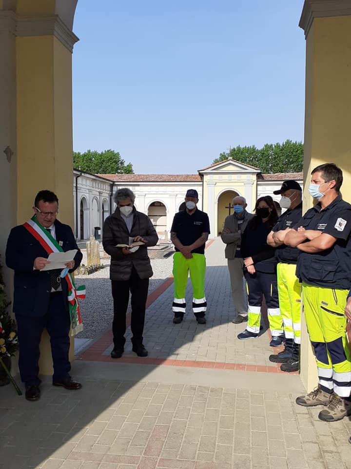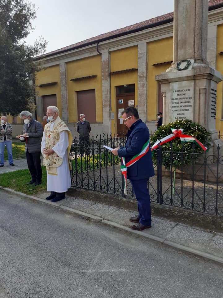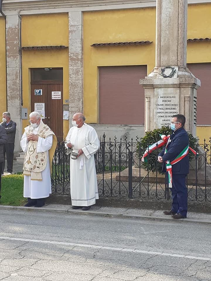 La libertà è partecipazione, sacrificio e coraggio. «La libertà va coltivata con la coscienza, con la consapevolezza e con il riconoscere la libertà degli altri». Ed è con questa accezione, di responsabilità, coscienza e rispetto per la libertà collettiva, che ricordiamo il 25 aprile che in quest’anno di pandemia da covid 19 è la vigilia di una data che per molte persone, dai lavoratori agli studenti, dai bambini agli anziani, vuol dire libertà di tornare a lavorare, a studiare, a muoversi. Domani lunedi 26 aprile, nella nostra Regione Lombardia potranno riaprire ristoranti, bar, cinema, teatri, luoghi della cultura. Il 25 aprile 2020 lo abbiamo passato dicendoci con tanta speranza “Andrà tutto bene”, magari stringendo il Tricolore tra le mani; quest’anno probabilmente sarà un giorno di progetti e di come sarà il nostro domani? Piero Calamandrei nel 1950 diceva La libertà è come l’aria: ci si accorge di quanto vale quando comincia a mancare. Ritengo avesse ragione! Auguro a tutti noi di riiniziare a respirare! Abbiamo onorato il Monumento ai Caduti di Brugnolo, Villanova e Rivarolo del Re. Ringrazio Don Giuseppe, Padre Francesco, la Protezione Civile Le Aquile Odv, l’Amministrazione Comunale e tutti i cittadini che hanno presenziato“.