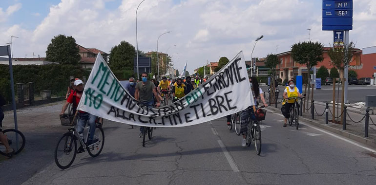 Un centinaio alla fine i presenti, considerando anche i partecipanti del Casalasco, con partenza da Gussola, da Casalmaggiore e arrivo, come detto, a Piadena Drizzona. Il tutto, sotto l’egida di gruppi storici che si oppongono all’ulteriore cementificazione della pianura cremonese, in testa il Coordinamento dei comitati ambientalisti di Ezio Corradi, il Comitato No autostrade di Cesare Vacchelli, gli stati generali Salute Ambiente di Marco Pezzoni.