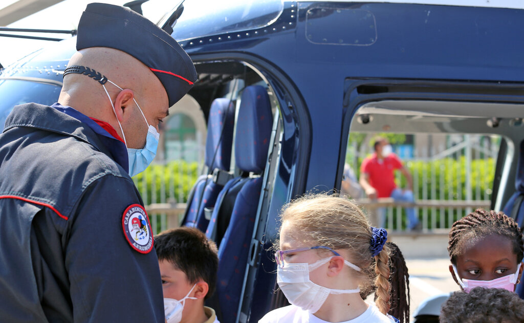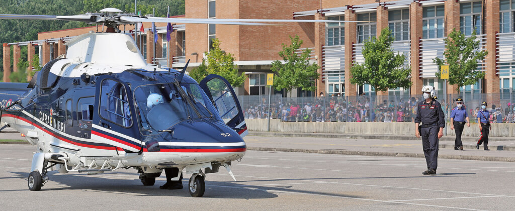 L’arrivo dell’elicottero è stato inserito come finale di un progetto che l’istituto Marconi porta avanti ormai da un ventennio, progetto che si chiama Salute, Sicurezza e Legalità e che anche quest’anno non ha avuto grandi battute d’arresto nonostante il Covid. Nel progetto che ha come referente Maria Vella Bianchi, sono coinvolte tutte le classi dall’ultimo anno della scuola dell’Infanzia sino alle classi terze della secondaria. Partner sono la Protezione Civile (che offrono agli studenti lezioni di scuola di emergenza in caso di terremoto, alluvione e rischio idraulico), Croce Rossa (nozioni di primo soccorso), Polizia Municipale (educazione stradale) e appunto Carabinieri, che quest’anno si sono concentrati, oltre che sul tema importante della legalità, in particolar modo sulle insidie della rete con lezioni non solo ai bambini, ma anche alle famiglie. Ad occuparsi direttamente del progetto per i carabinieri il Maresciallo Maggiore Giuliano Bertinelli, comandante della stazione di Casalmaggiore e il Maresciallo Stefano Rossolini, comandante della stazione di Rivarolo del Re.